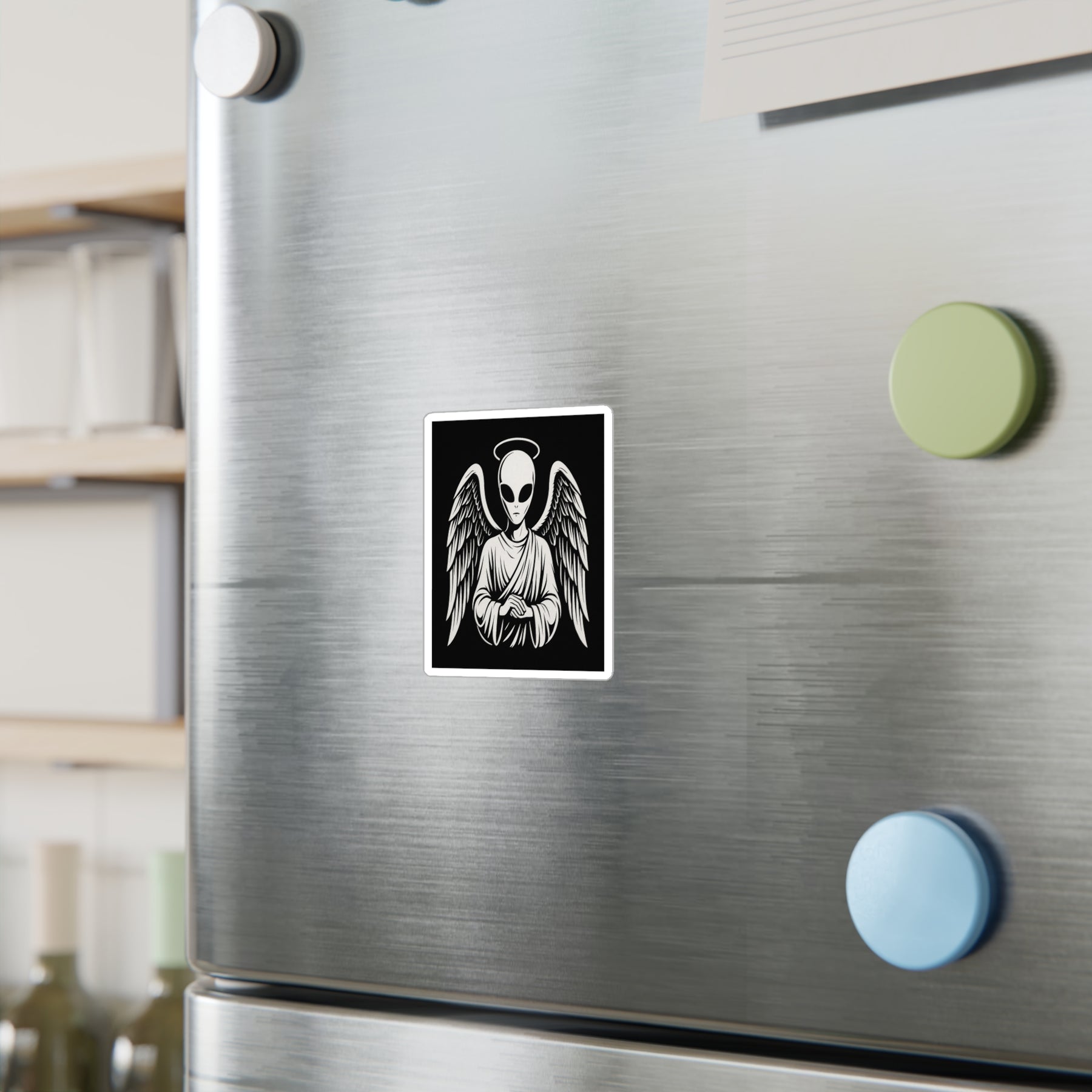 Alien Angel Kiss-Cut Vinyl Sticker — Gothic Sci‑Fi Decal