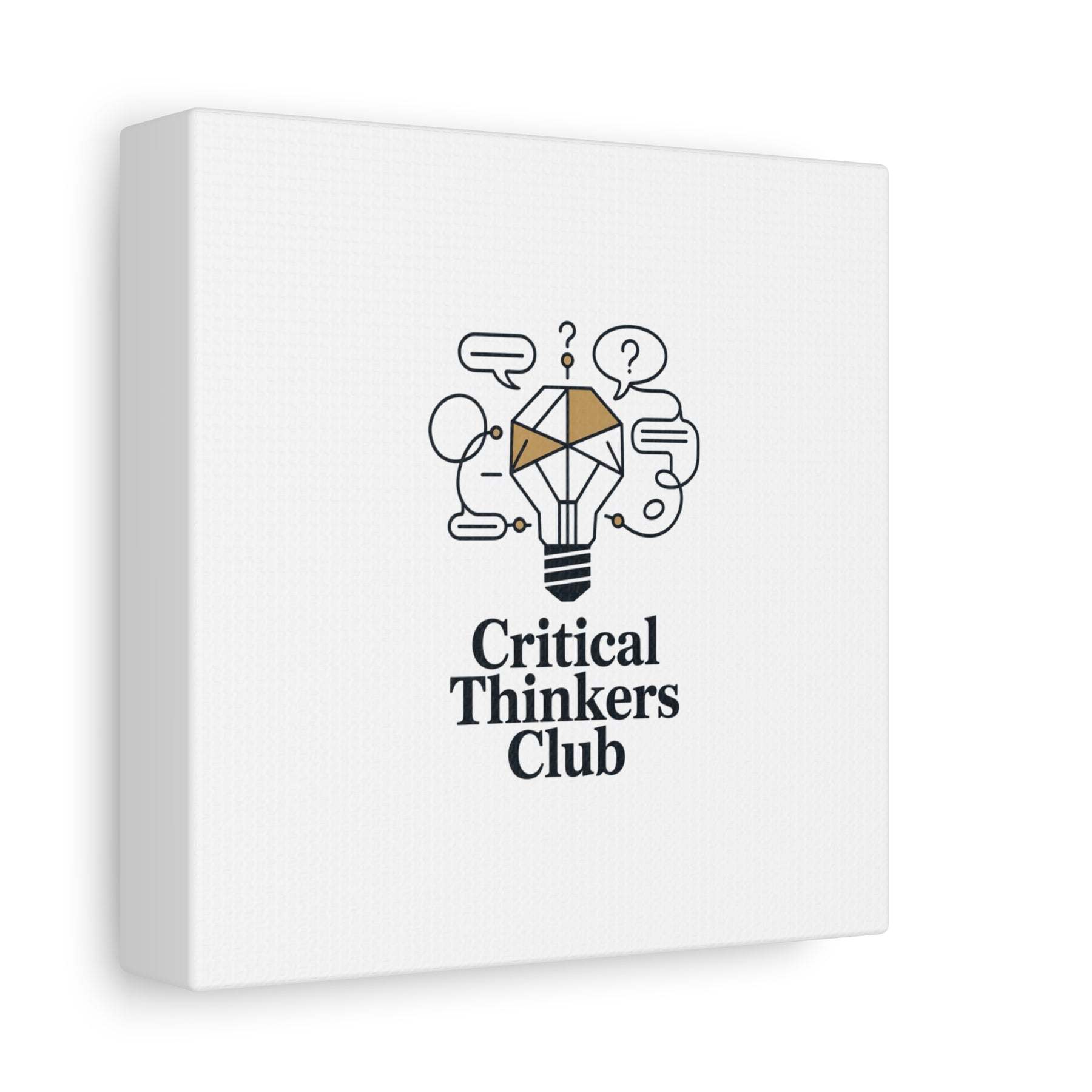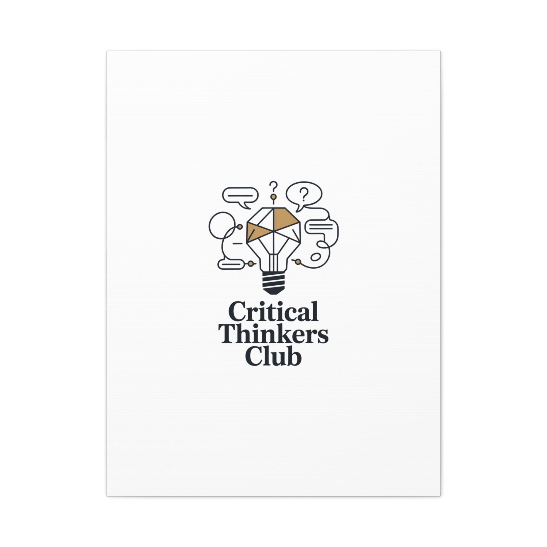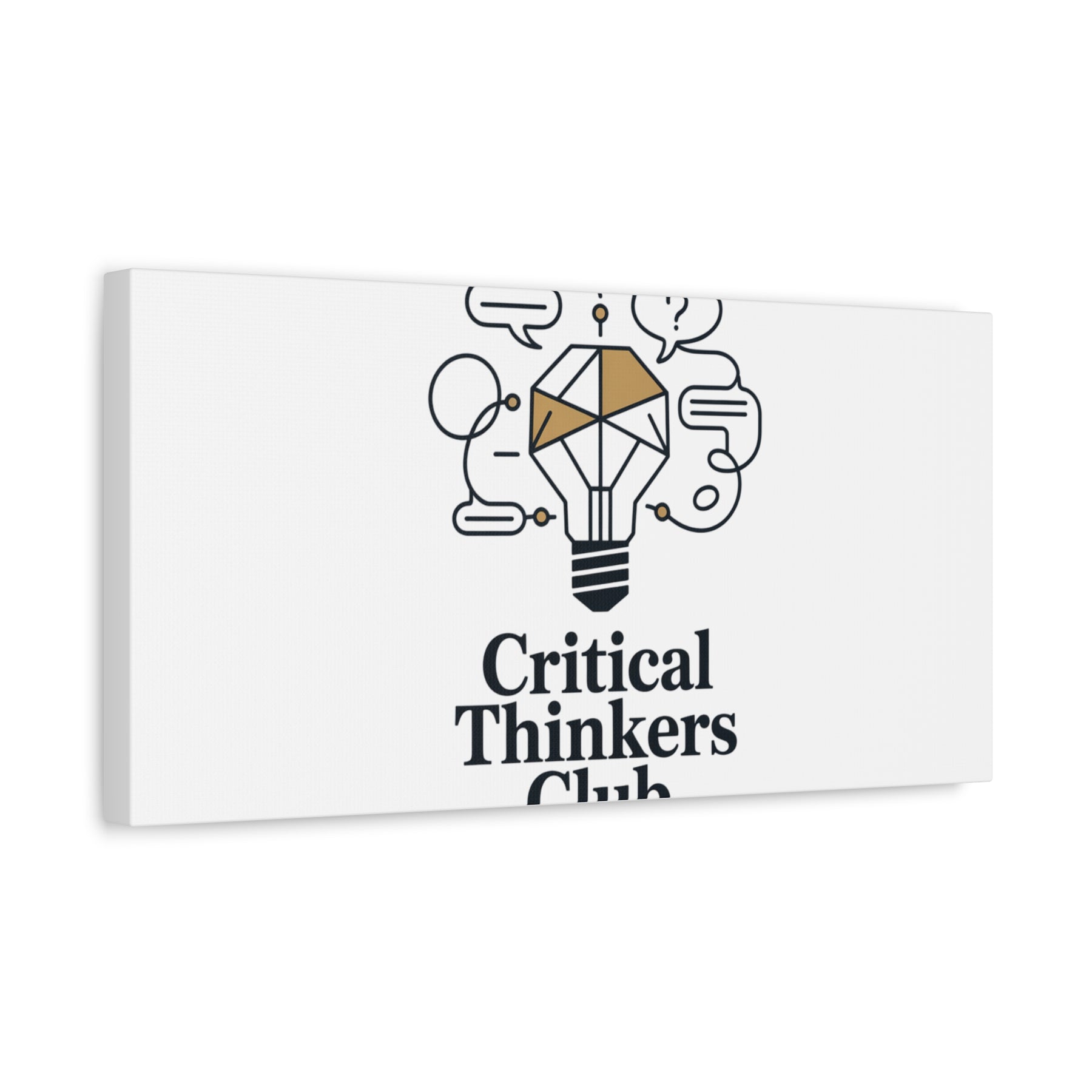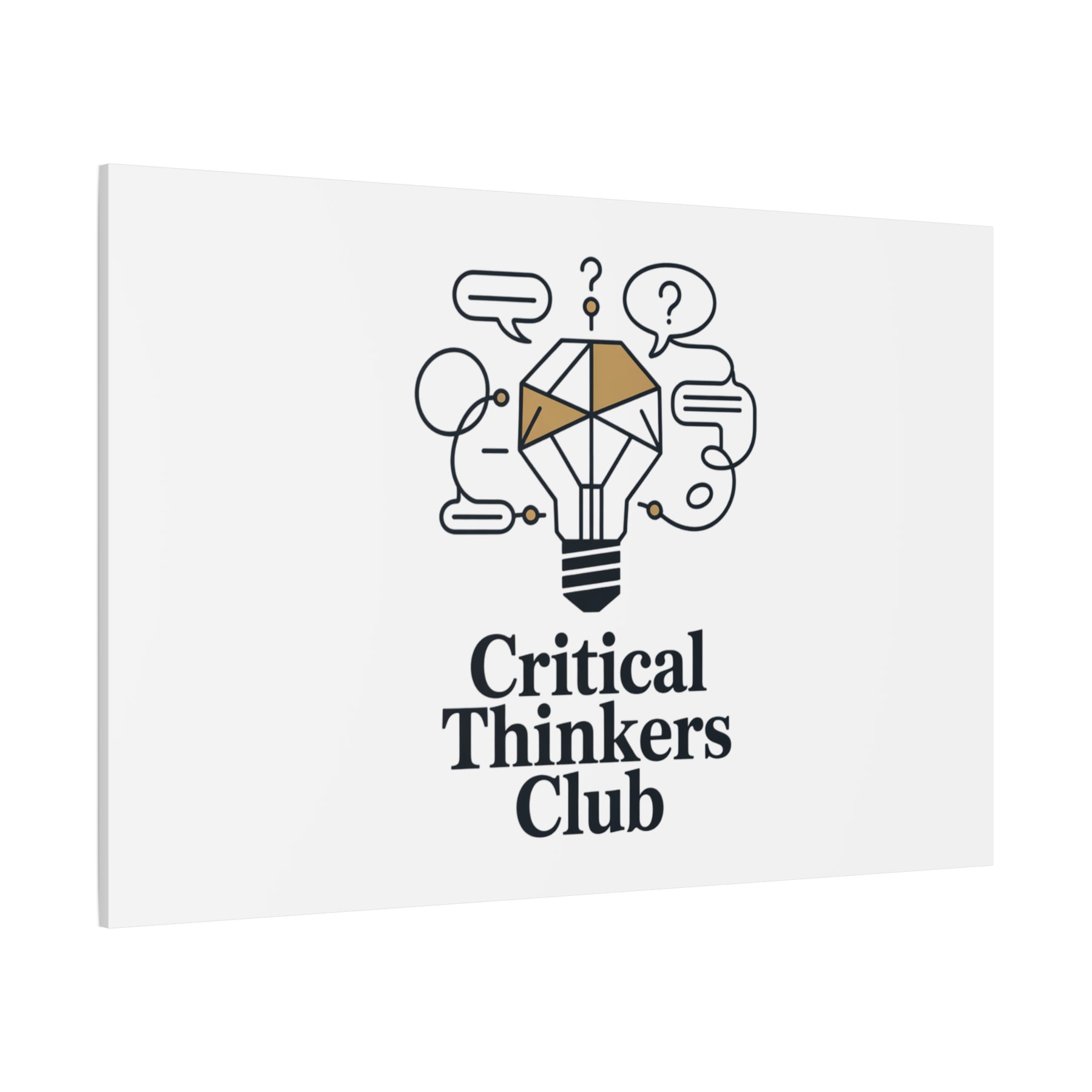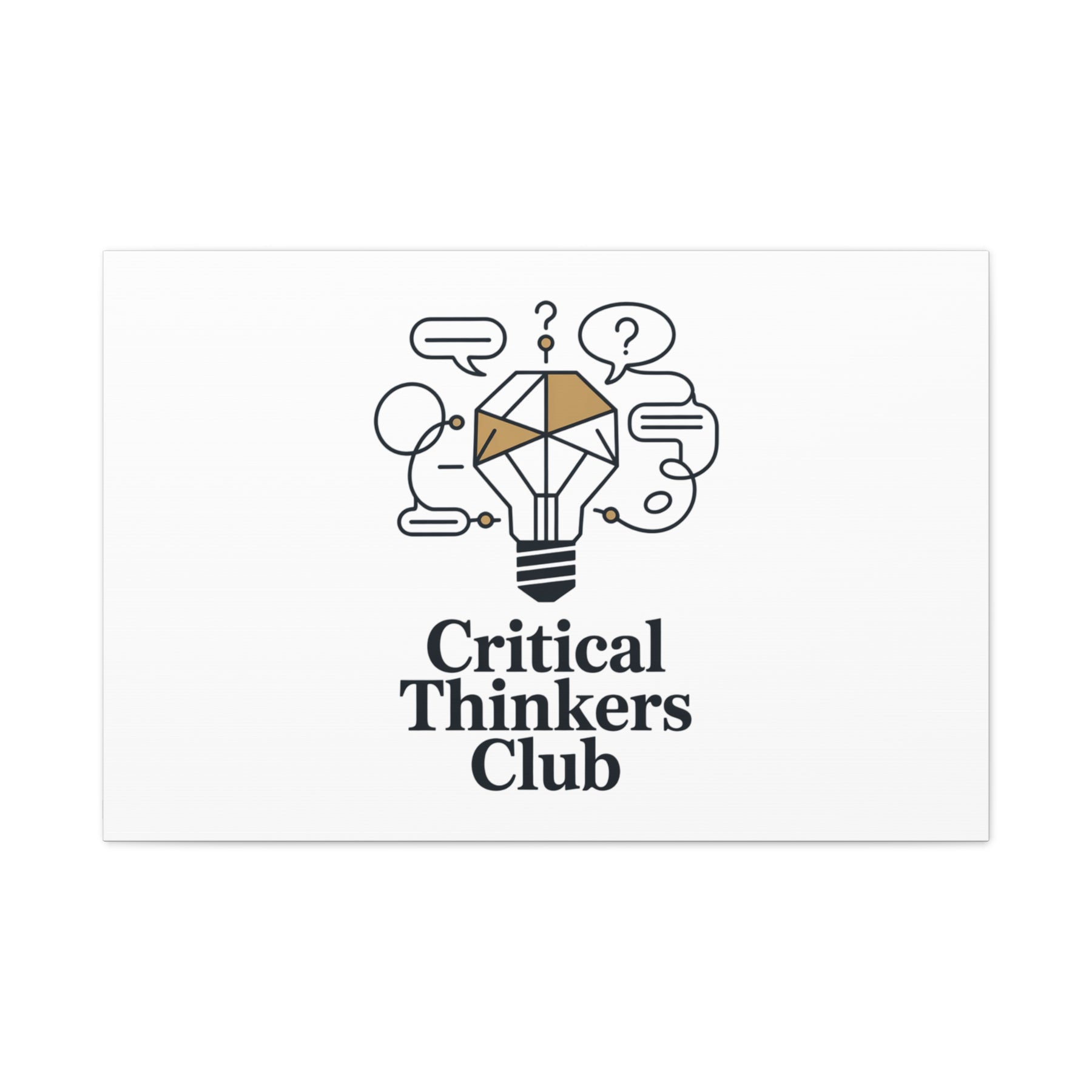 Minimal, academic-minded canvas print featuring a geometric lightbulb/brain emblem and club-style label that nods to the “Critical Thinkers Club” aesthetic. The artwork uses a restrained, limited palette and clean geometric lines with speech-bubble and question-mark motifs to signal thoughtful, apolitical wit. Stretched on a matte canvas with a subtle profile, it suits study corners, office walls, or classroom spaces where understated intellect and “processing moment” humor fit the decor. Product features - 2 rubber dots on bottom to keep canvas in place - Unique JONDO coating with UL-certified Greenguard Gold inks - Printed with non-hazardous latex inks - Canvas material: cotton/polyester composite; frame: pine wood - Back hanging included; multiple orientation and size options available Care instructions - If the canvas does gather any dust, you may wipe it off gently with a clean, damp cloth.