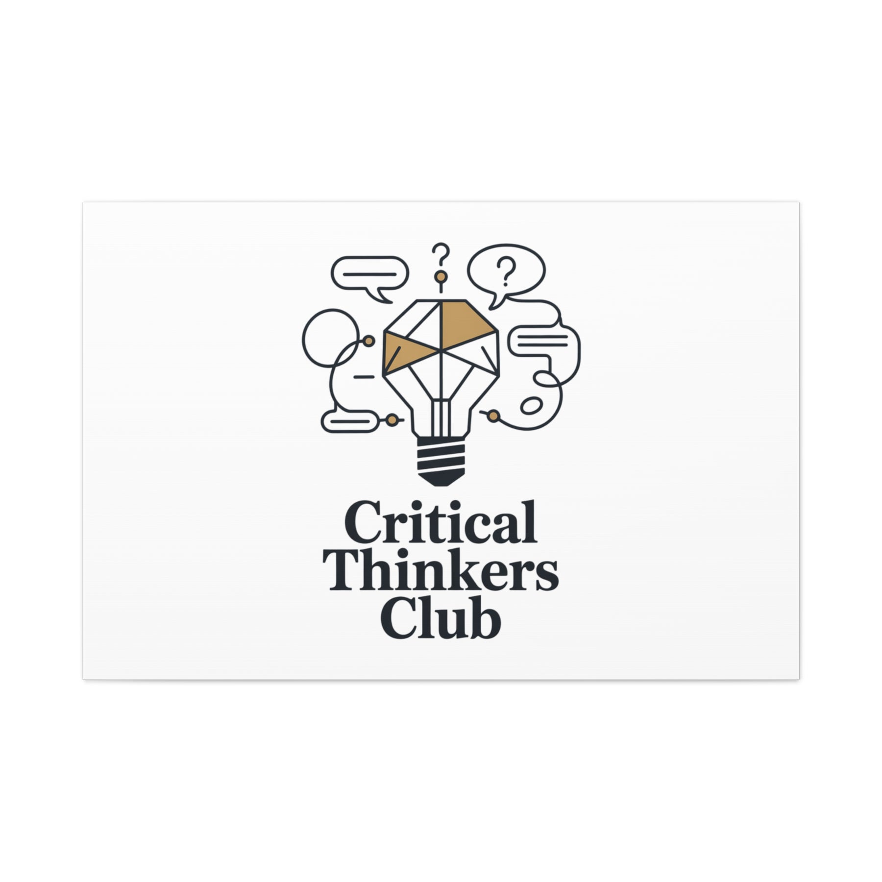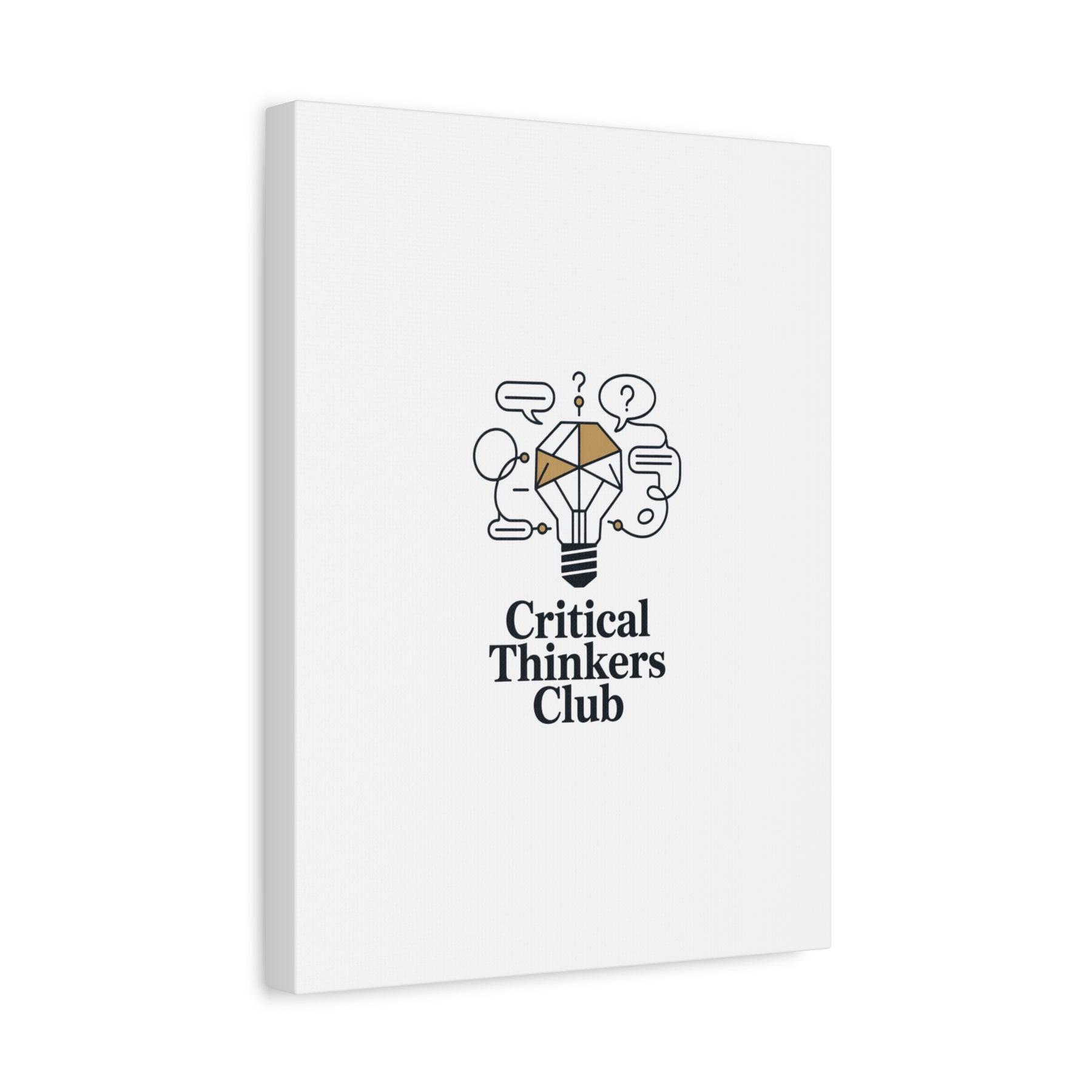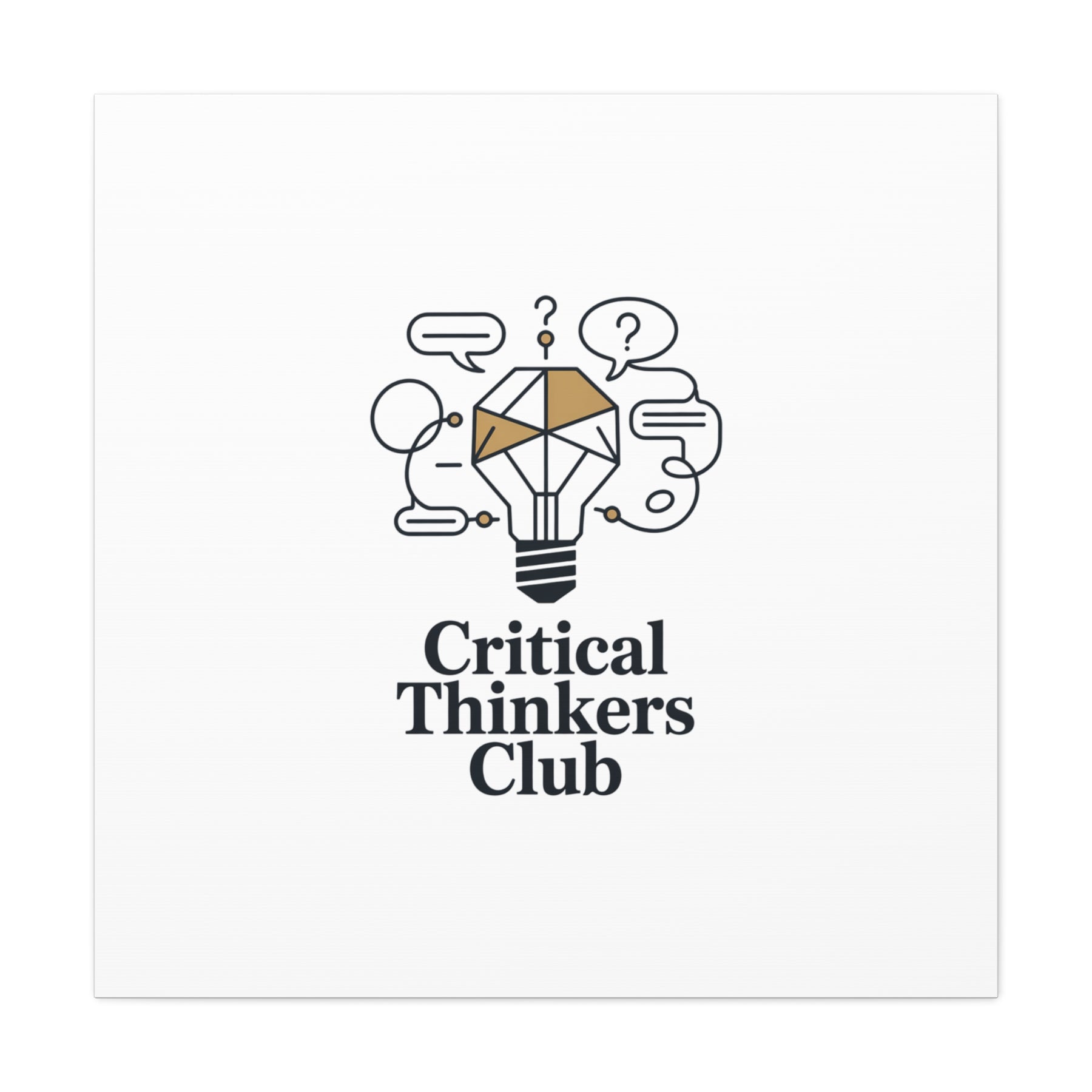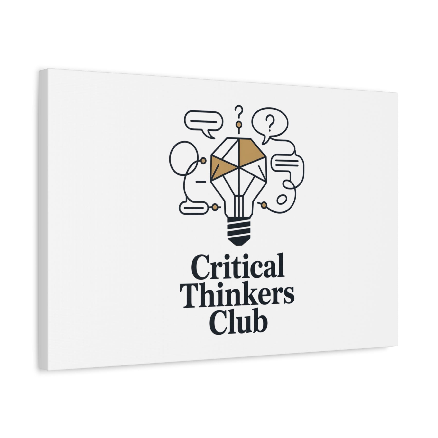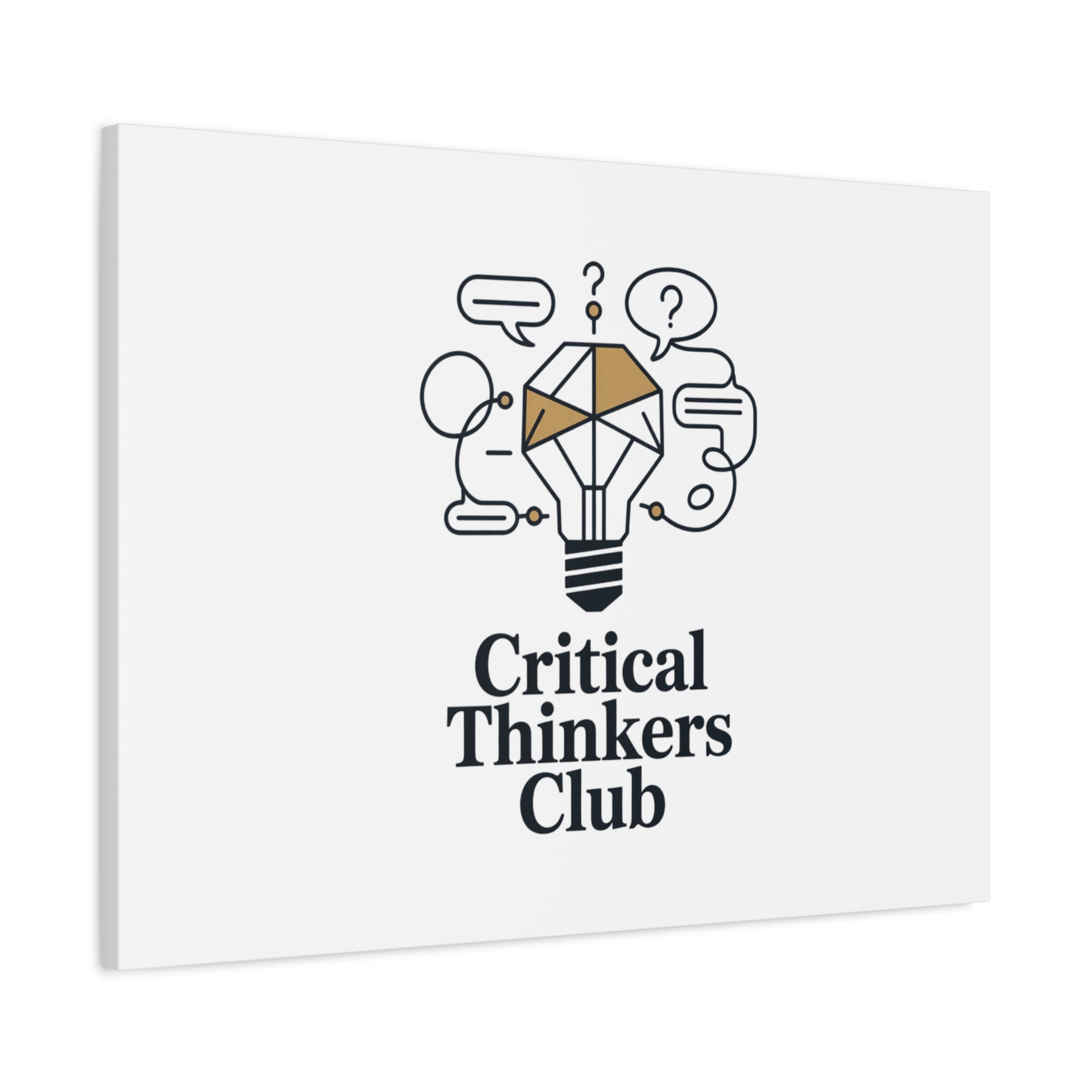 Minimal, academic-minded canvas print featuring a geometric lightbulb/brain emblem and club-style label that nods to the “Critical Thinkers Club” aesthetic. The artwork uses a restrained, limited palette and clean geometric lines with speech-bubble and question-mark motifs to signal thoughtful, apolitical wit. Stretched on a matte canvas with a subtle profile, it suits study corners, office walls, or classroom spaces where understated intellect and “processing moment” humor fit the decor. Product features - 2 rubber dots on bottom to keep canvas in place - Unique JONDO coating with UL-certified Greenguard Gold inks - Printed with non-hazardous latex inks - Canvas material: cotton/polyester composite; frame: pine wood - Back hanging included; multiple orientation and size options available Care instructions - If the canvas does gather any dust, you may wipe it off gently with a clean, damp cloth.