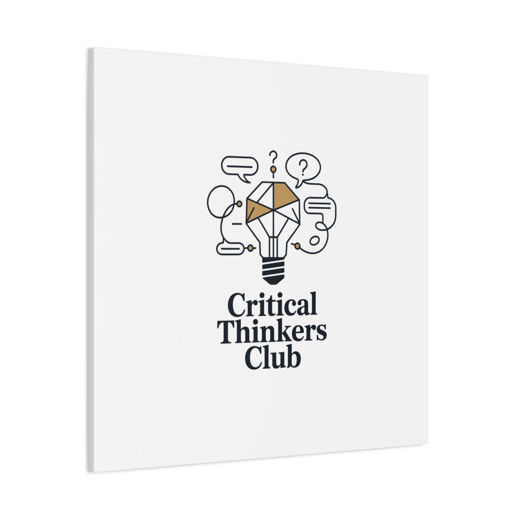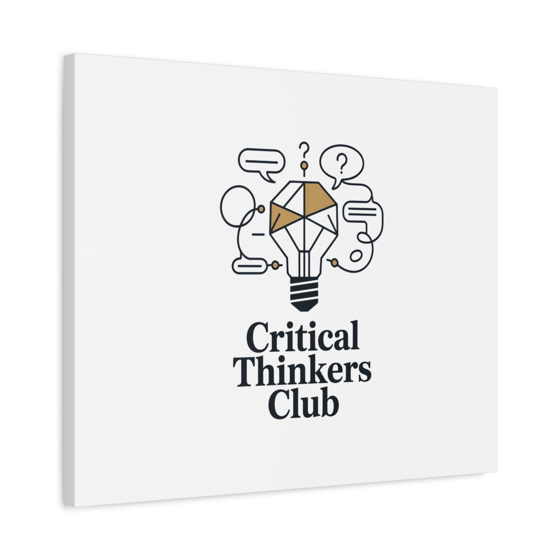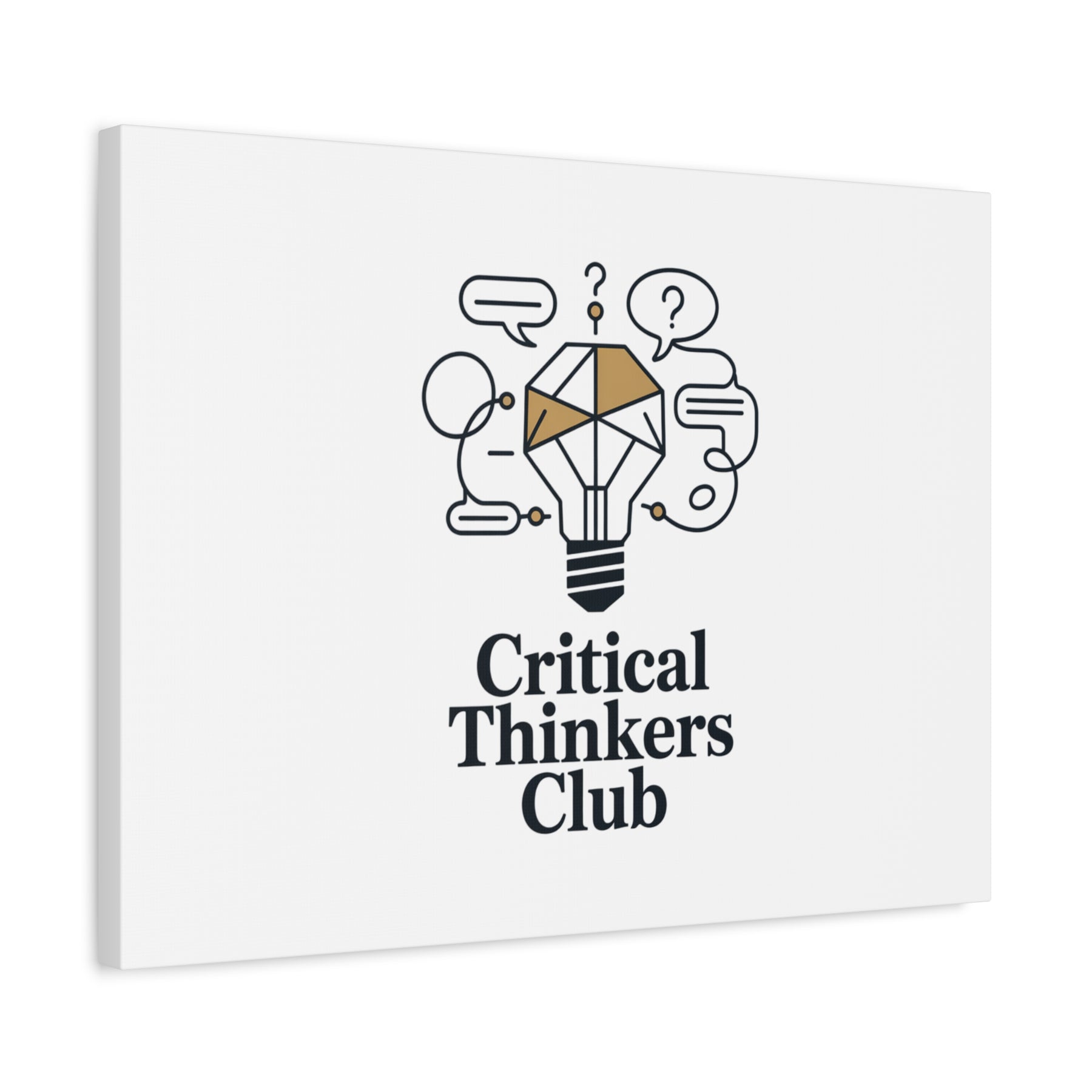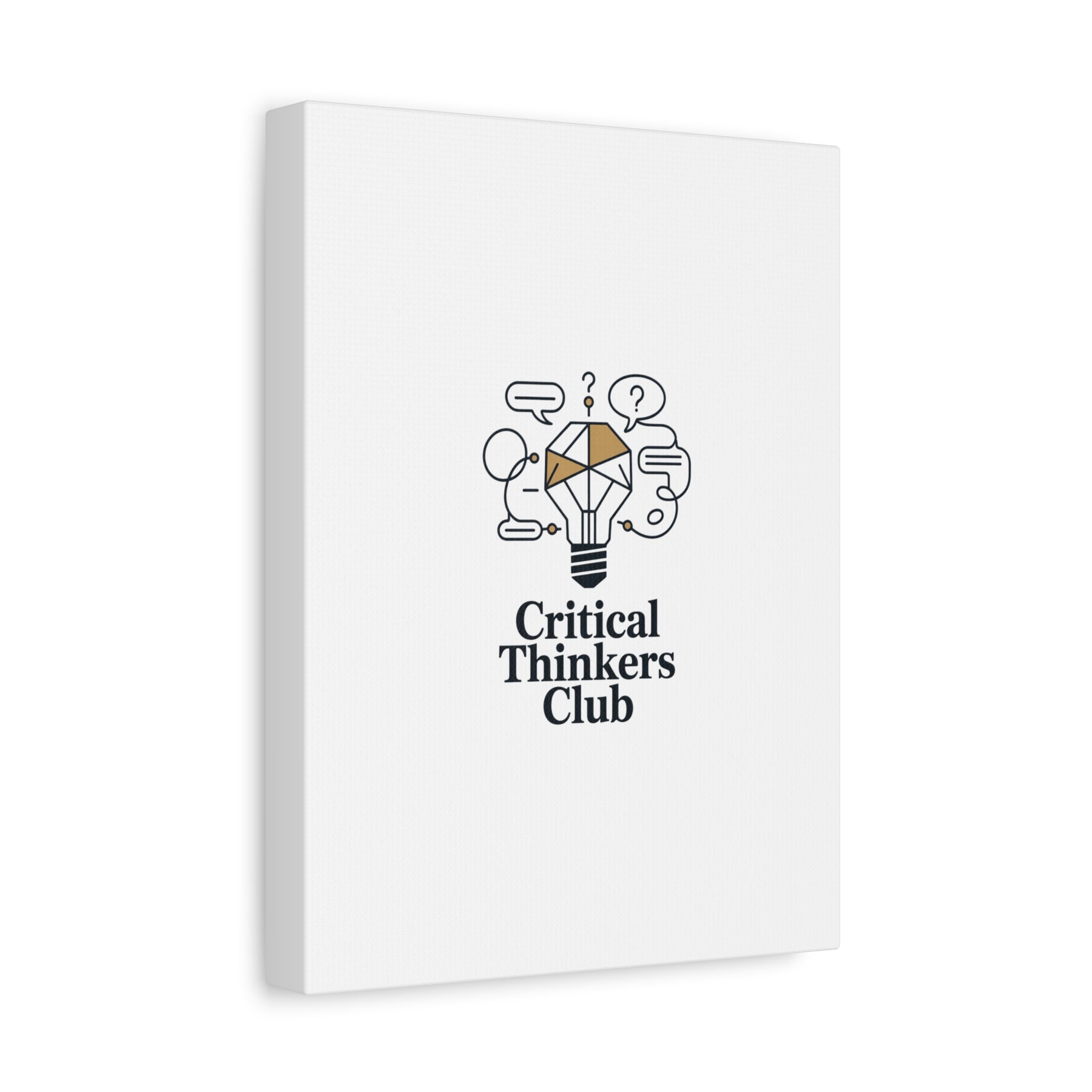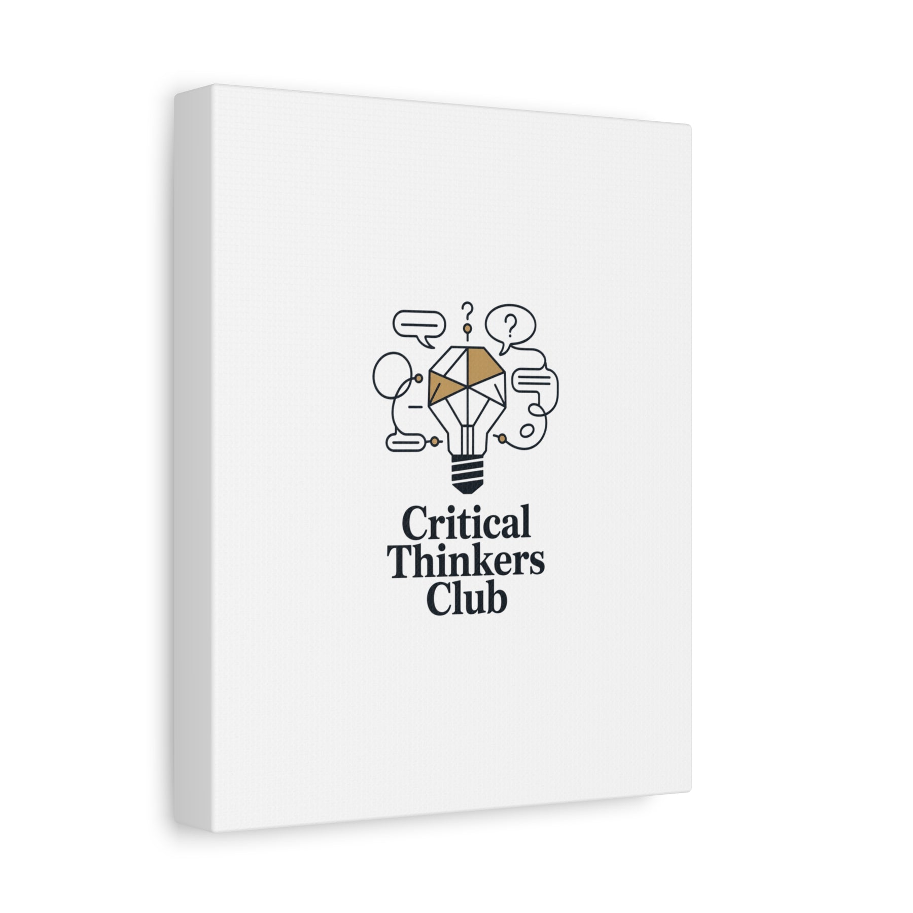 Minimal, academic-minded canvas print featuring a geometric lightbulb/brain emblem and club-style label that nods to the “Critical Thinkers Club” aesthetic. The artwork uses a restrained, limited palette and clean geometric lines with speech-bubble and question-mark motifs to signal thoughtful, apolitical wit. Stretched on a matte canvas with a subtle profile, it suits study corners, office walls, or classroom spaces where understated intellect and “processing moment” humor fit the decor. Product features - 2 rubber dots on bottom to keep canvas in place - Unique JONDO coating with UL-certified Greenguard Gold inks - Printed with non-hazardous latex inks - Canvas material: cotton/polyester composite; frame: pine wood - Back hanging included; multiple orientation and size options available Care instructions - If the canvas does gather any dust, you may wipe it off gently with a clean, damp cloth.