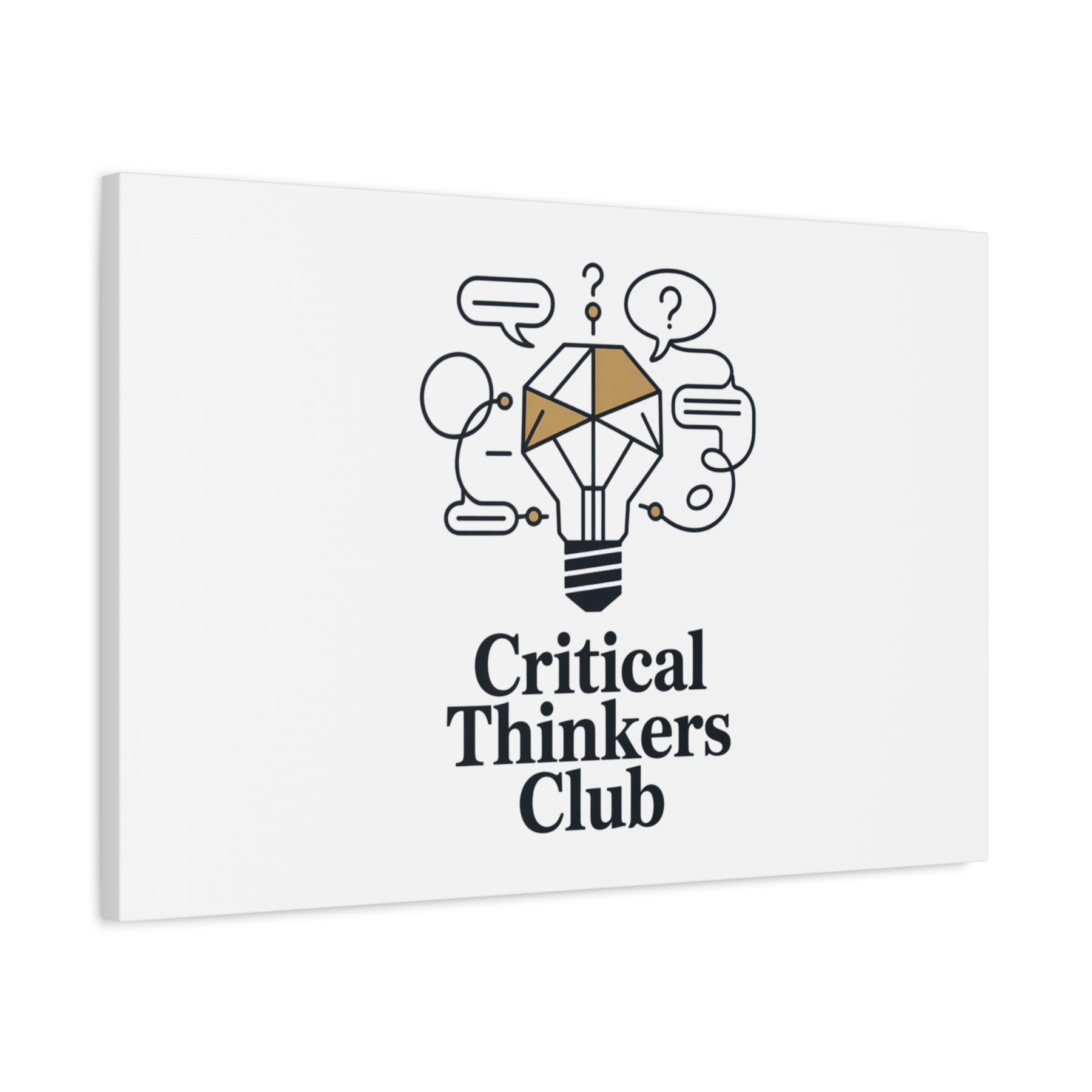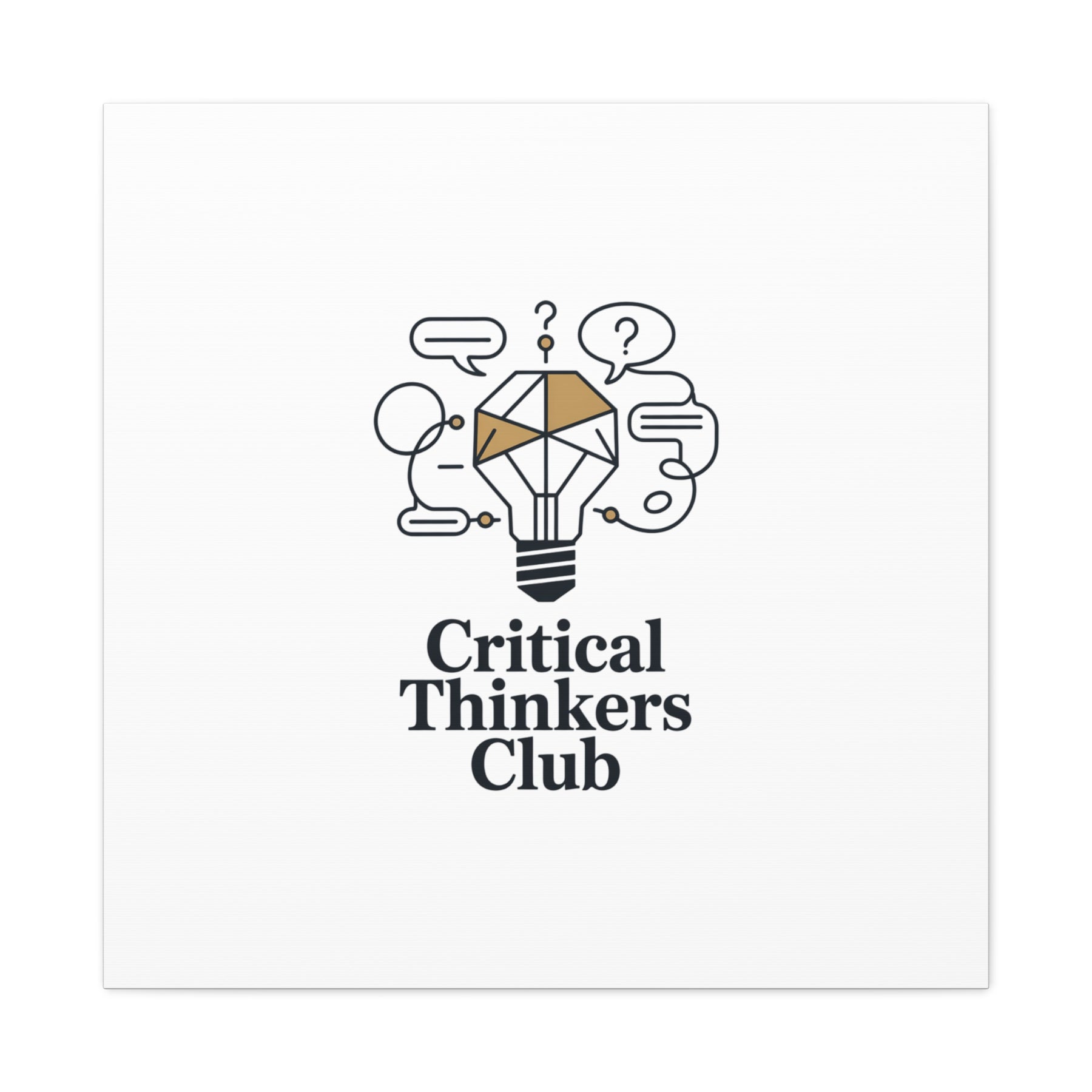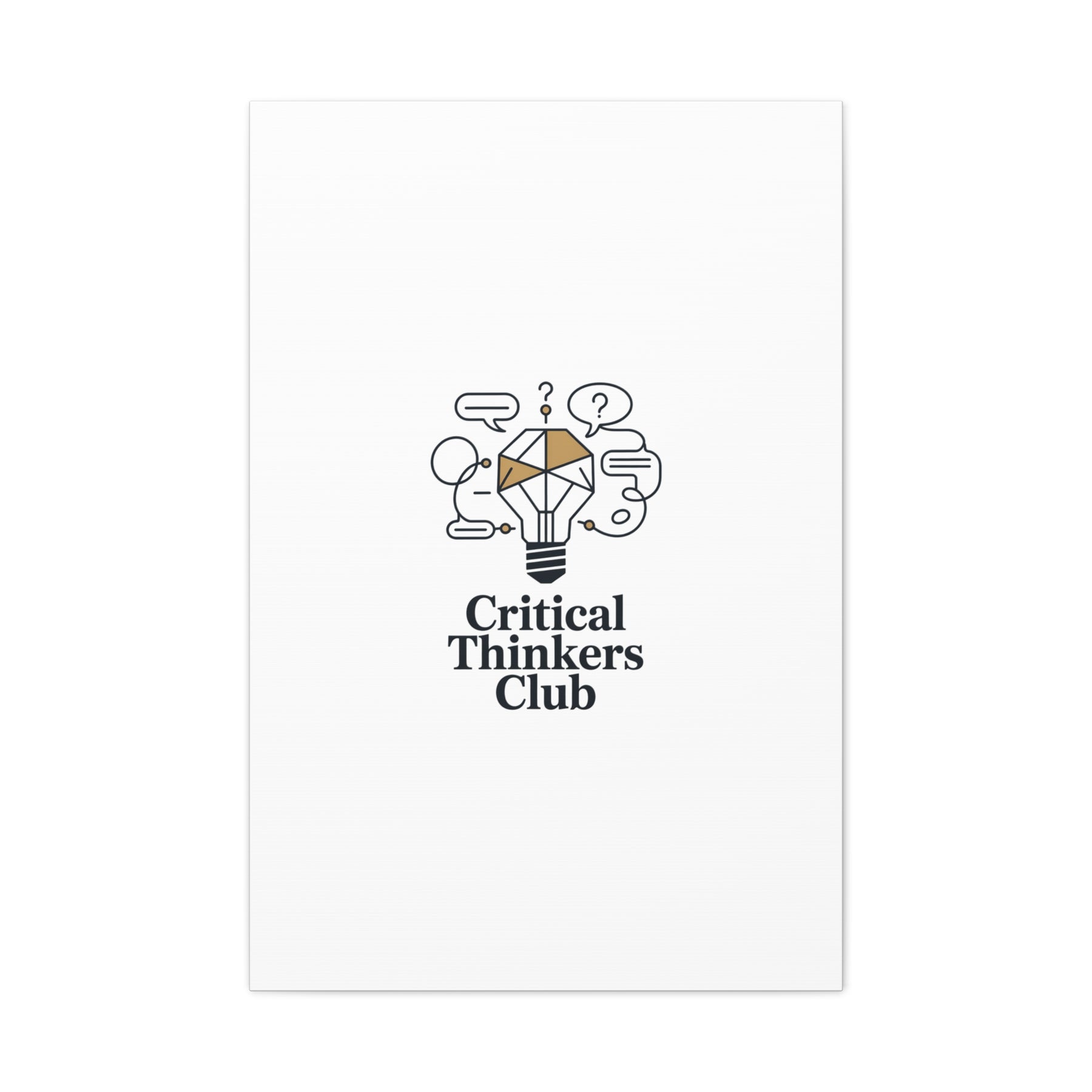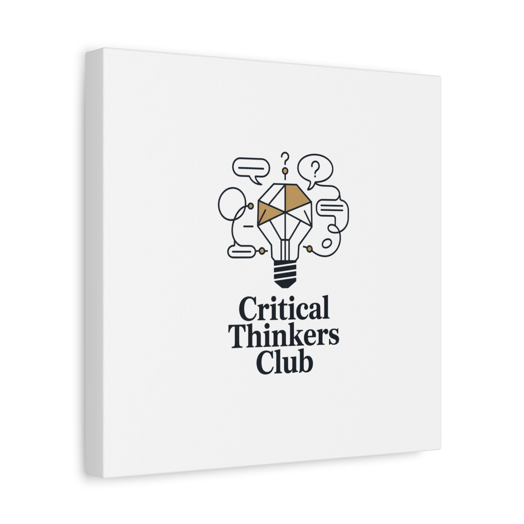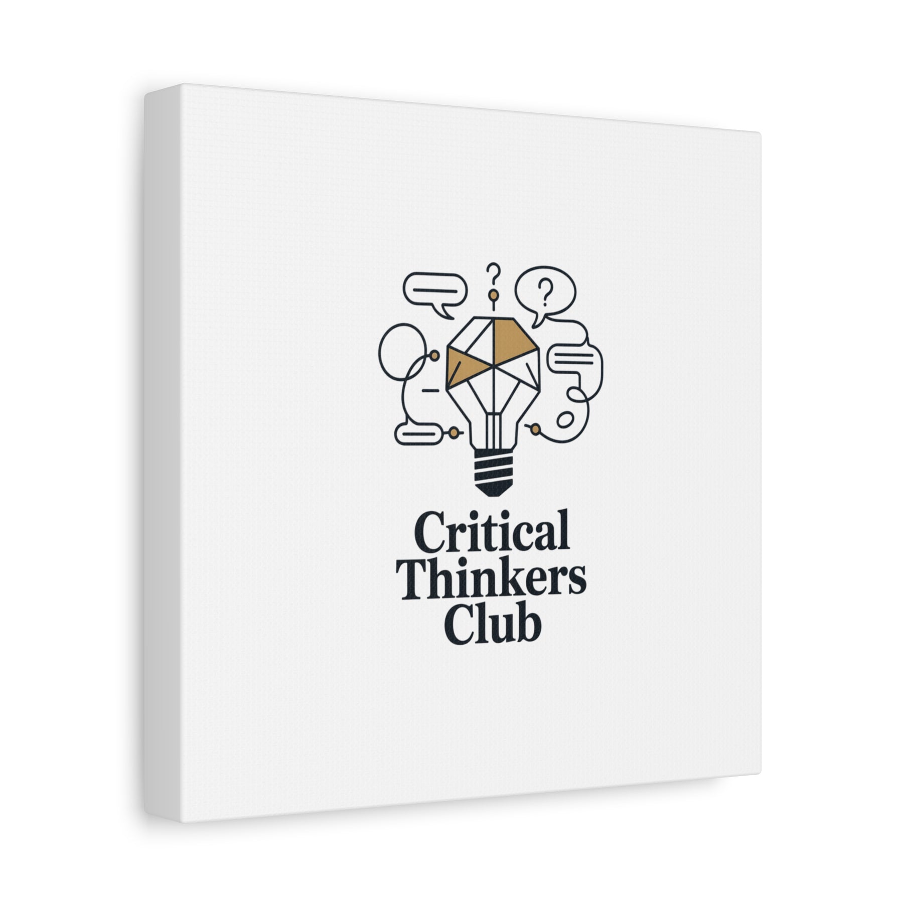 Minimal, academic-minded canvas print featuring a geometric lightbulb/brain emblem and club-style label that nods to the “Critical Thinkers Club” aesthetic. The artwork uses a restrained, limited palette and clean geometric lines with speech-bubble and question-mark motifs to signal thoughtful, apolitical wit. Stretched on a matte canvas with a subtle profile, it suits study corners, office walls, or classroom spaces where understated intellect and “processing moment” humor fit the decor. Product features - 2 rubber dots on bottom to keep canvas in place - Unique JONDO coating with UL-certified Greenguard Gold inks - Printed with non-hazardous latex inks - Canvas material: cotton/polyester composite; frame: pine wood - Back hanging included; multiple orientation and size options available Care instructions - If the canvas does gather any dust, you may wipe it off gently with a clean, damp cloth.