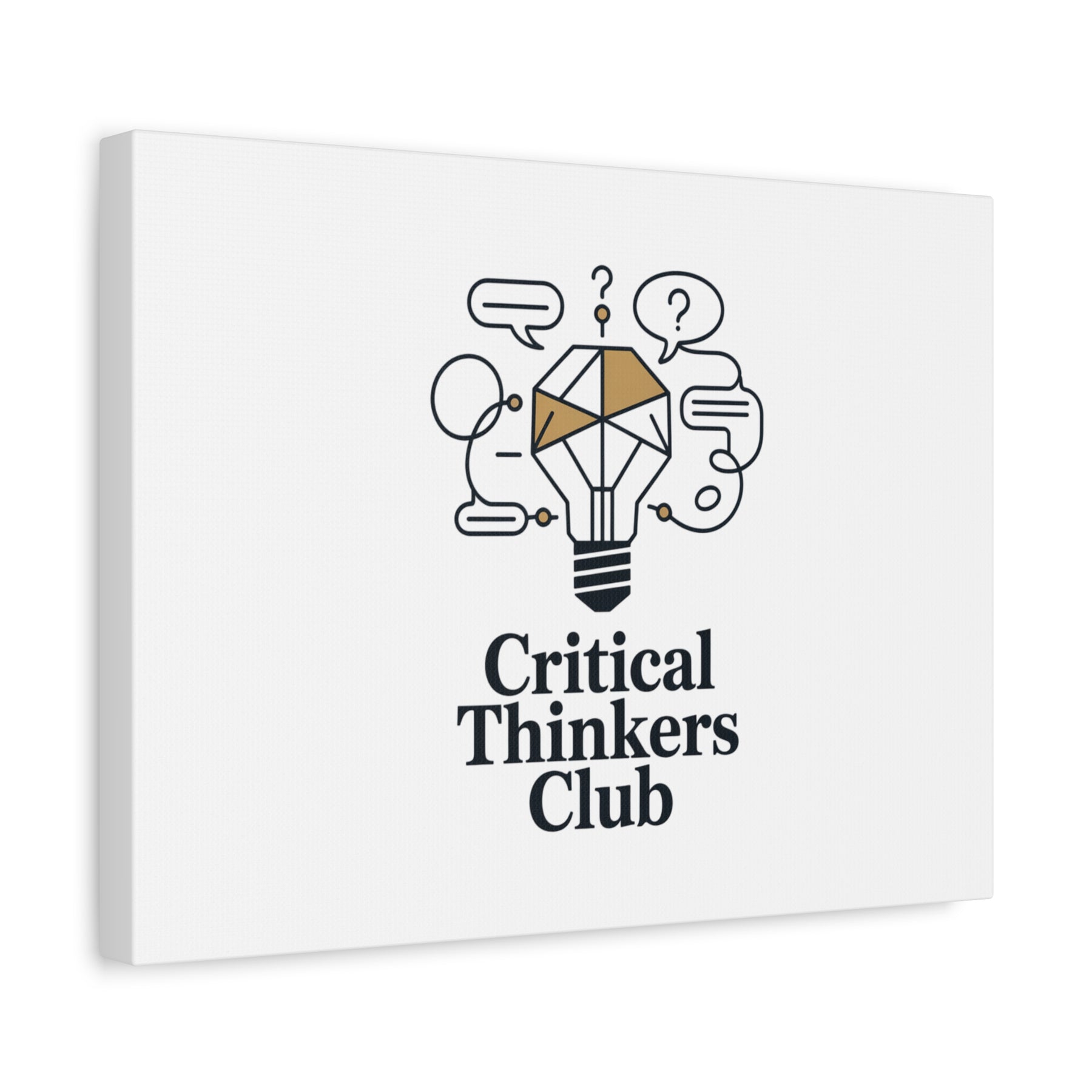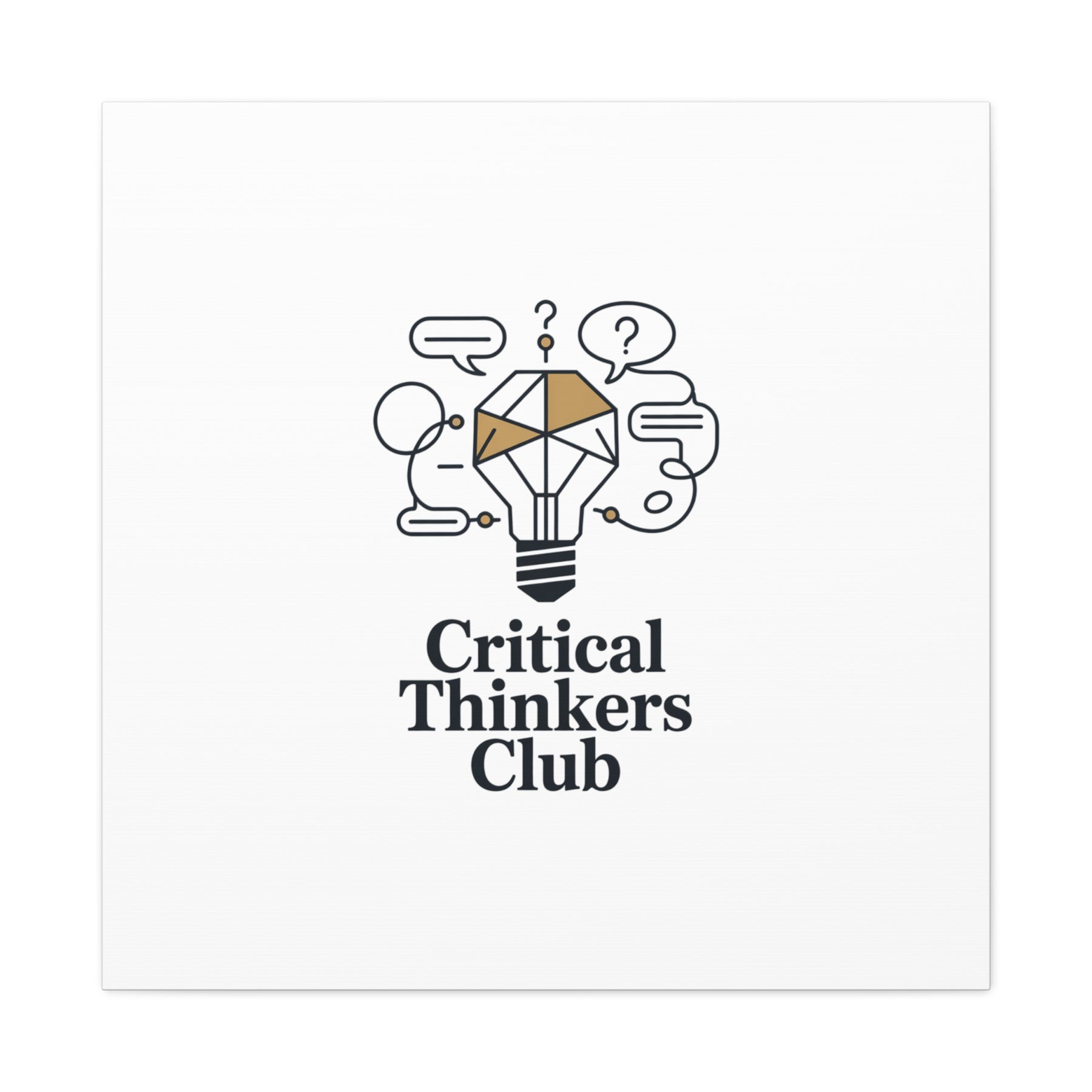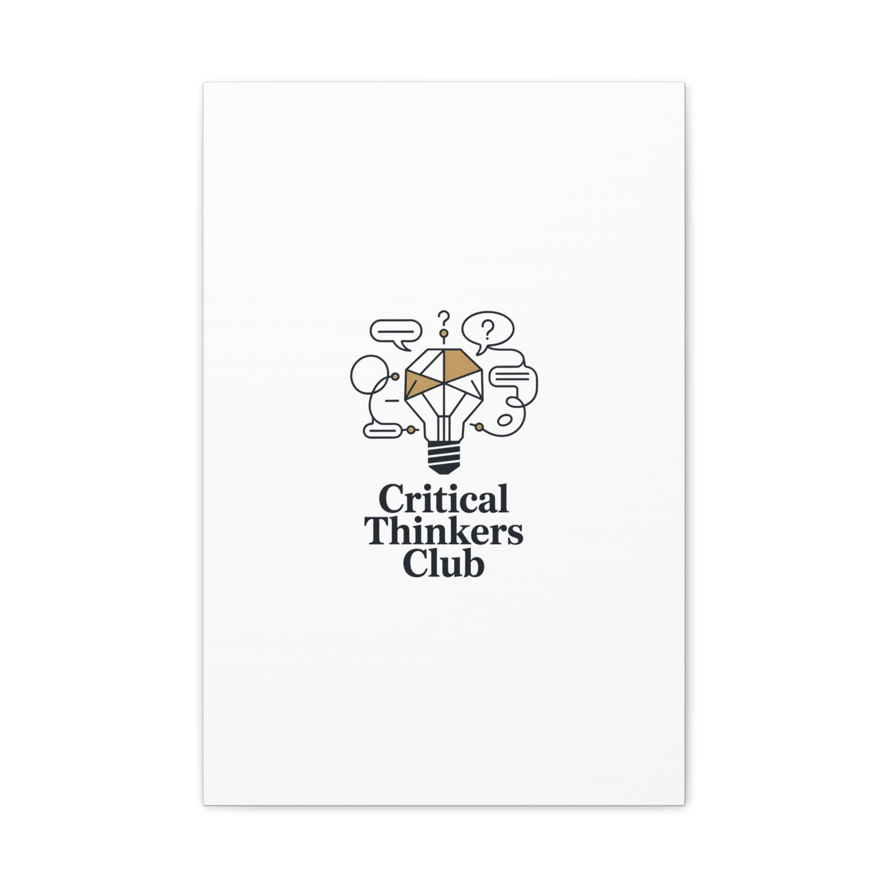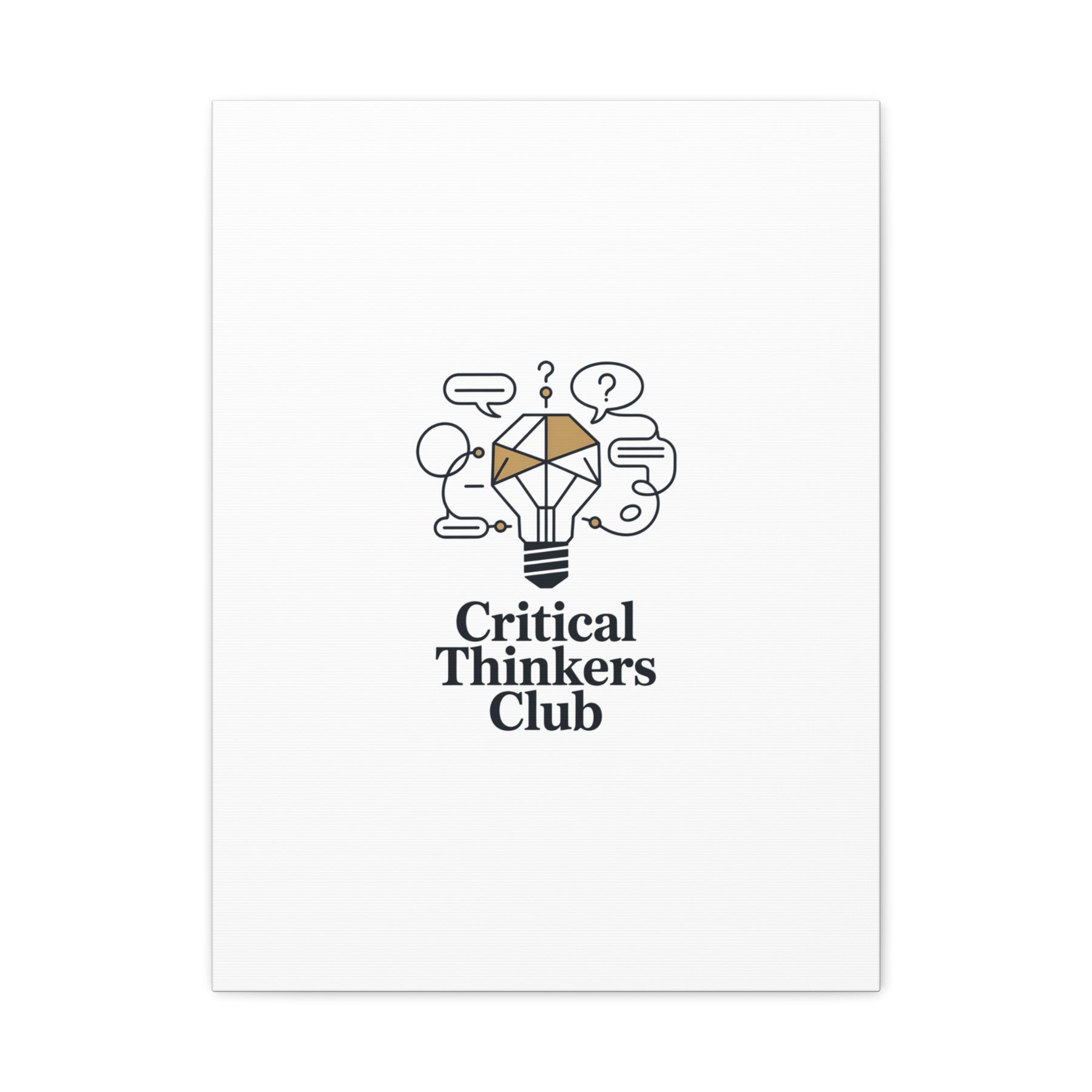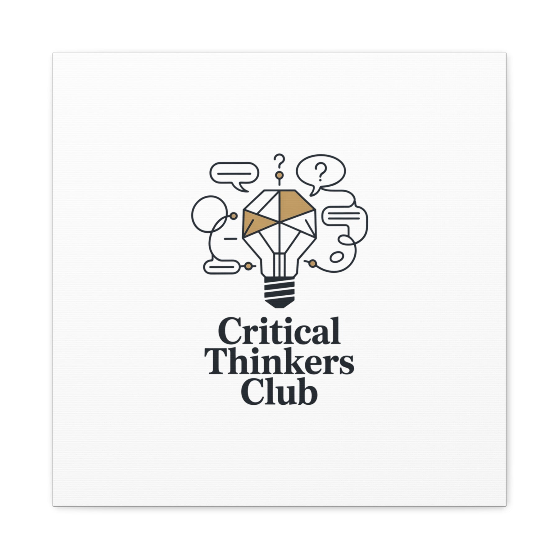 Minimal, academic-minded canvas print featuring a geometric lightbulb/brain emblem and club-style label that nods to the “Critical Thinkers Club” aesthetic. The artwork uses a restrained, limited palette and clean geometric lines with speech-bubble and question-mark motifs to signal thoughtful, apolitical wit. Stretched on a matte canvas with a subtle profile, it suits study corners, office walls, or classroom spaces where understated intellect and “processing moment” humor fit the decor. Product features - 2 rubber dots on bottom to keep canvas in place - Unique JONDO coating with UL-certified Greenguard Gold inks - Printed with non-hazardous latex inks - Canvas material: cotton/polyester composite; frame: pine wood - Back hanging included; multiple orientation and size options available Care instructions - If the canvas does gather any dust, you may wipe it off gently with a clean, damp cloth.