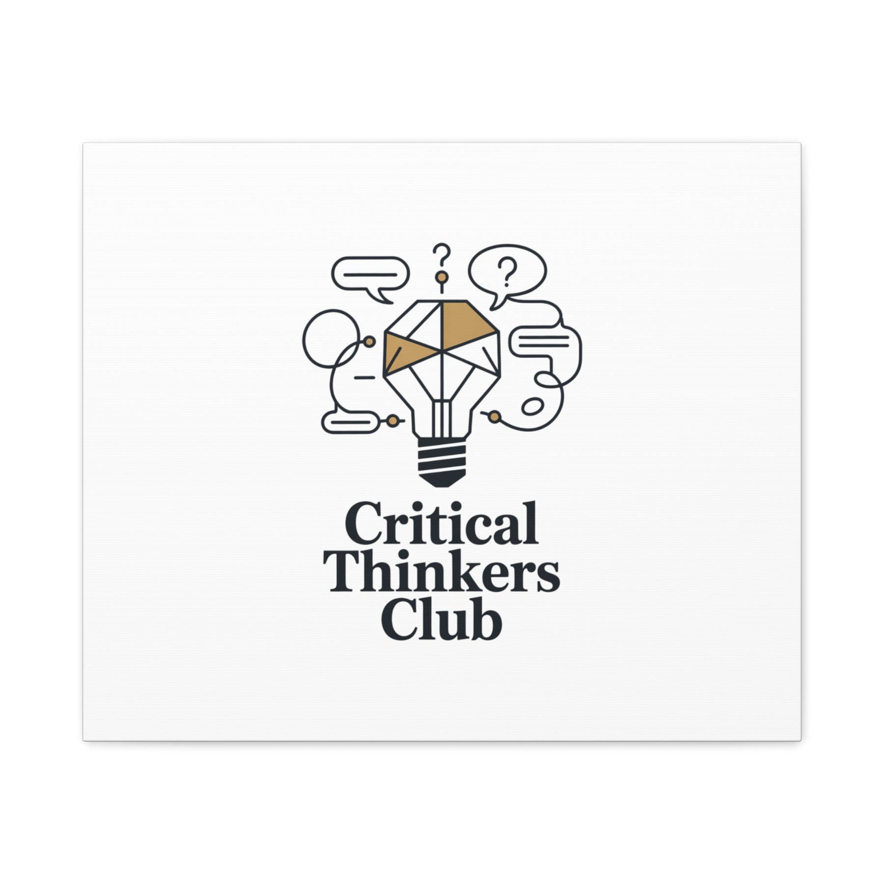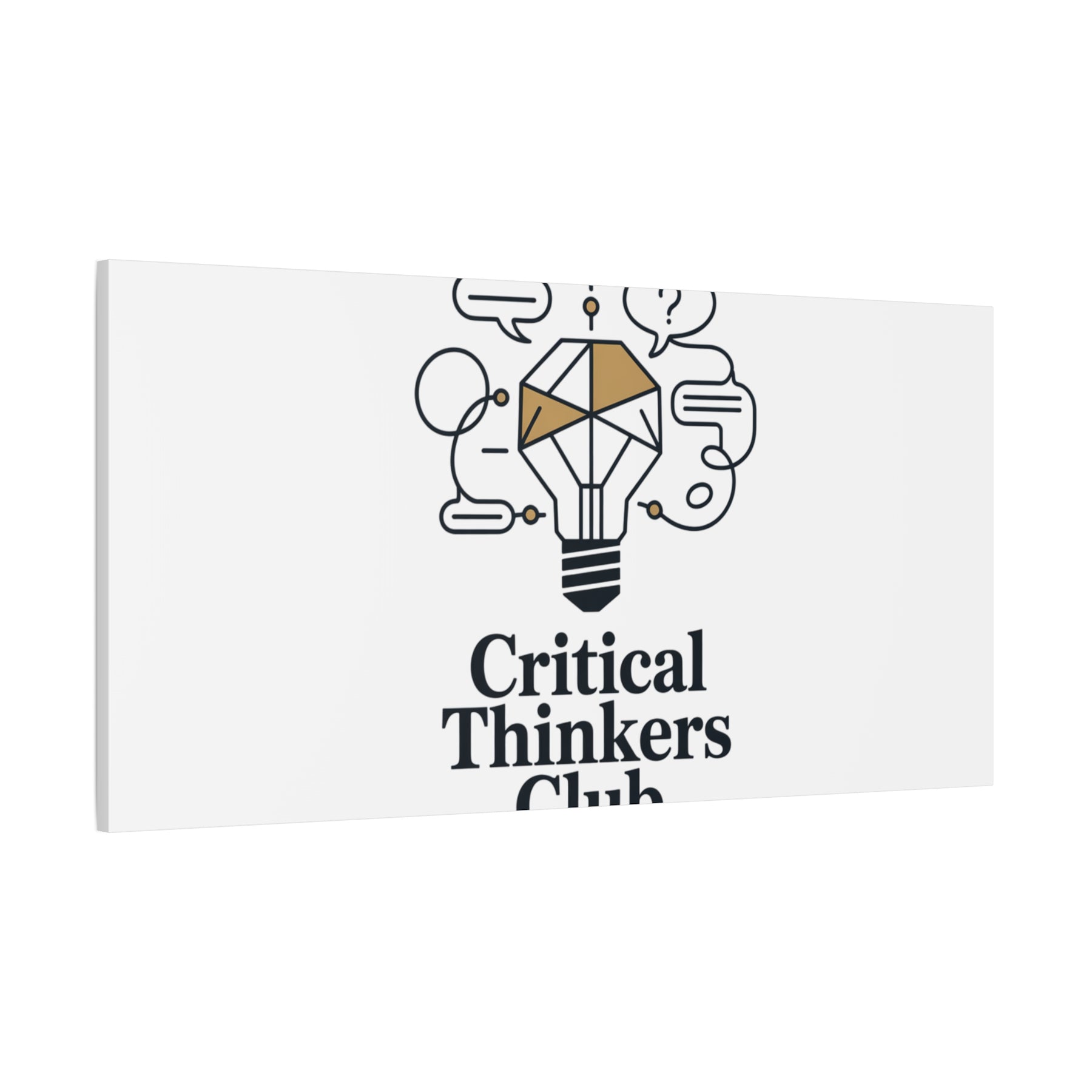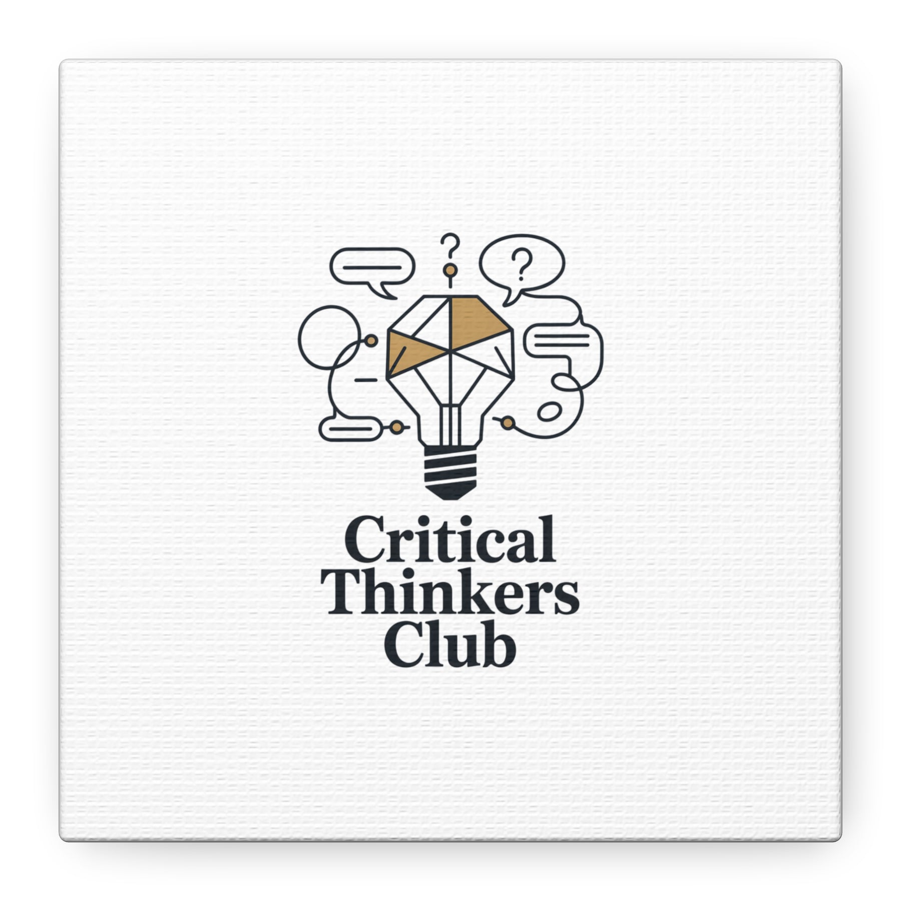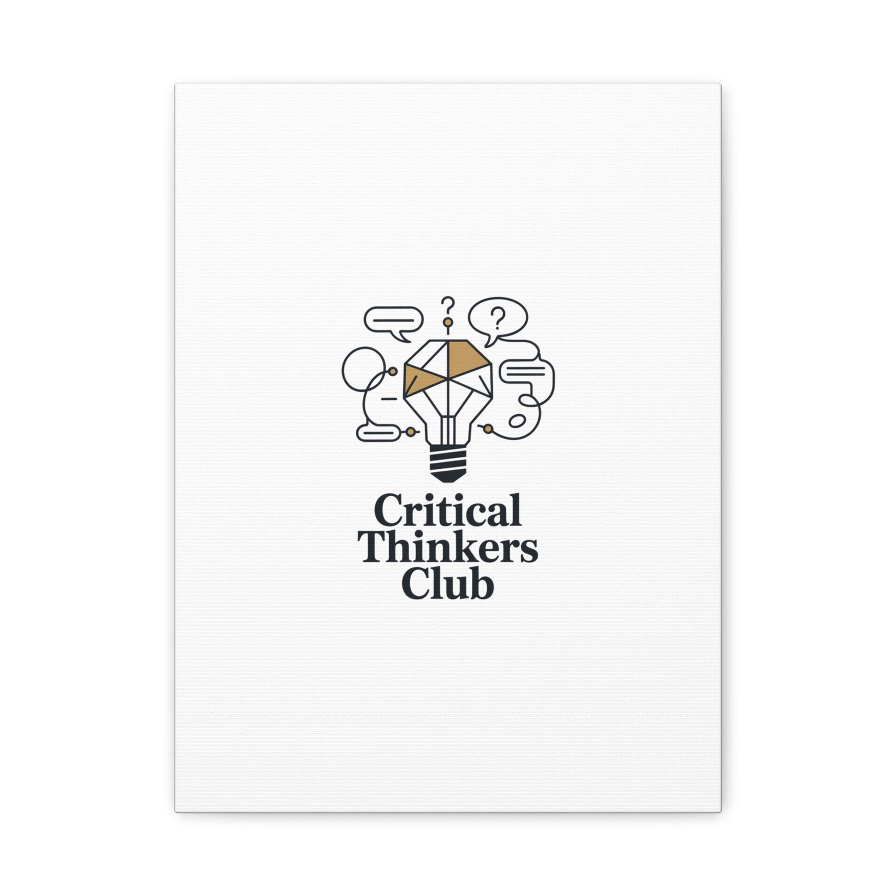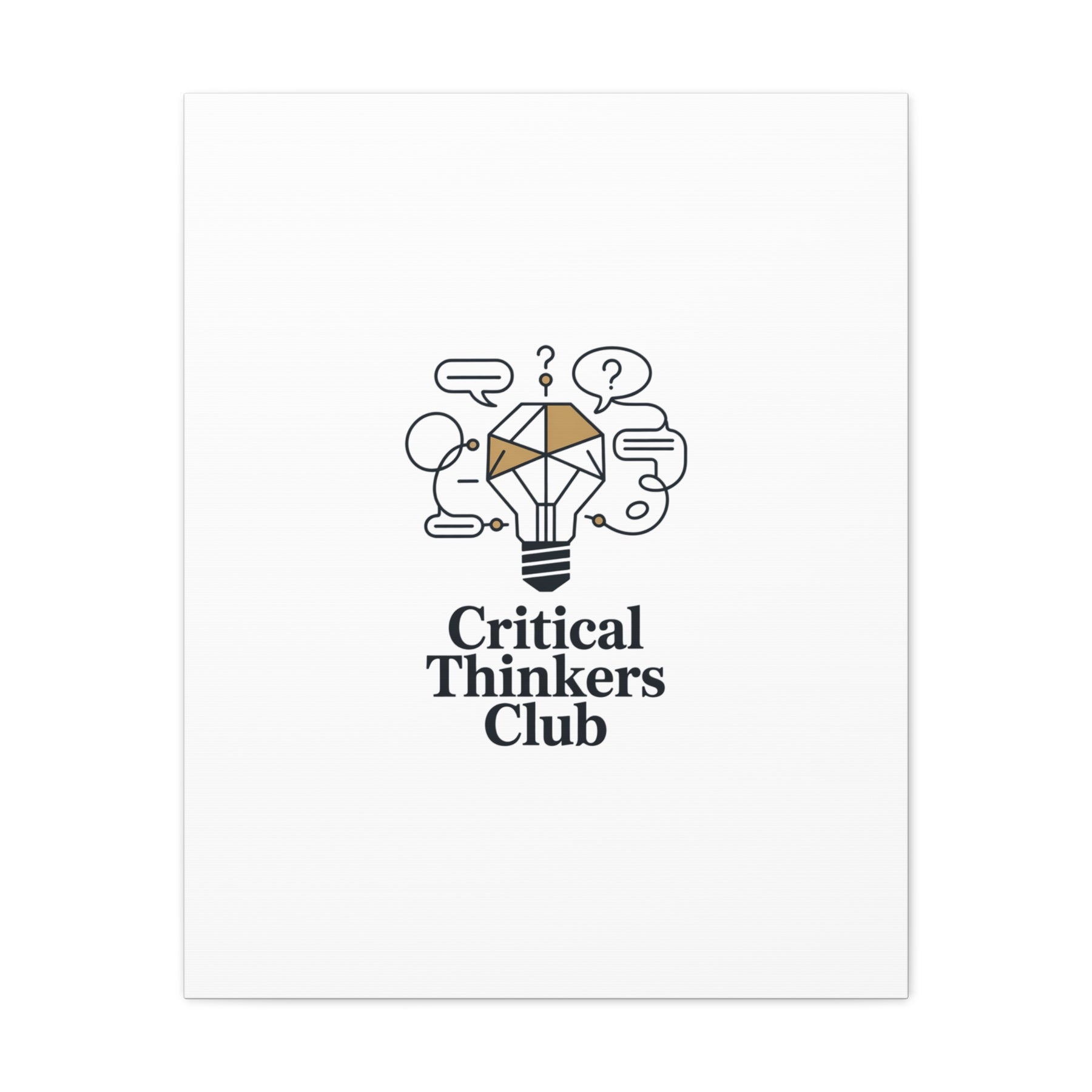 Minimal, academic-minded canvas print featuring a geometric lightbulb/brain emblem and club-style label that nods to the “Critical Thinkers Club” aesthetic. The artwork uses a restrained, limited palette and clean geometric lines with speech-bubble and question-mark motifs to signal thoughtful, apolitical wit. Stretched on a matte canvas with a subtle profile, it suits study corners, office walls, or classroom spaces where understated intellect and “processing moment” humor fit the decor. Product features - 2 rubber dots on bottom to keep canvas in place - Unique JONDO coating with UL-certified Greenguard Gold inks - Printed with non-hazardous latex inks - Canvas material: cotton/polyester composite; frame: pine wood - Back hanging included; multiple orientation and size options available Care instructions - If the canvas does gather any dust, you may wipe it off gently with a clean, damp cloth.