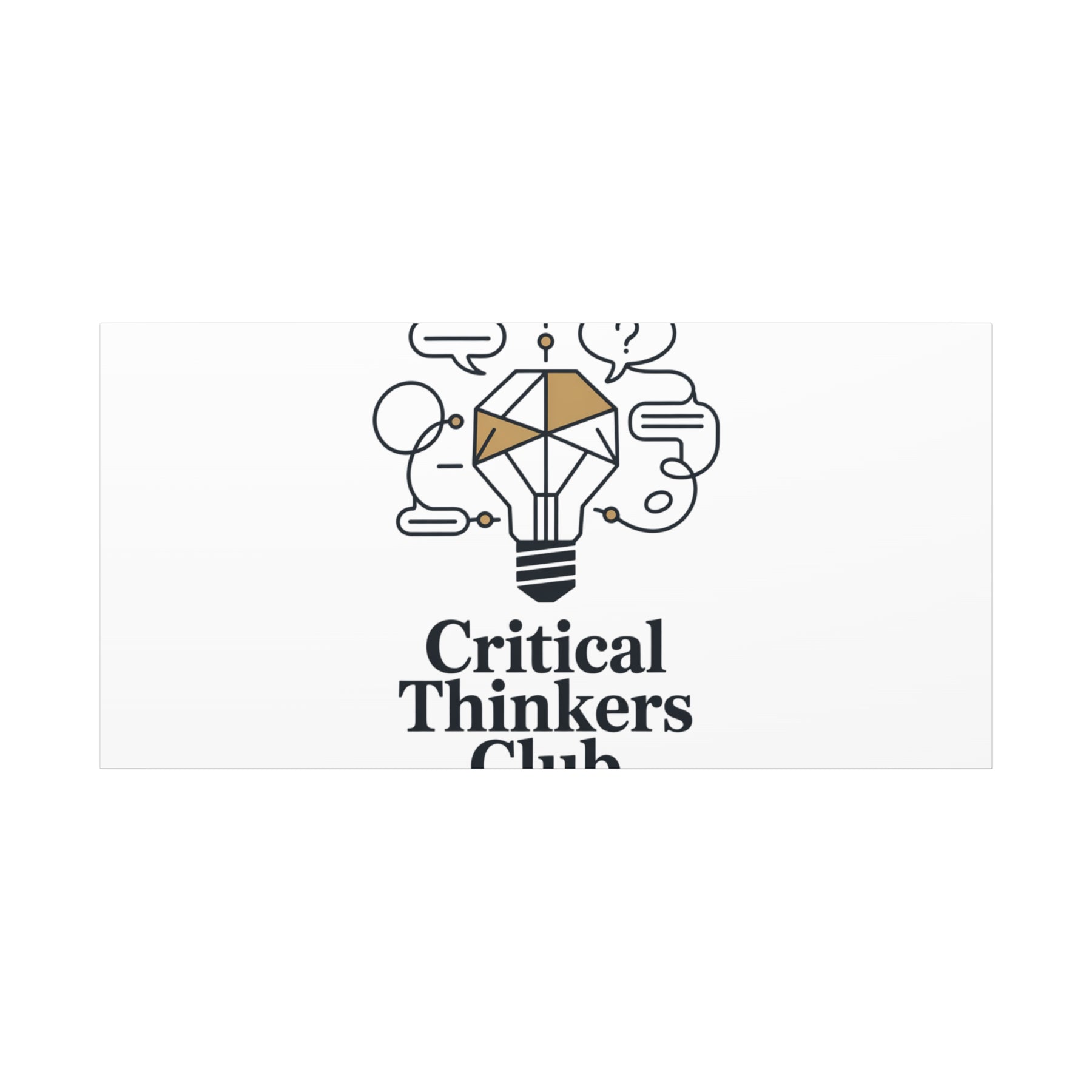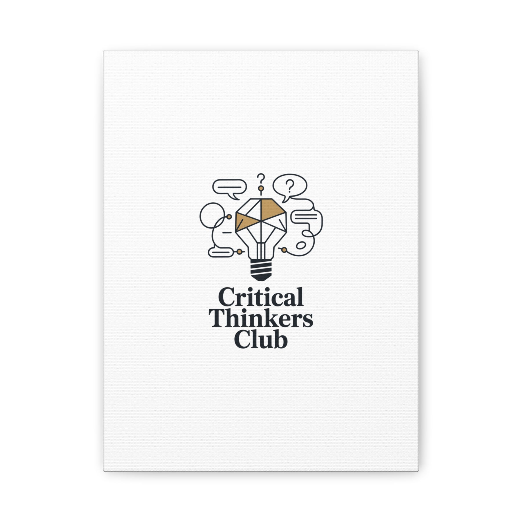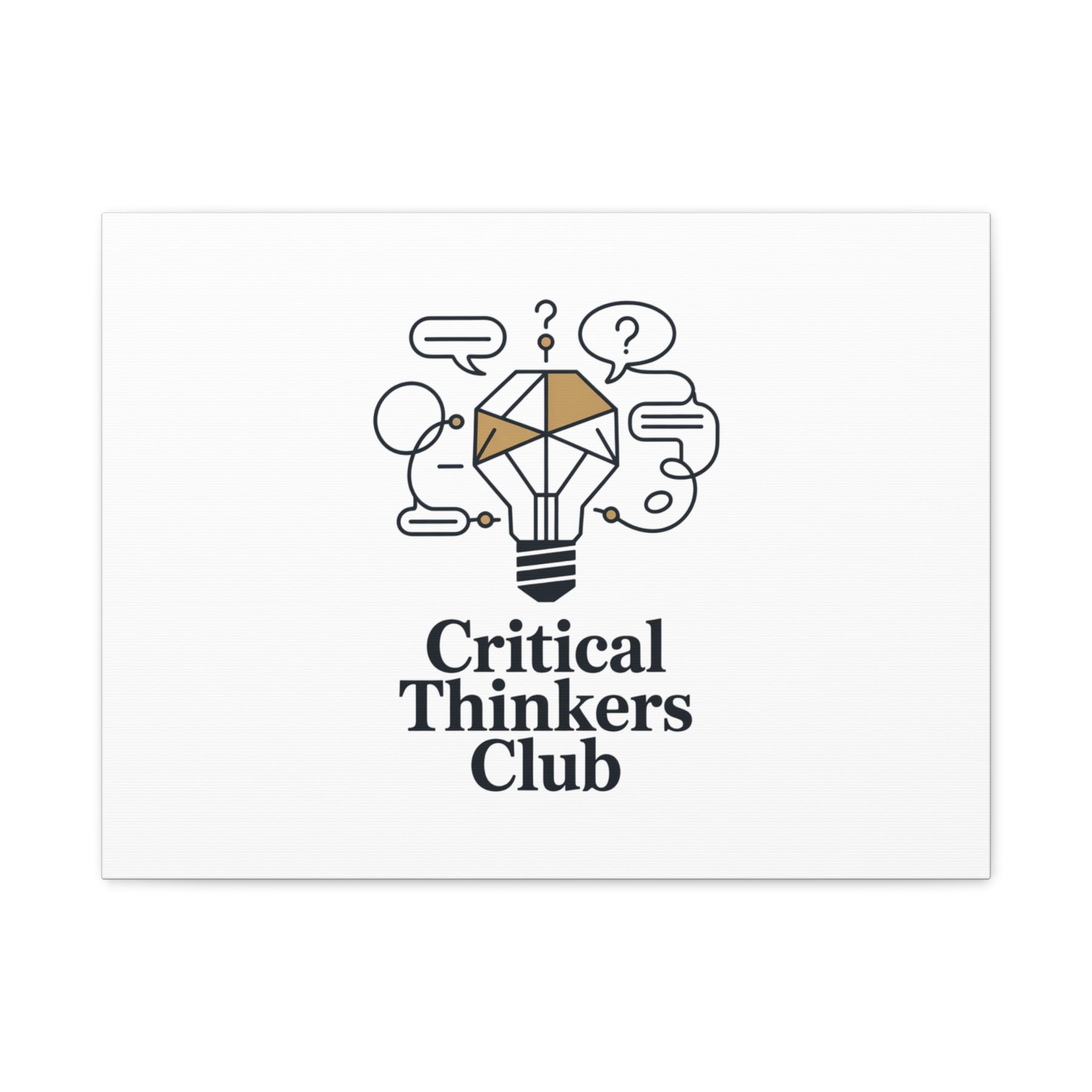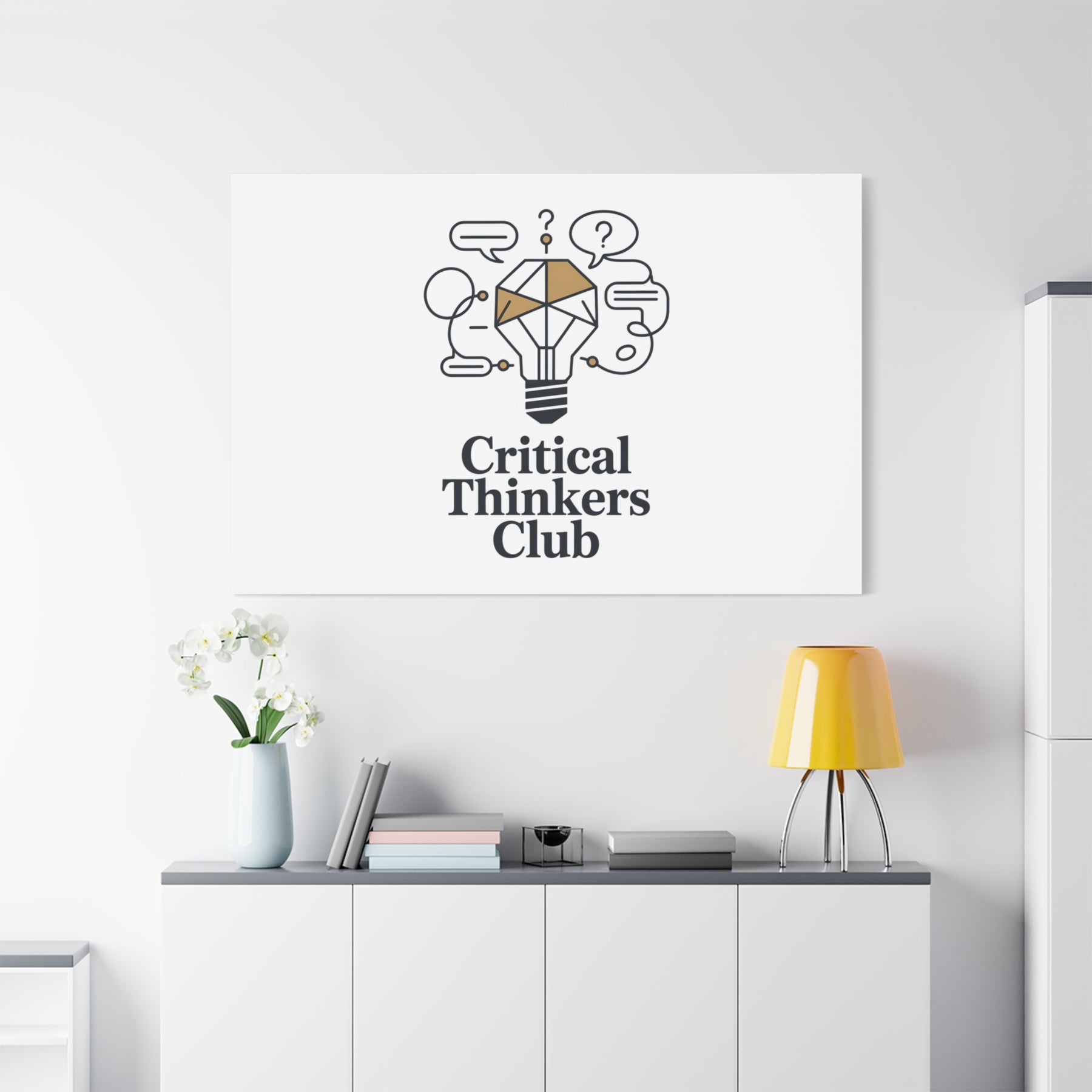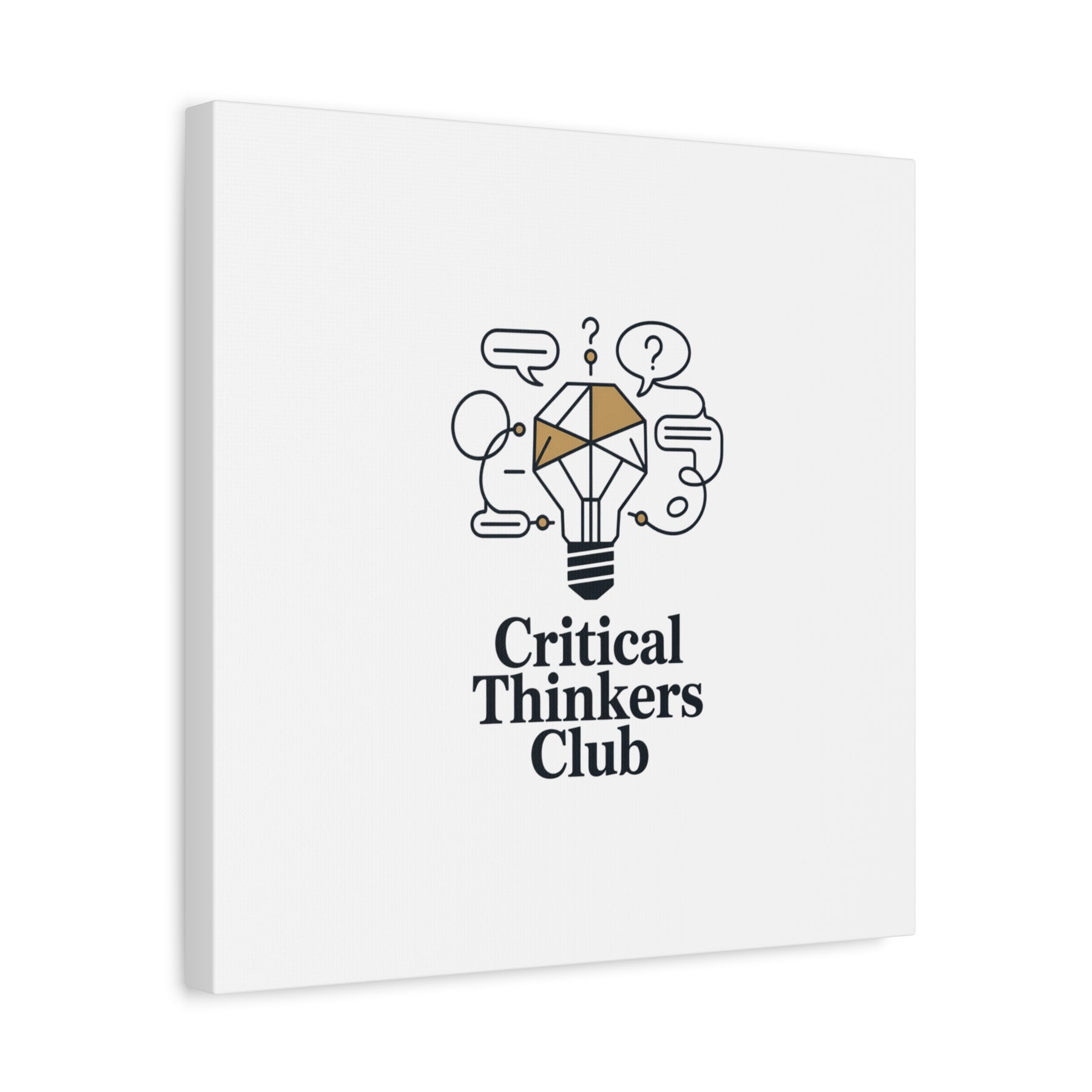 Minimal, academic-minded canvas print featuring a geometric lightbulb/brain emblem and club-style label that nods to the “Critical Thinkers Club” aesthetic. The artwork uses a restrained, limited palette and clean geometric lines with speech-bubble and question-mark motifs to signal thoughtful, apolitical wit. Stretched on a matte canvas with a subtle profile, it suits study corners, office walls, or classroom spaces where understated intellect and “processing moment” humor fit the decor. Product features - 2 rubber dots on bottom to keep canvas in place - Unique JONDO coating with UL-certified Greenguard Gold inks - Printed with non-hazardous latex inks - Canvas material: cotton/polyester composite; frame: pine wood - Back hanging included; multiple orientation and size options available Care instructions - If the canvas does gather any dust, you may wipe it off gently with a clean, damp cloth.