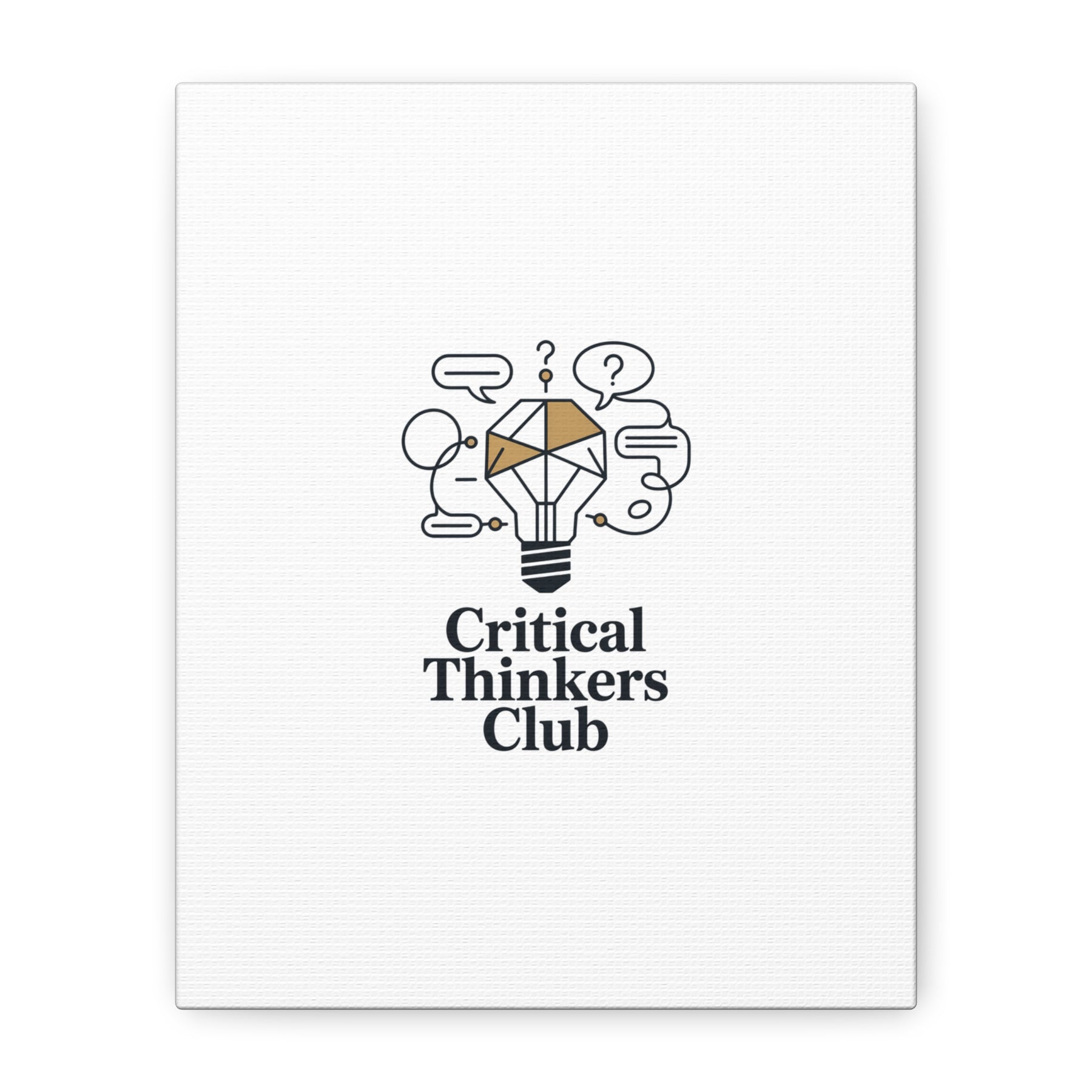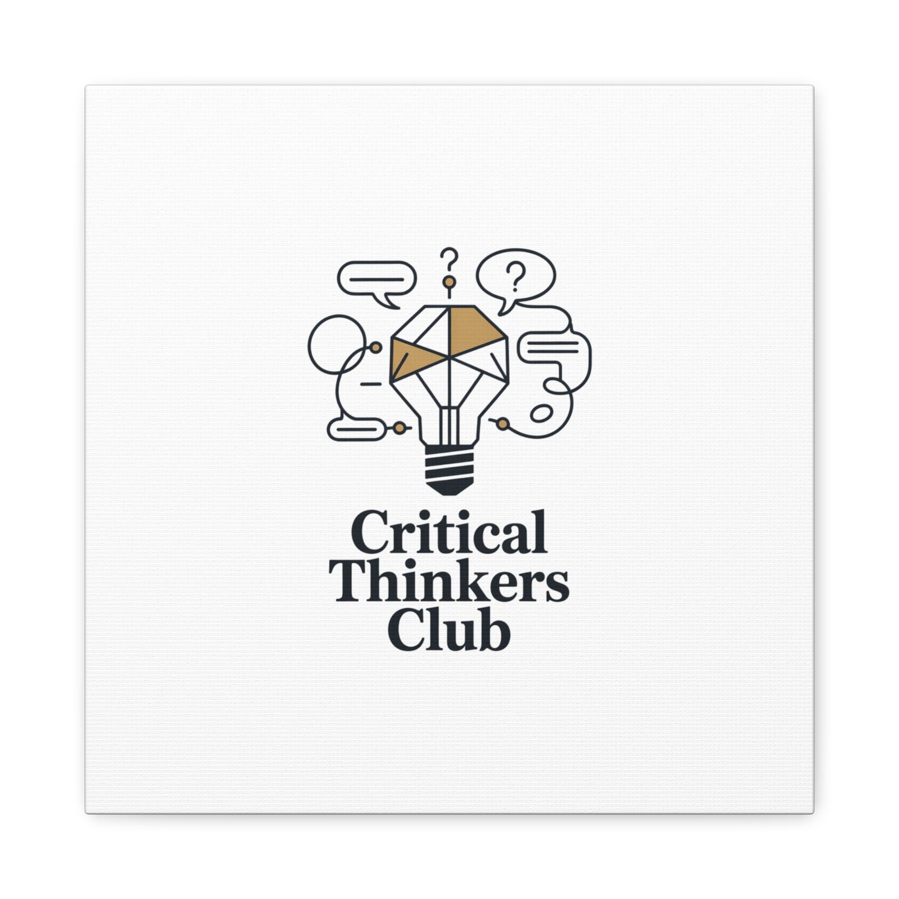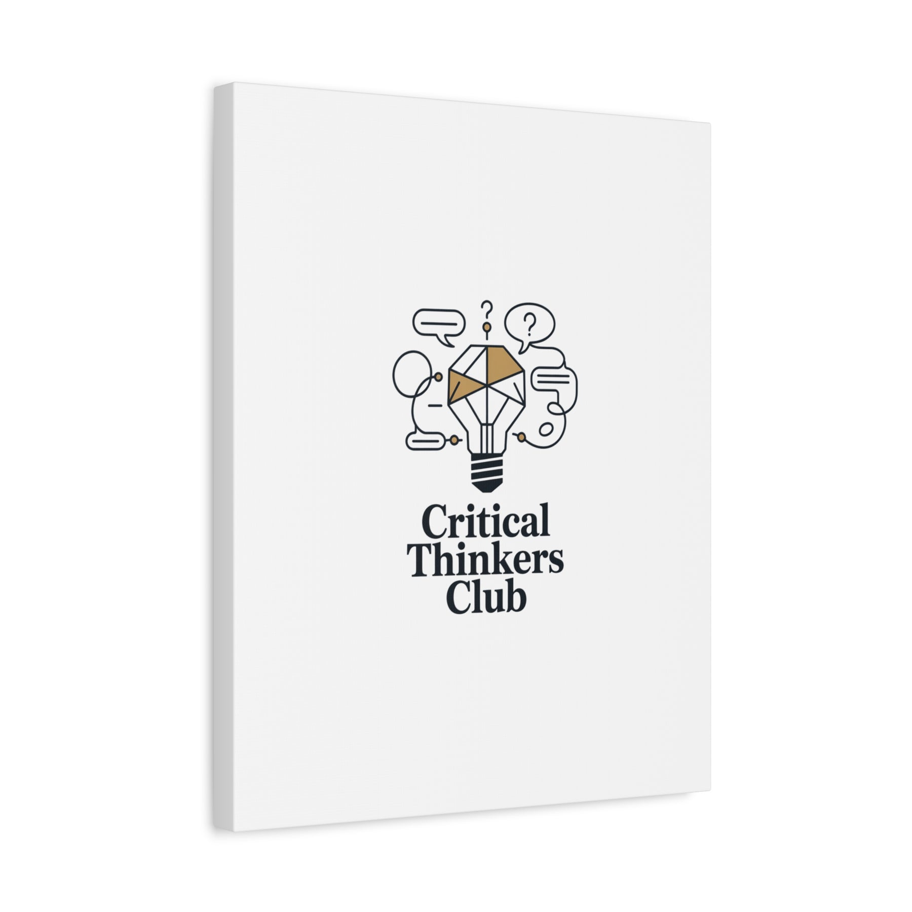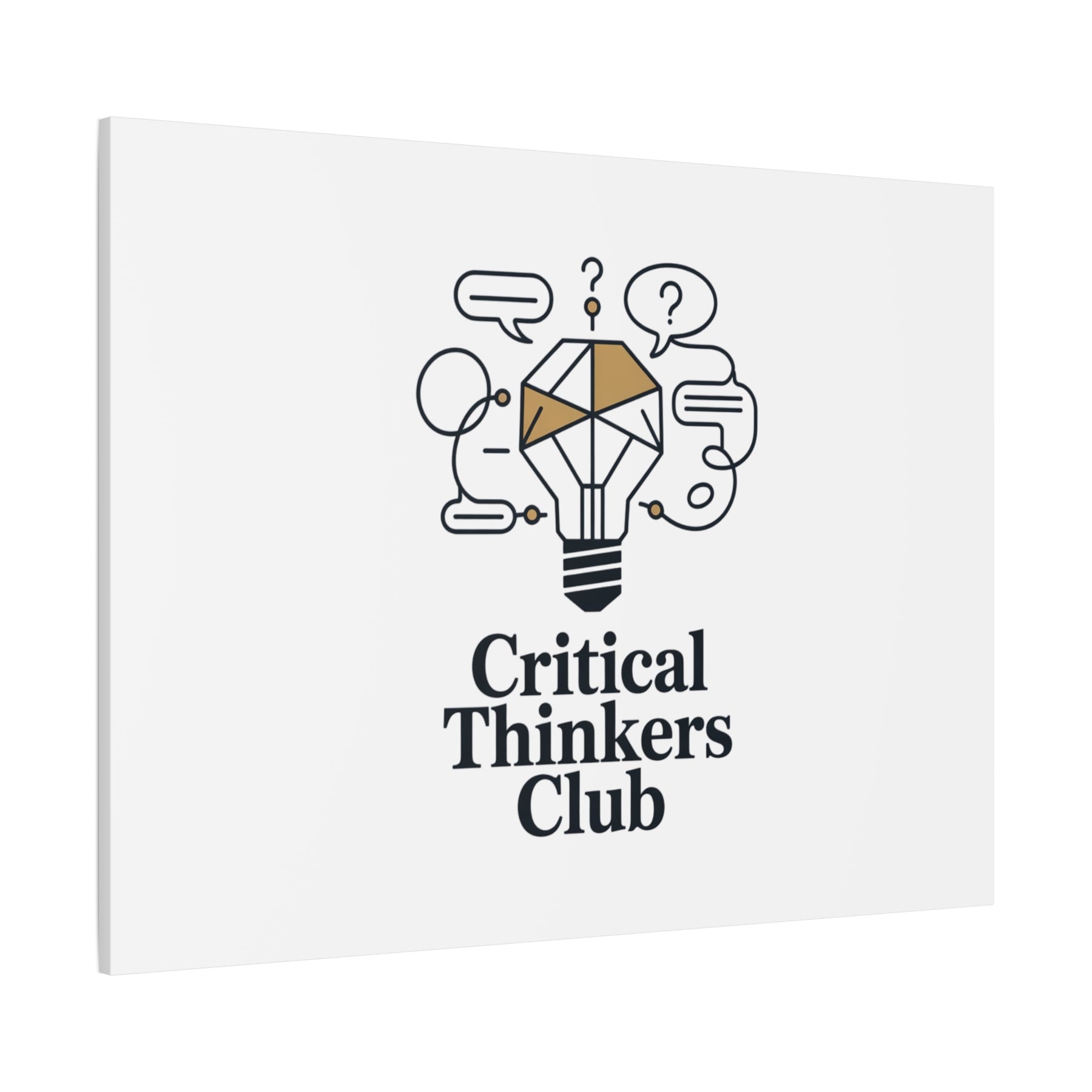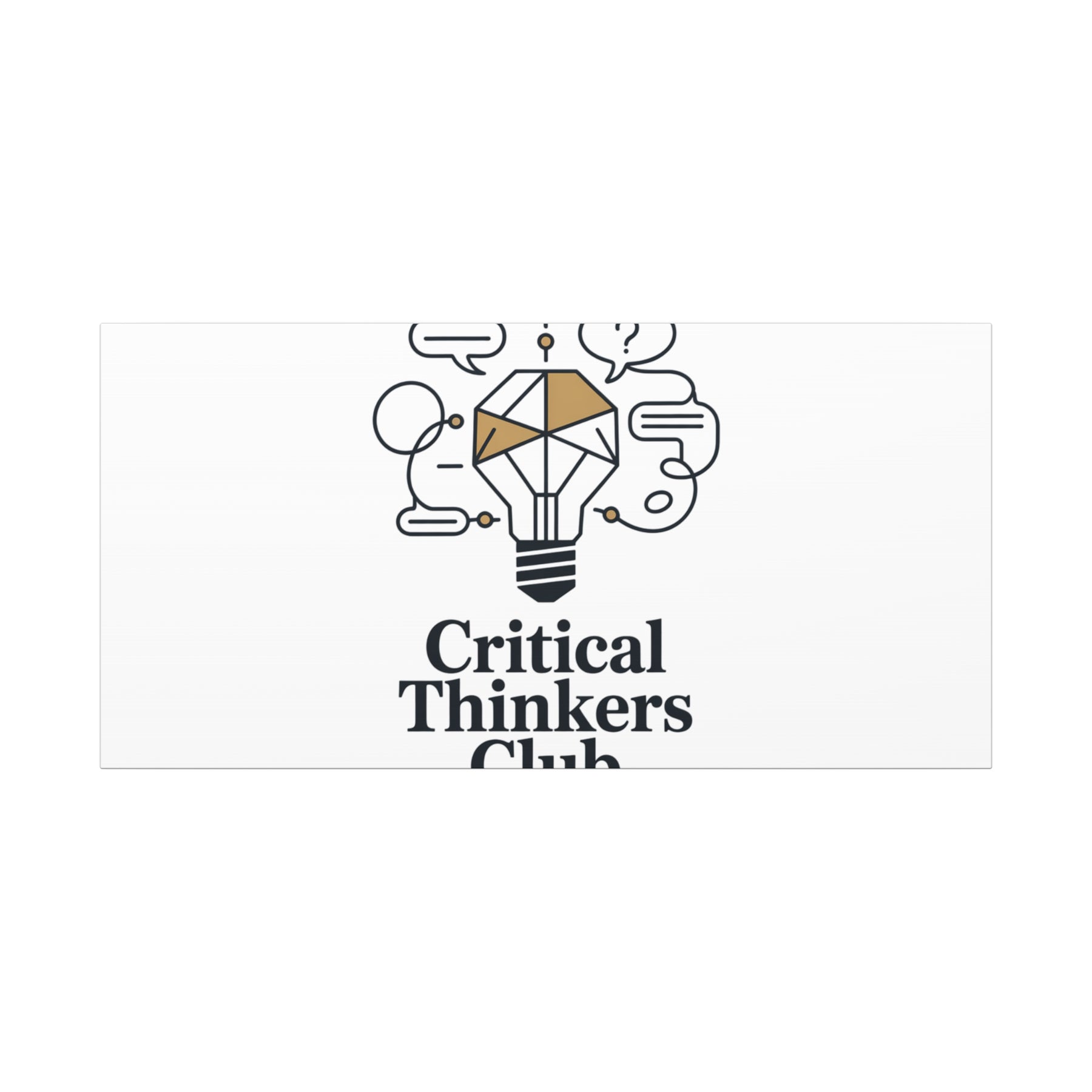 Minimal, academic-minded canvas print featuring a geometric lightbulb/brain emblem and club-style label that nods to the “Critical Thinkers Club” aesthetic. The artwork uses a restrained, limited palette and clean geometric lines with speech-bubble and question-mark motifs to signal thoughtful, apolitical wit. Stretched on a matte canvas with a subtle profile, it suits study corners, office walls, or classroom spaces where understated intellect and “processing moment” humor fit the decor. Product features - 2 rubber dots on bottom to keep canvas in place - Unique JONDO coating with UL-certified Greenguard Gold inks - Printed with non-hazardous latex inks - Canvas material: cotton/polyester composite; frame: pine wood - Back hanging included; multiple orientation and size options available Care instructions - If the canvas does gather any dust, you may wipe it off gently with a clean, damp cloth.