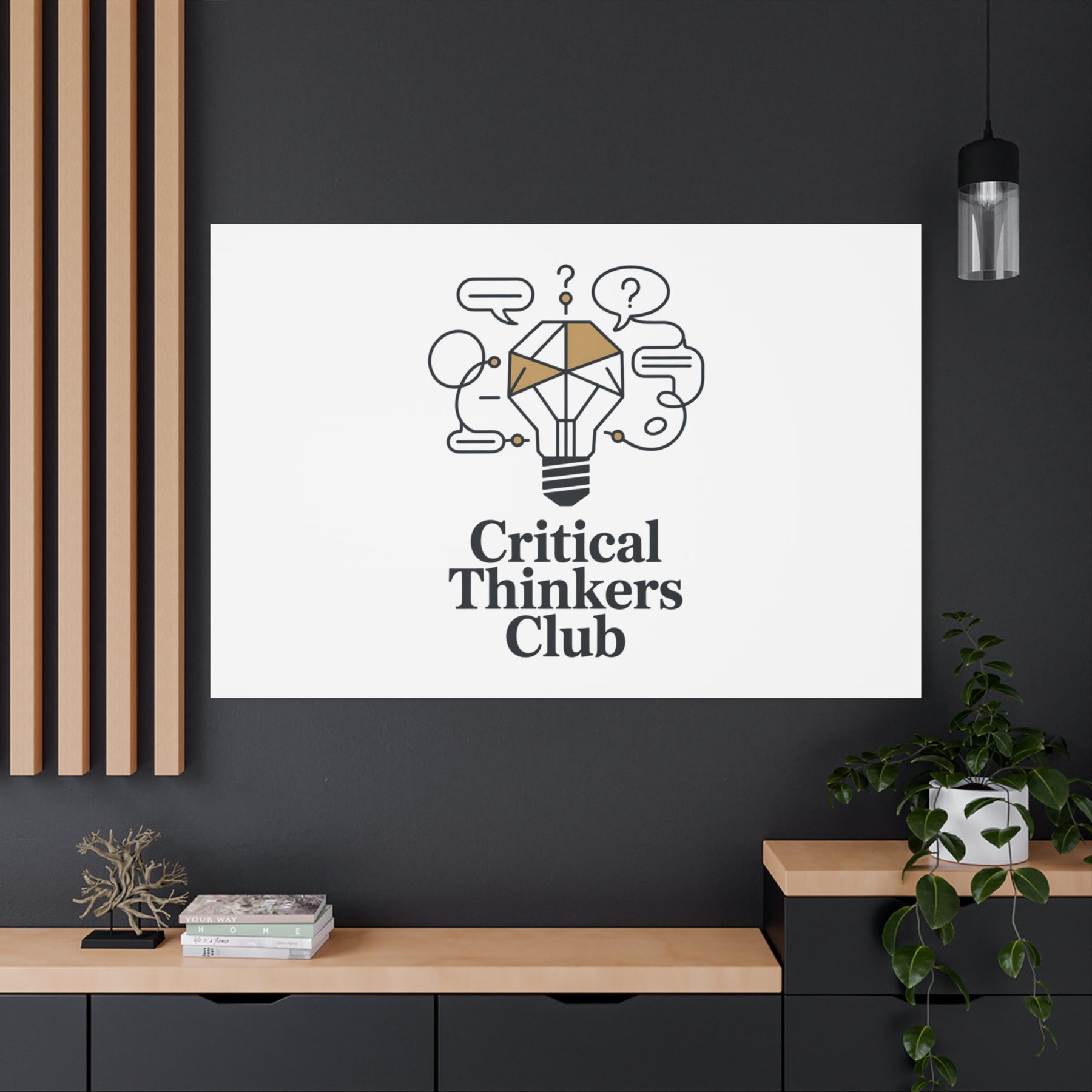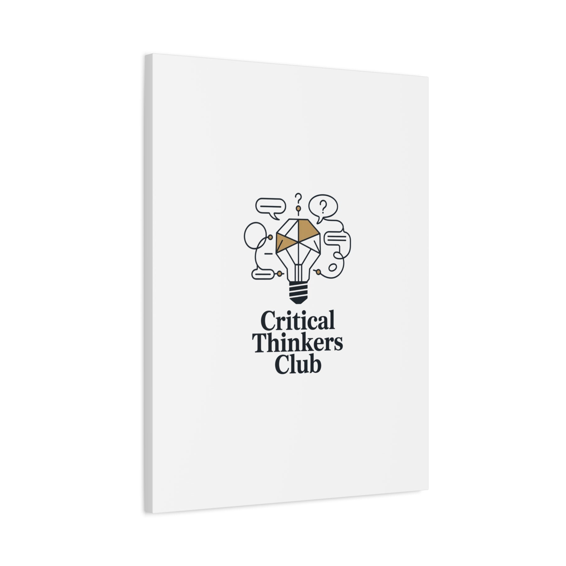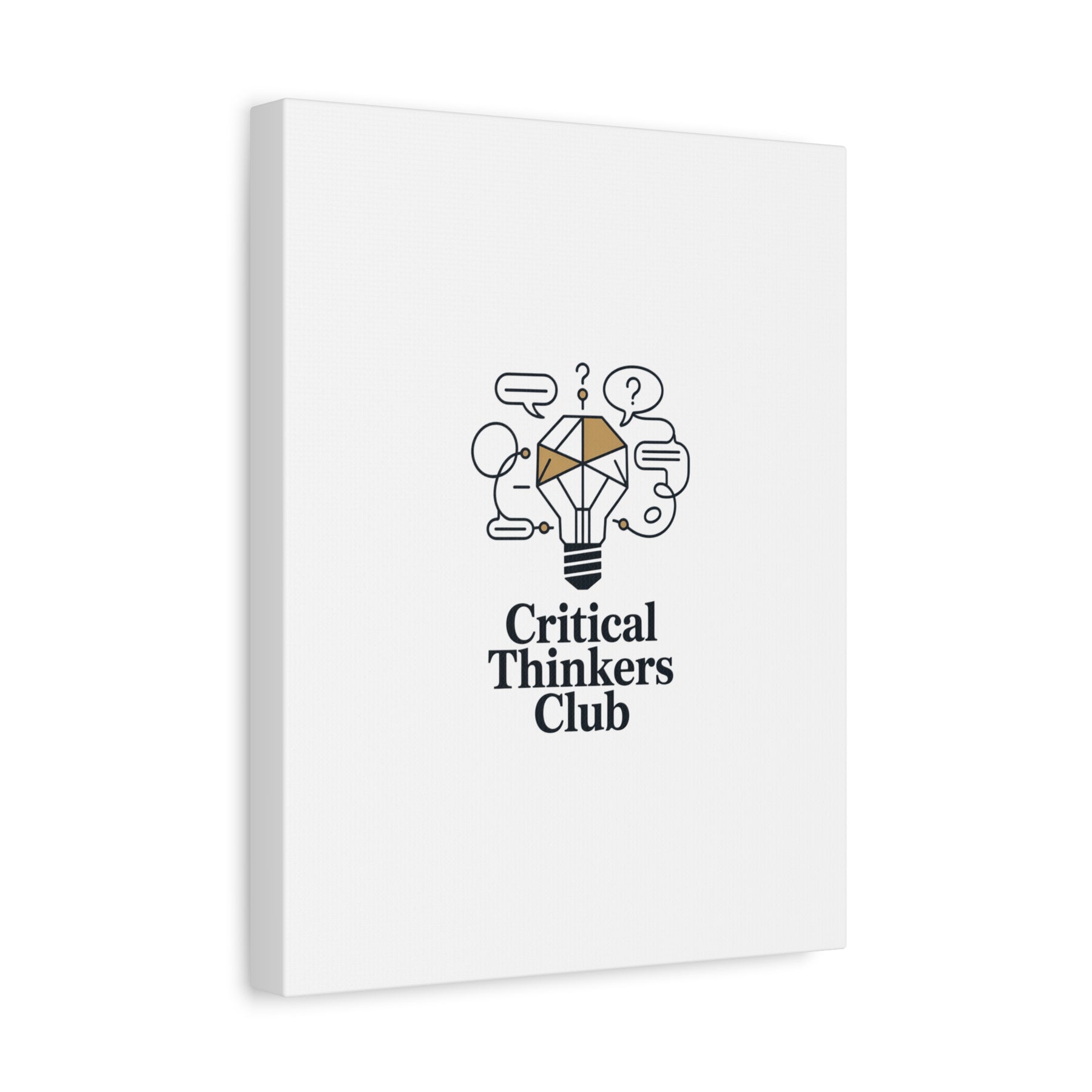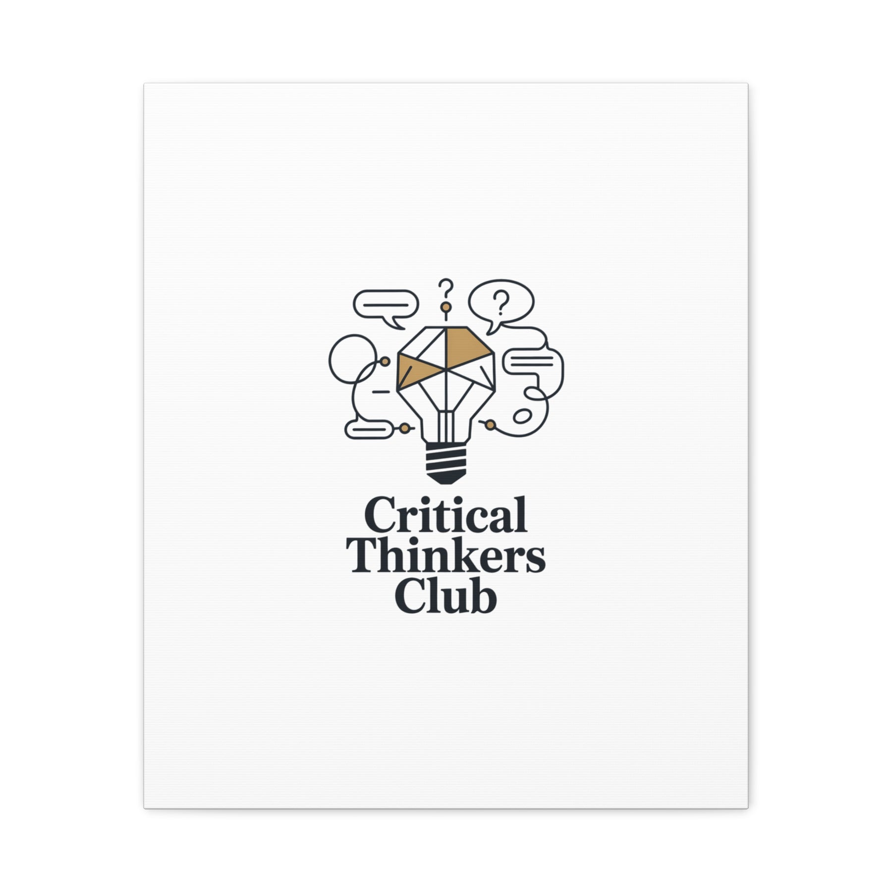 Minimal, academic-minded canvas print featuring a geometric lightbulb/brain emblem and club-style label that nods to the “Critical Thinkers Club” aesthetic. The artwork uses a restrained, limited palette and clean geometric lines with speech-bubble and question-mark motifs to signal thoughtful, apolitical wit. Stretched on a matte canvas with a subtle profile, it suits study corners, office walls, or classroom spaces where understated intellect and “processing moment” humor fit the decor. Product features - 2 rubber dots on bottom to keep canvas in place - Unique JONDO coating with UL-certified Greenguard Gold inks - Printed with non-hazardous latex inks - Canvas material: cotton/polyester composite; frame: pine wood - Back hanging included; multiple orientation and size options available Care instructions - If the canvas does gather any dust, you may wipe it off gently with a clean, damp cloth.