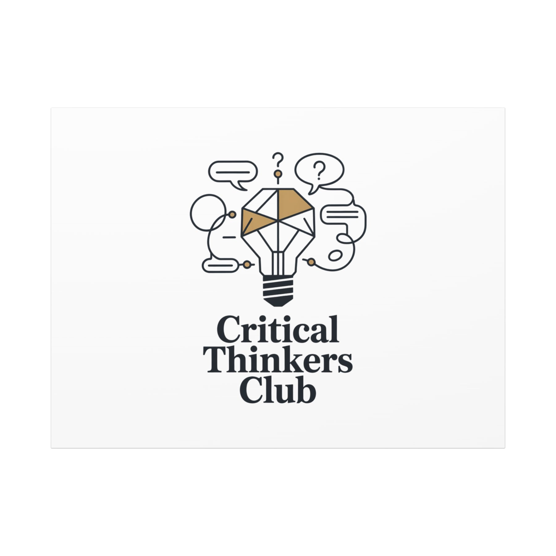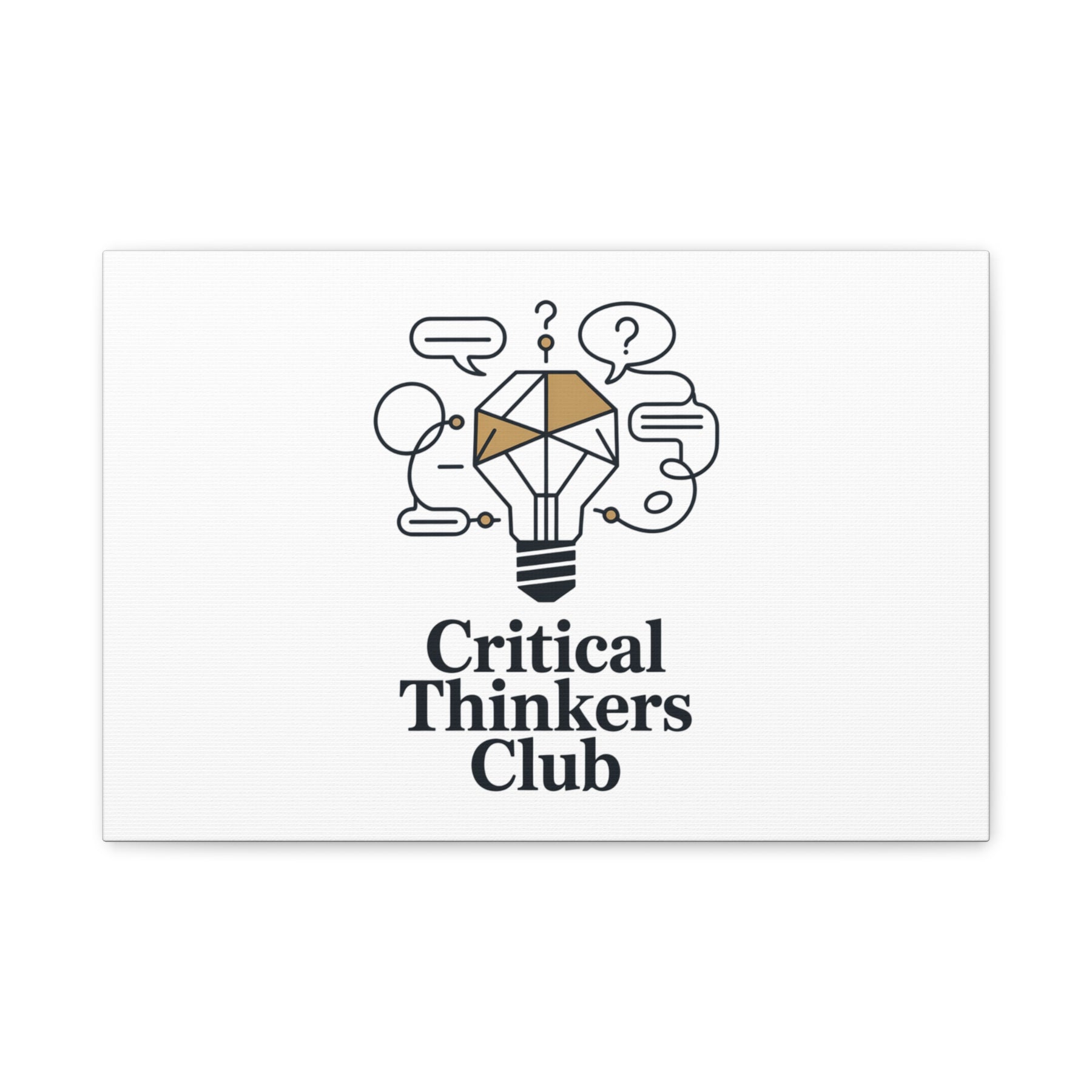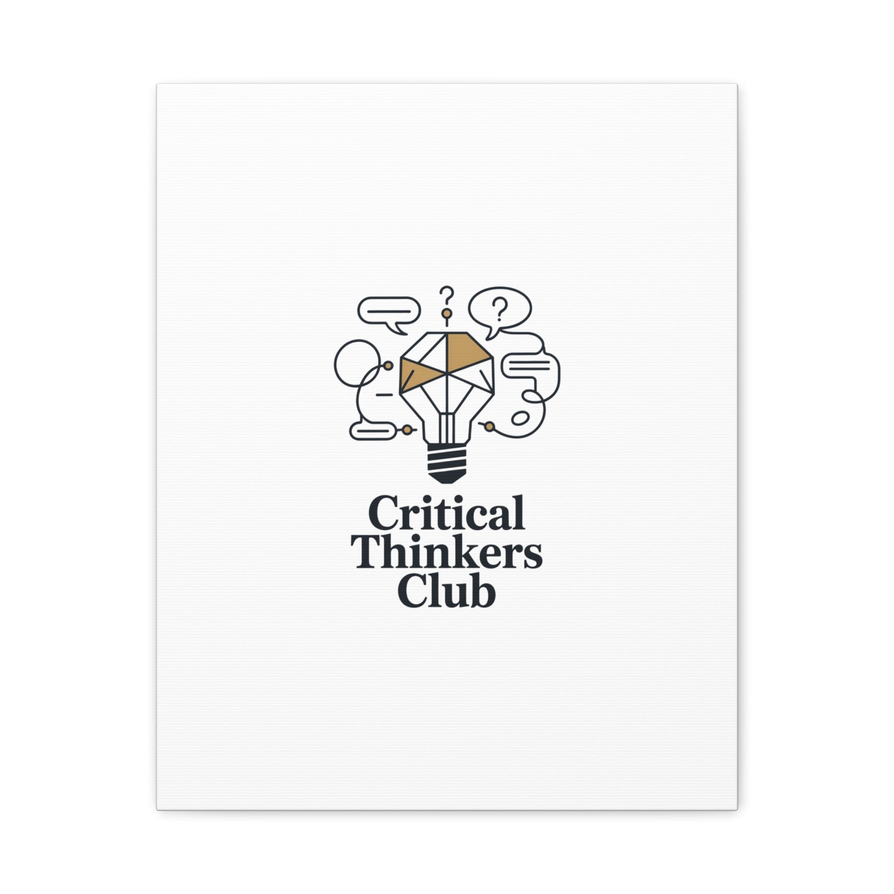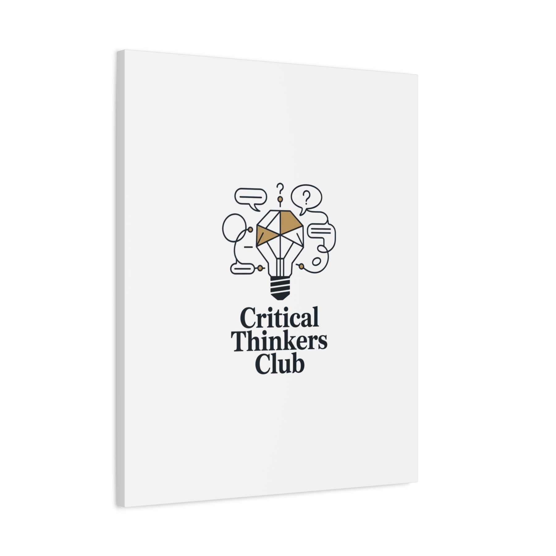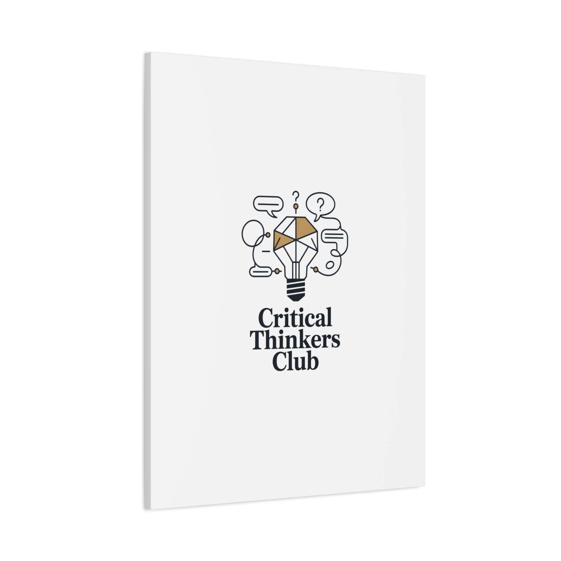 Minimal, academic-minded canvas print featuring a geometric lightbulb/brain emblem and club-style label that nods to the “Critical Thinkers Club” aesthetic. The artwork uses a restrained, limited palette and clean geometric lines with speech-bubble and question-mark motifs to signal thoughtful, apolitical wit. Stretched on a matte canvas with a subtle profile, it suits study corners, office walls, or classroom spaces where understated intellect and “processing moment” humor fit the decor. Product features - 2 rubber dots on bottom to keep canvas in place - Unique JONDO coating with UL-certified Greenguard Gold inks - Printed with non-hazardous latex inks - Canvas material: cotton/polyester composite; frame: pine wood - Back hanging included; multiple orientation and size options available Care instructions - If the canvas does gather any dust, you may wipe it off gently with a clean, damp cloth.