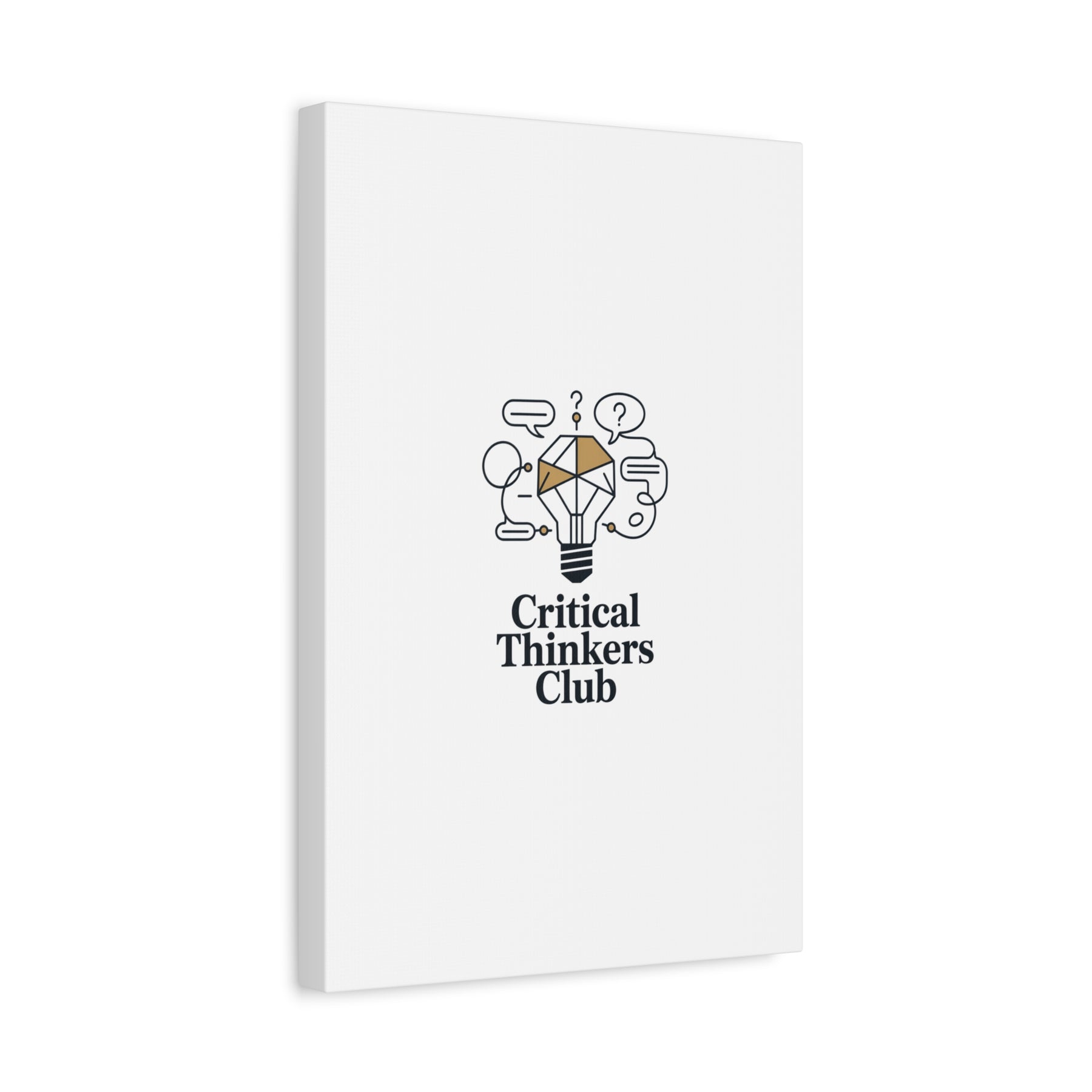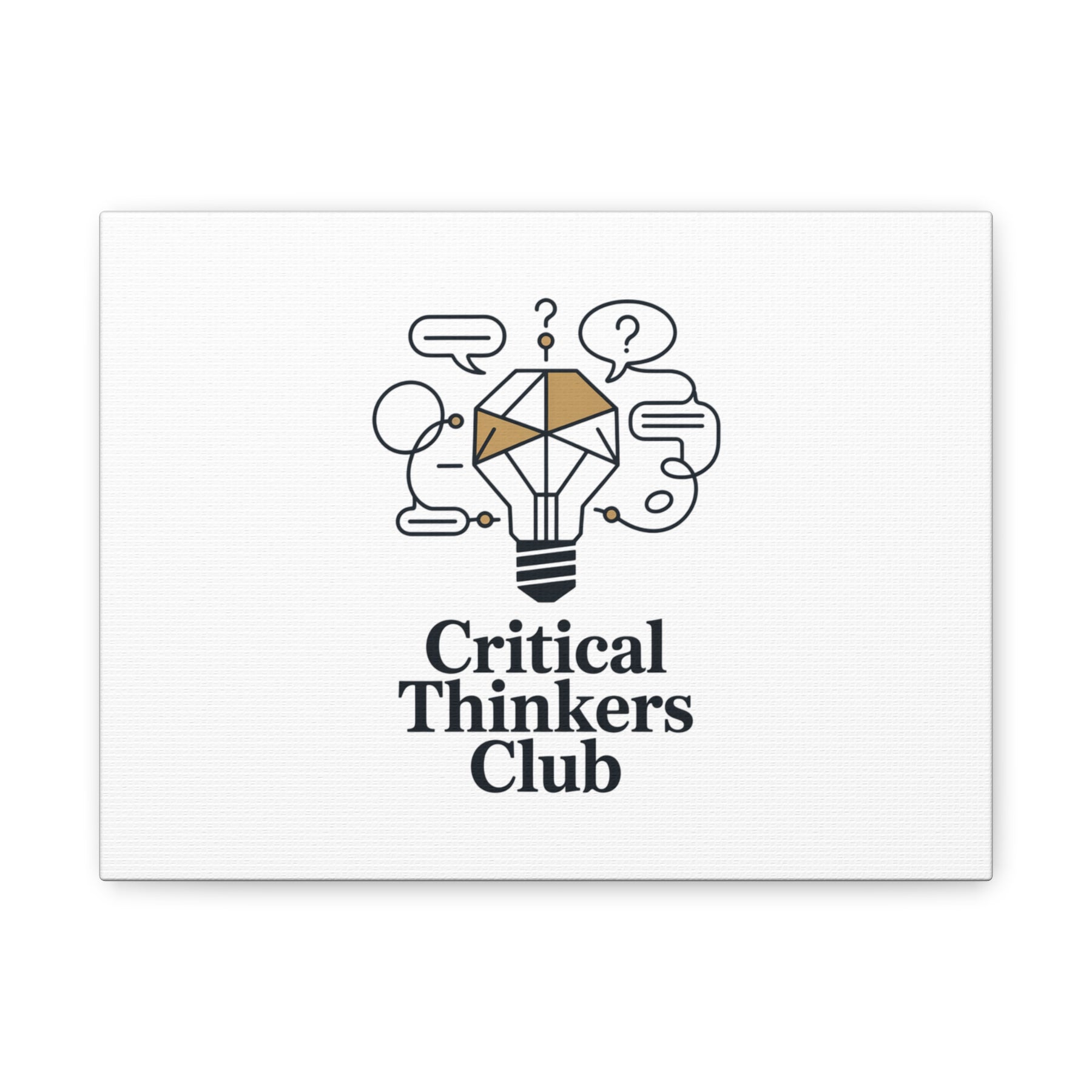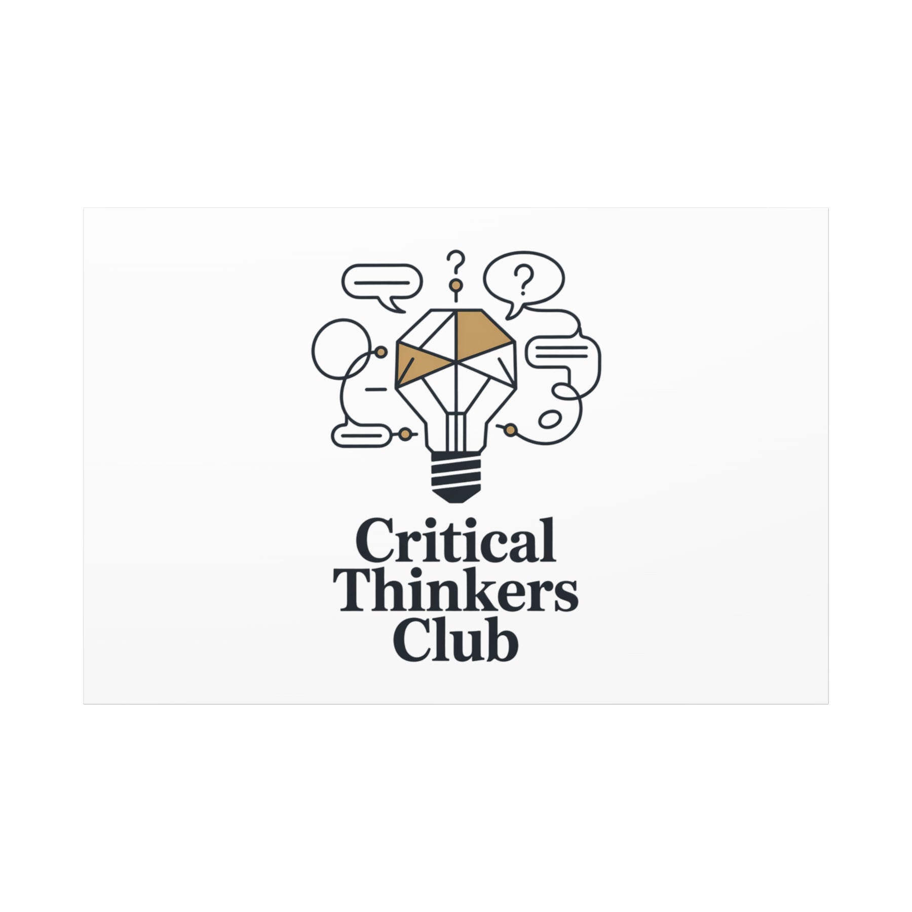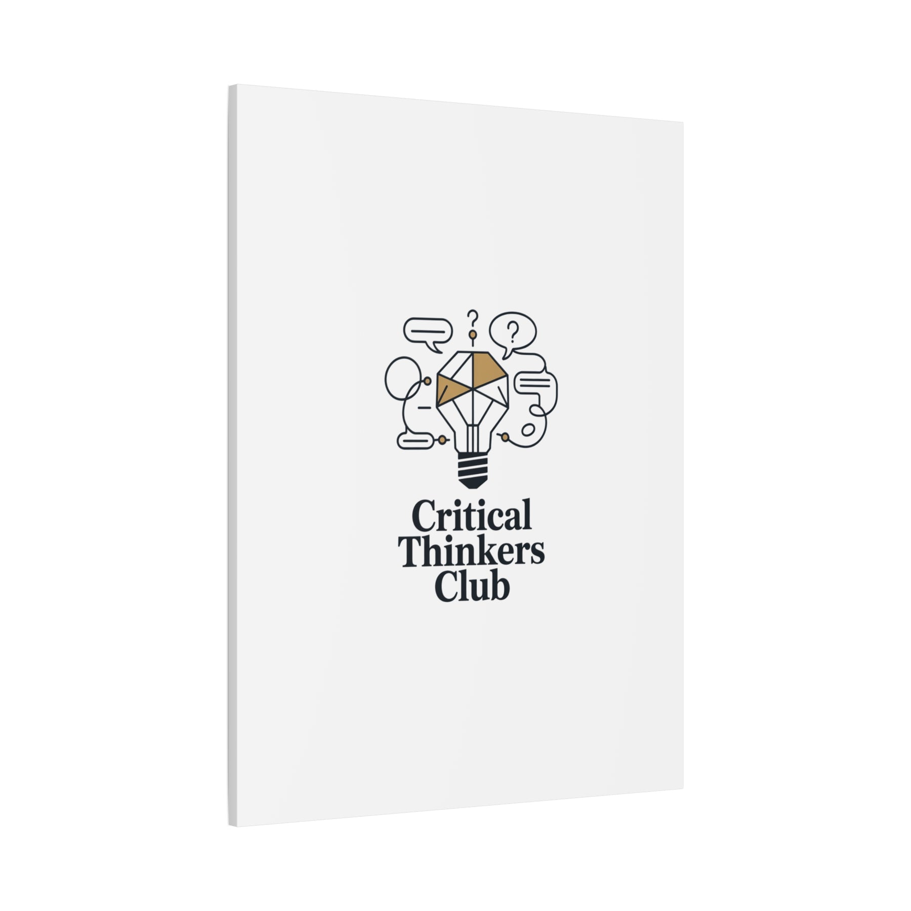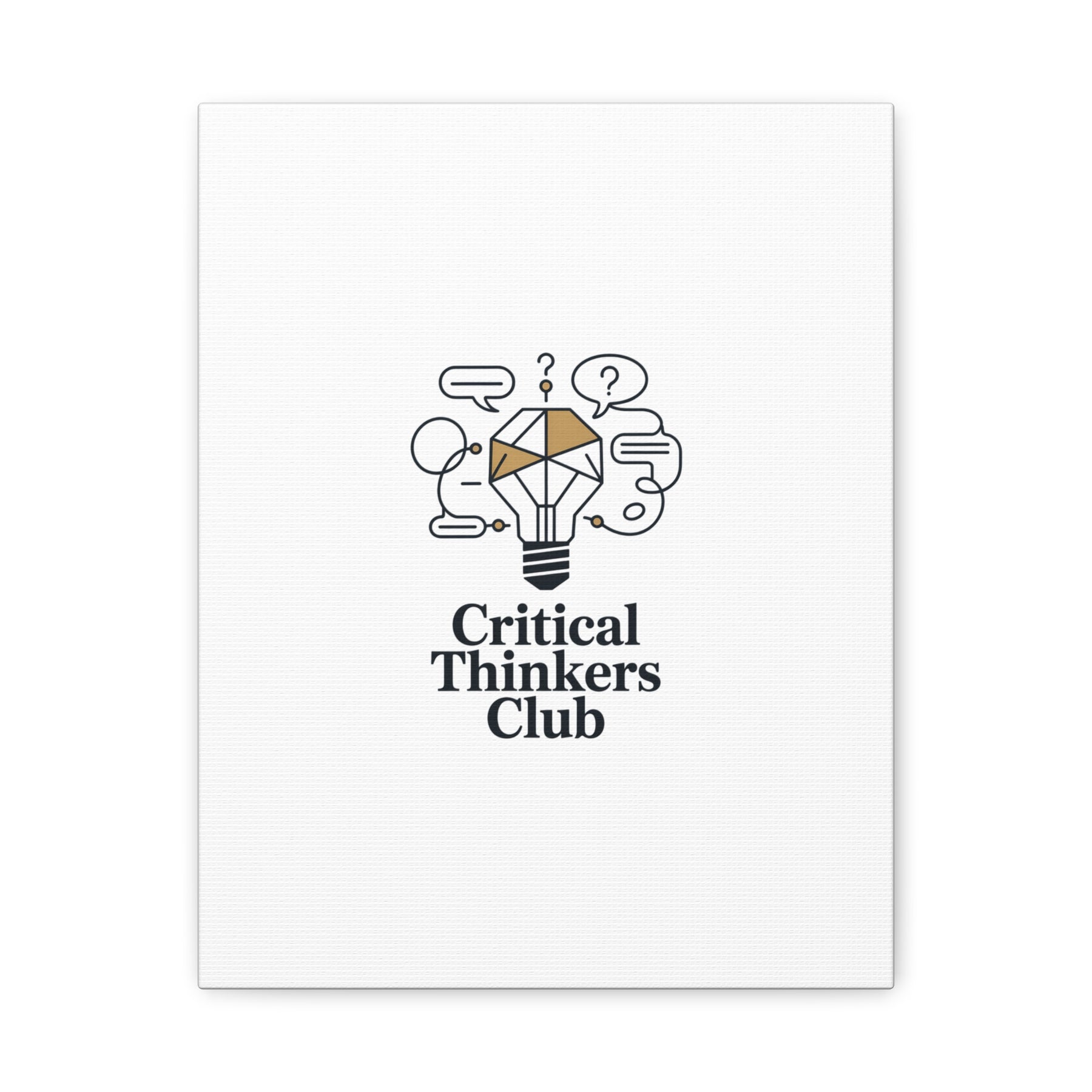Minimal, academic-minded canvas print featuring a geometric lightbulb/brain emblem and club-style label that nods to the “Critical Thinkers Club” aesthetic. The artwork uses a restrained, limited palette and clean geometric lines with speech-bubble and question-mark motifs to signal thoughtful, apolitical wit. Stretched on a matte canvas with a subtle profile, it suits study corners, office walls, or classroom spaces where understated intellect and “processing moment” humor fit the decor. Product features - 2 rubber dots on bottom to keep canvas in place - Unique JONDO coating with UL-certified Greenguard Gold inks - Printed with non-hazardous latex inks - Canvas material: cotton/polyester composite; frame: pine wood - Back hanging included; multiple orientation and size options available Care instructions - If the canvas does gather any dust, you may wipe it off gently with a clean, damp cloth.