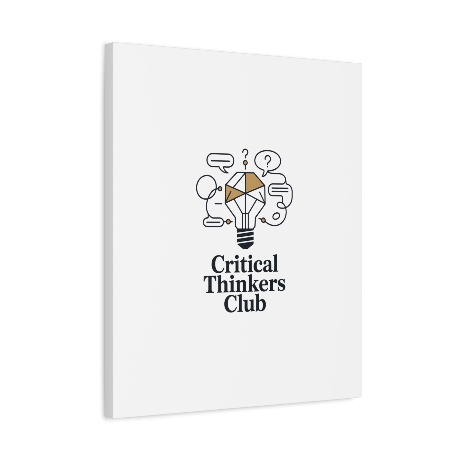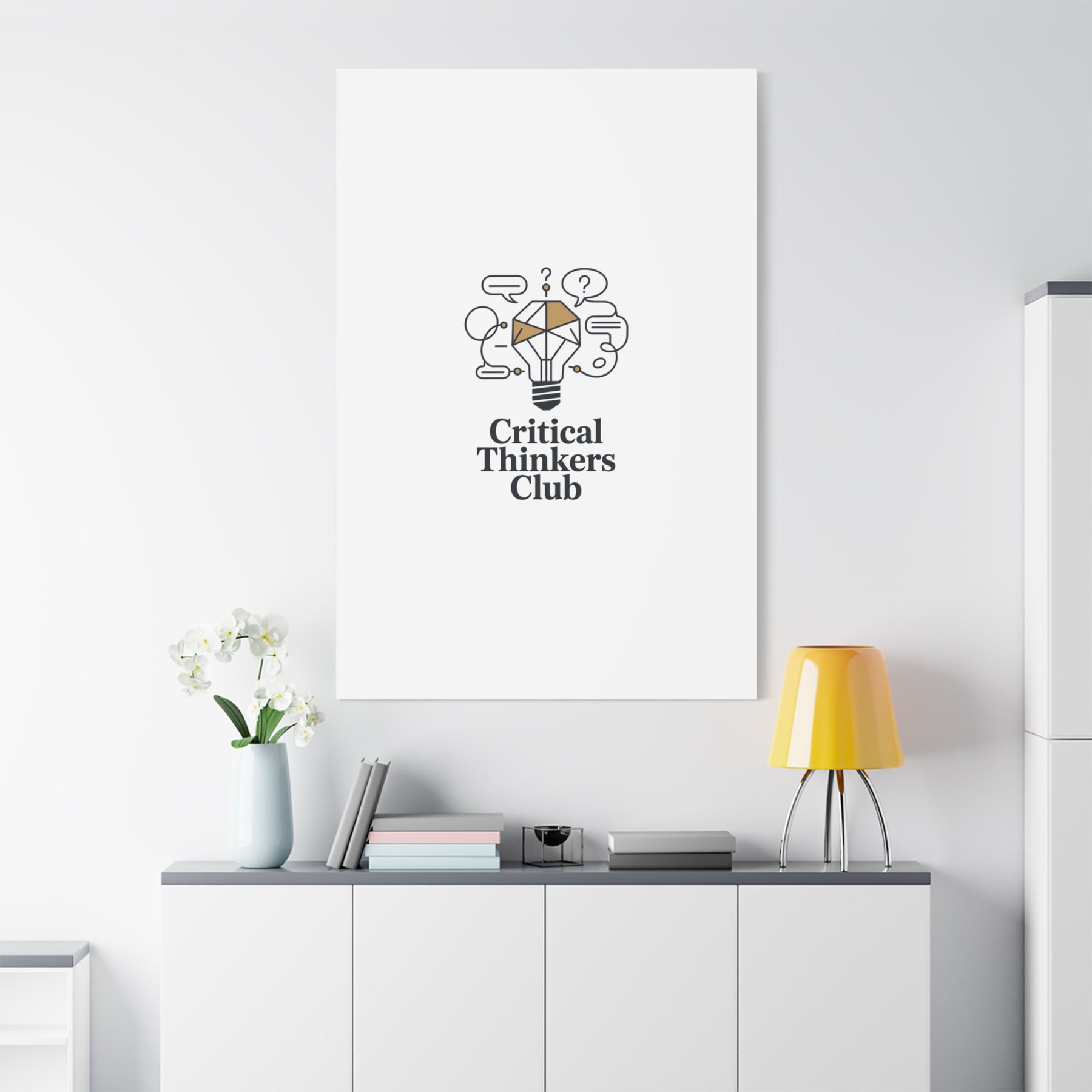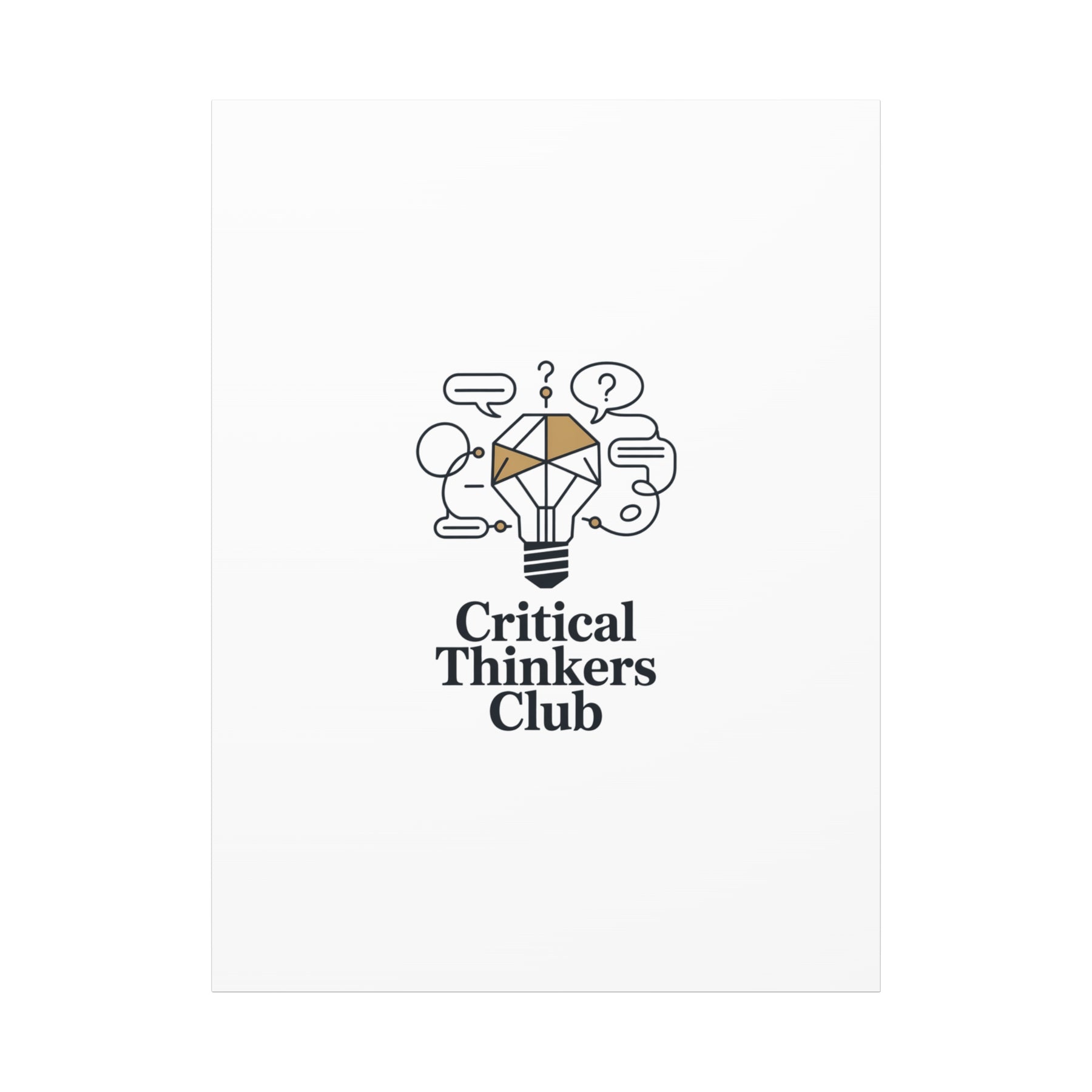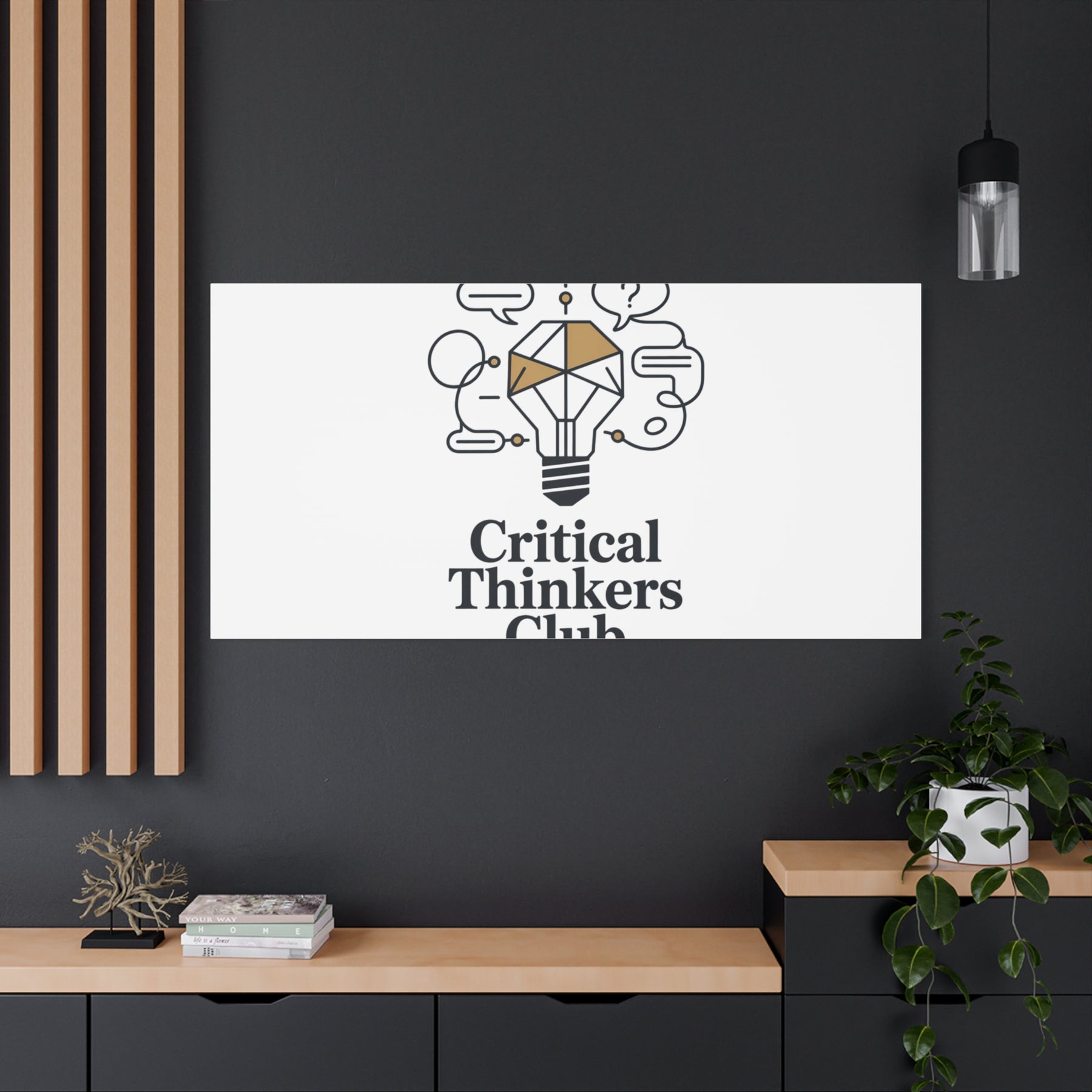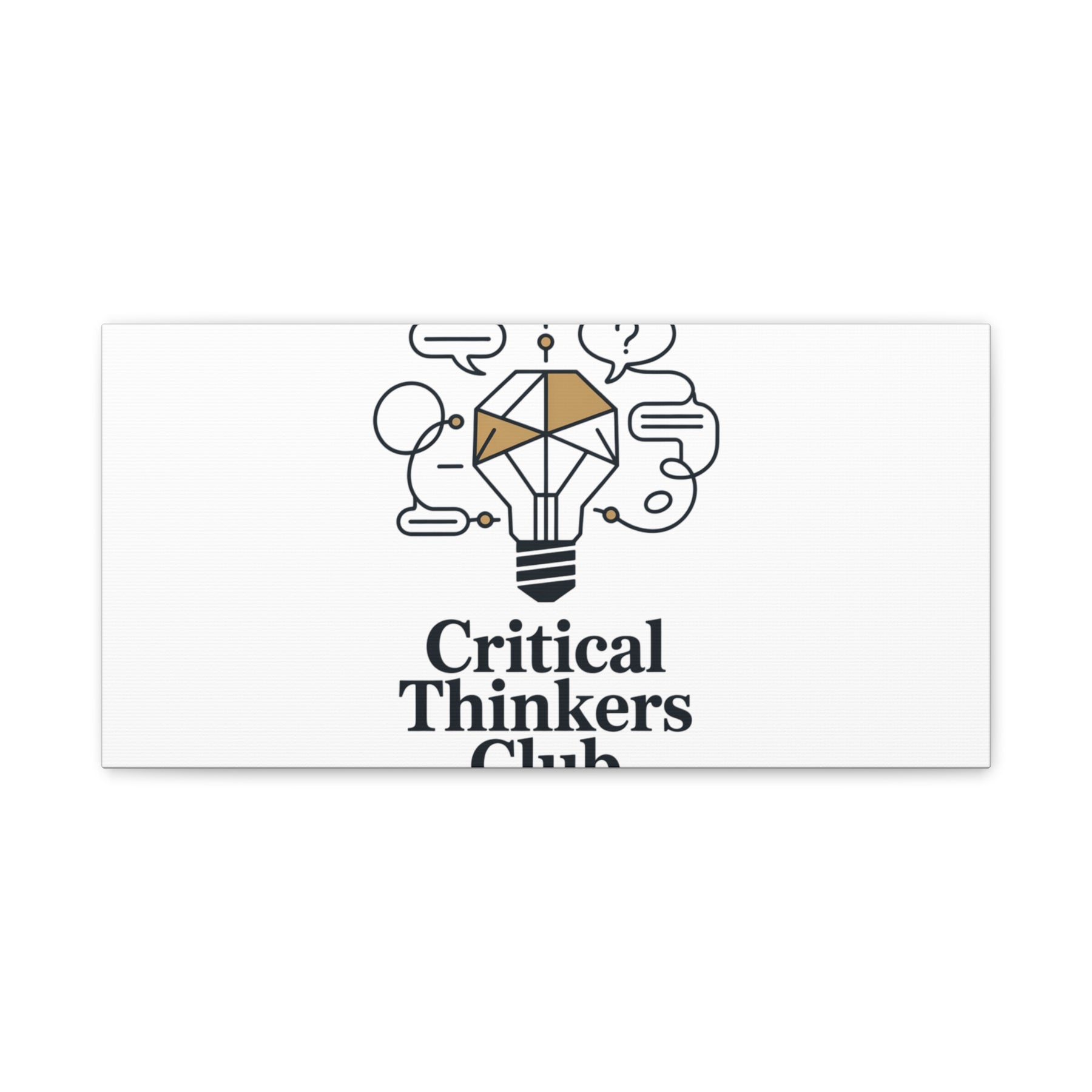 Minimal, academic-minded canvas print featuring a geometric lightbulb/brain emblem and club-style label that nods to the “Critical Thinkers Club” aesthetic. The artwork uses a restrained, limited palette and clean geometric lines with speech-bubble and question-mark motifs to signal thoughtful, apolitical wit. Stretched on a matte canvas with a subtle profile, it suits study corners, office walls, or classroom spaces where understated intellect and “processing moment” humor fit the decor. Product features - 2 rubber dots on bottom to keep canvas in place - Unique JONDO coating with UL-certified Greenguard Gold inks - Printed with non-hazardous latex inks - Canvas material: cotton/polyester composite; frame: pine wood - Back hanging included; multiple orientation and size options available Care instructions - If the canvas does gather any dust, you may wipe it off gently with a clean, damp cloth.