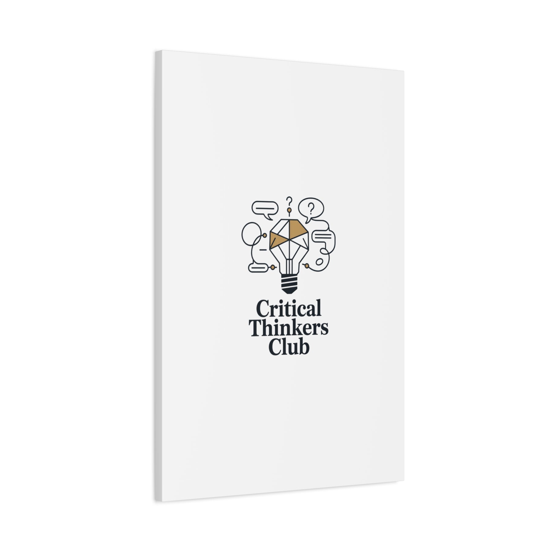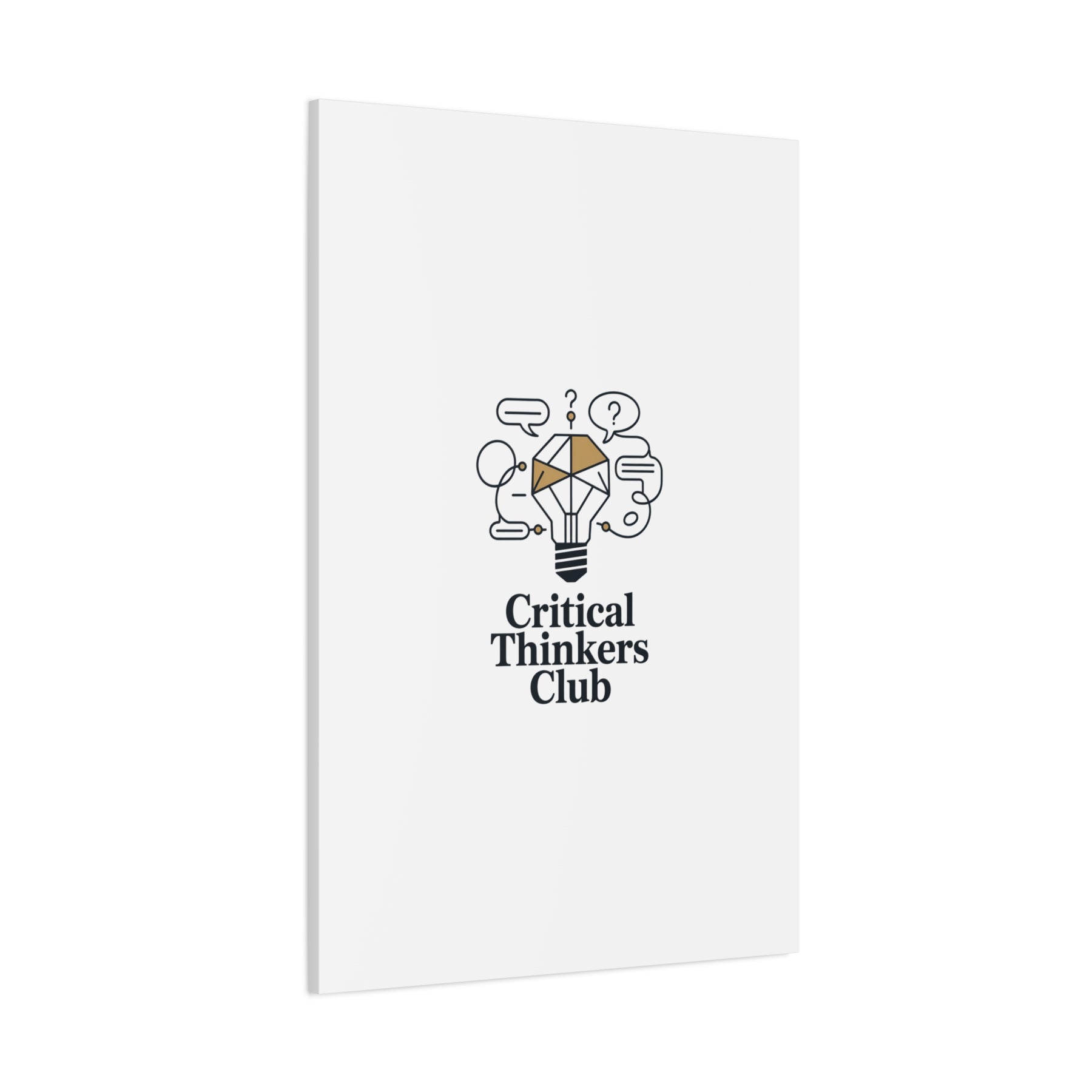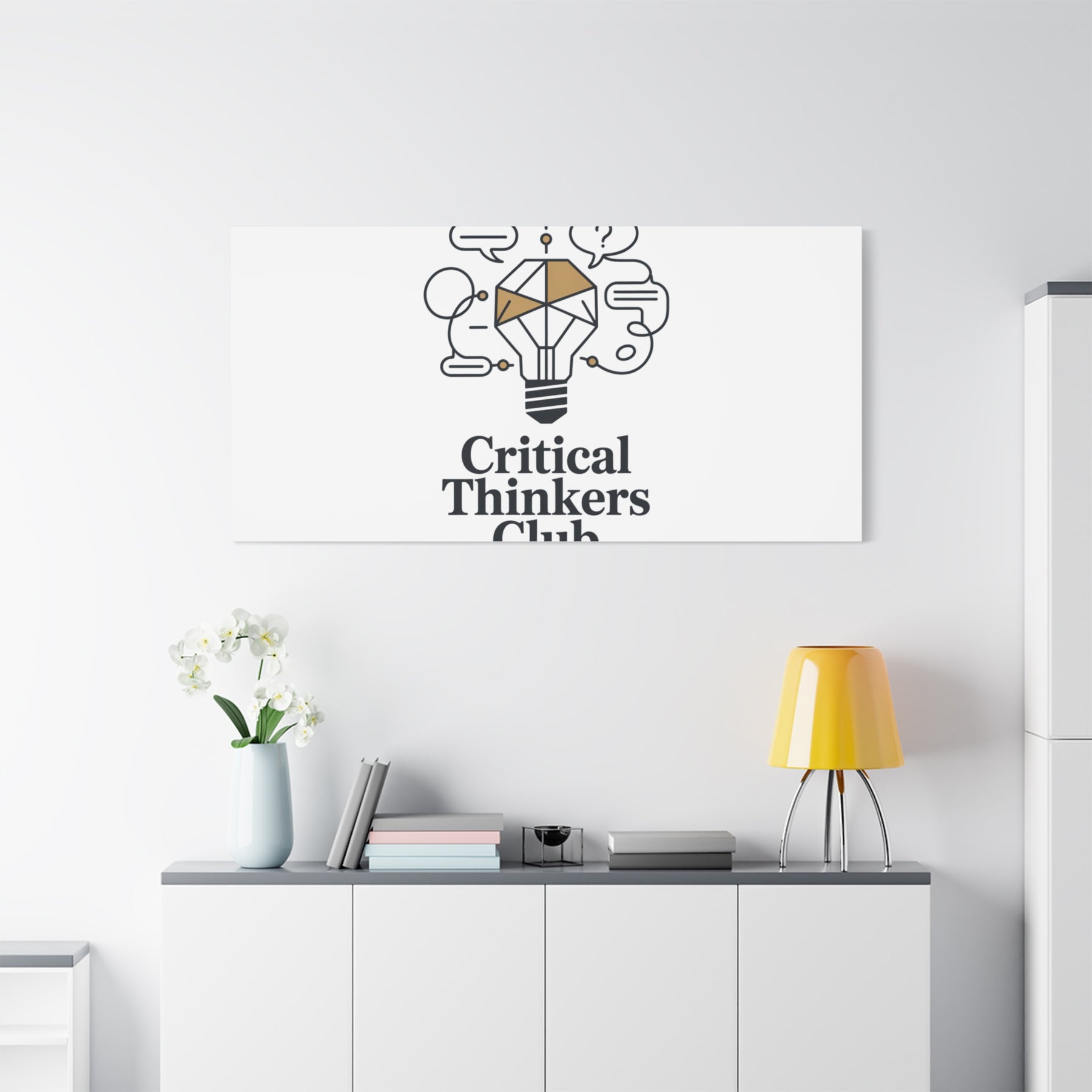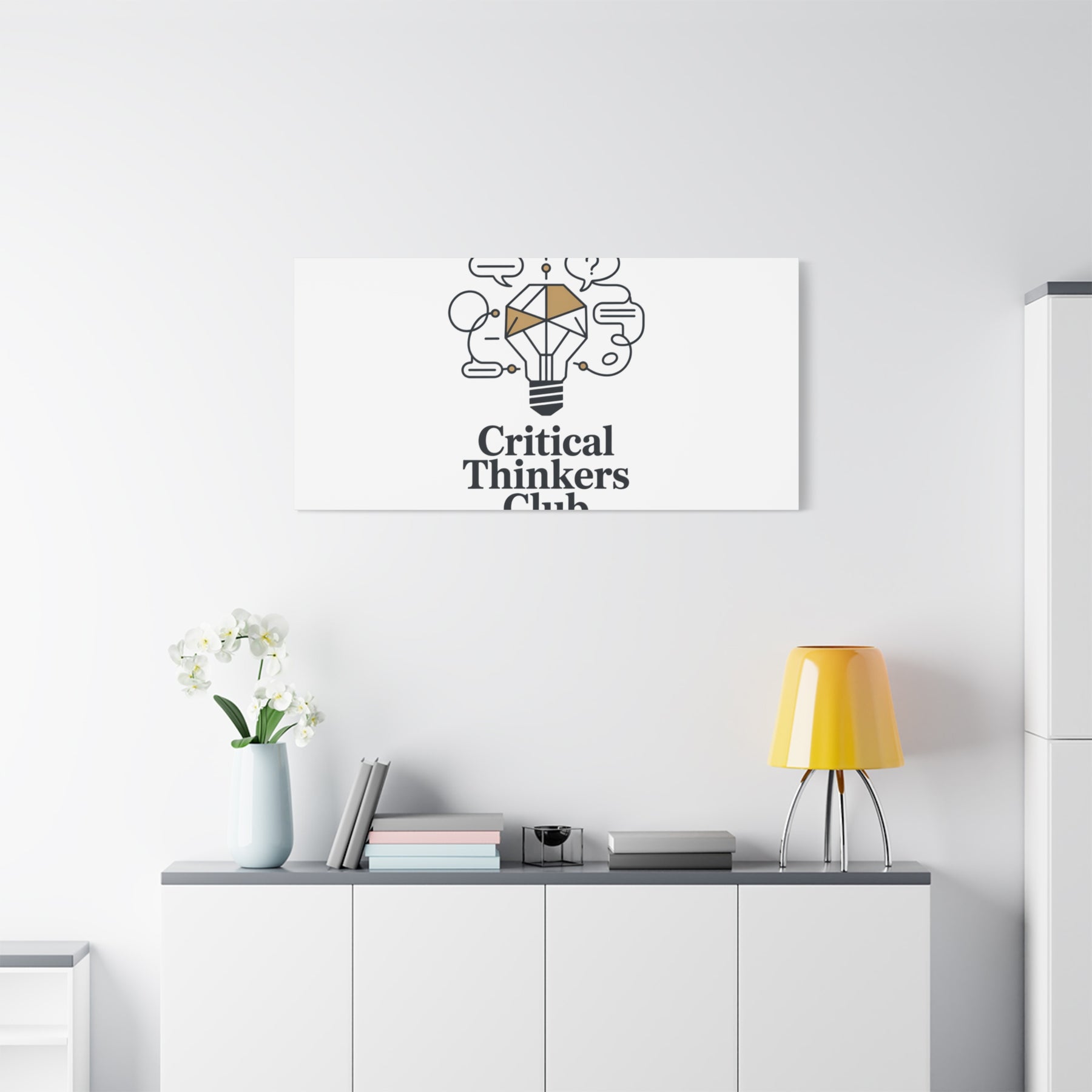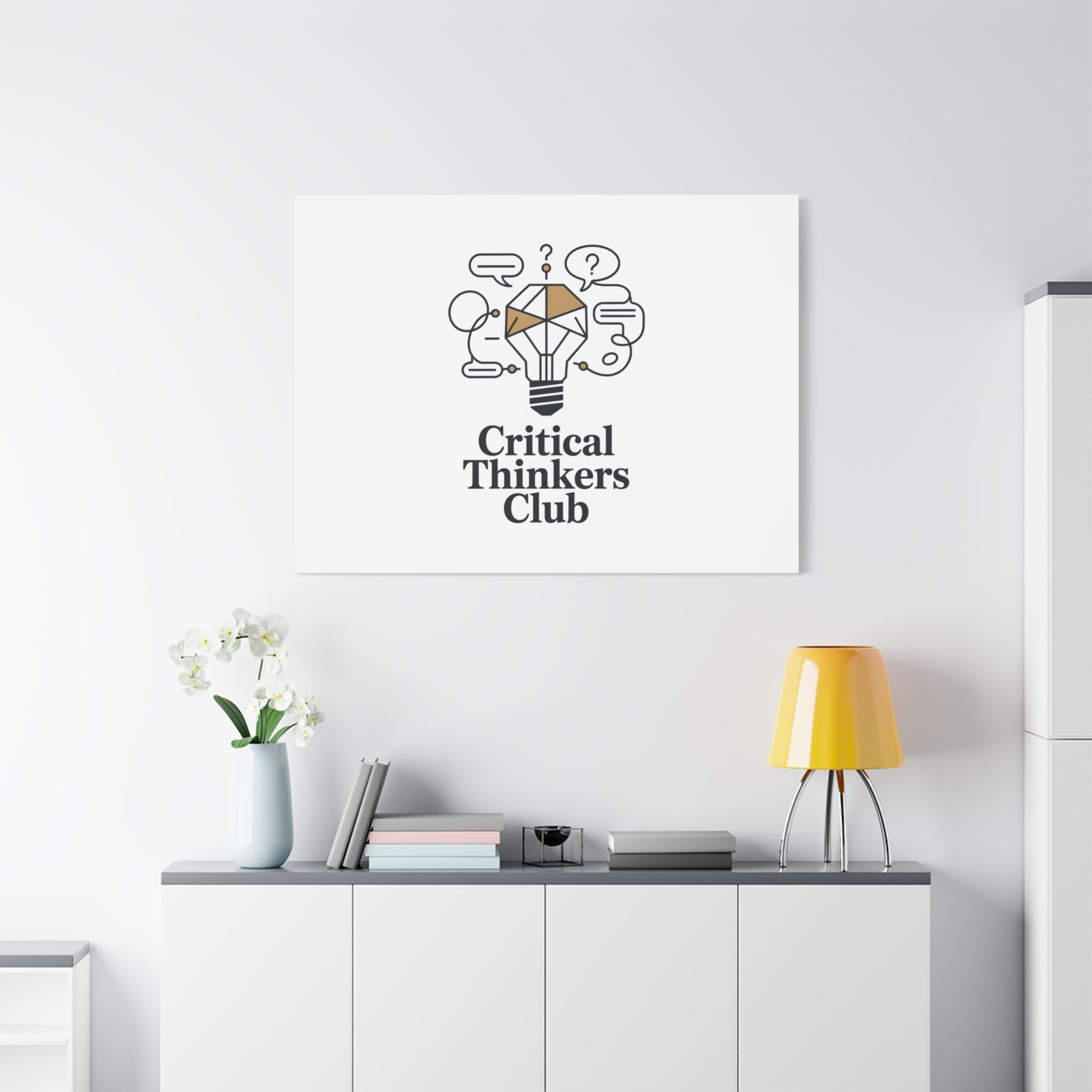 Minimal, academic-minded canvas print featuring a geometric lightbulb/brain emblem and club-style label that nods to the “Critical Thinkers Club” aesthetic. The artwork uses a restrained, limited palette and clean geometric lines with speech-bubble and question-mark motifs to signal thoughtful, apolitical wit. Stretched on a matte canvas with a subtle profile, it suits study corners, office walls, or classroom spaces where understated intellect and “processing moment” humor fit the decor. Product features - 2 rubber dots on bottom to keep canvas in place - Unique JONDO coating with UL-certified Greenguard Gold inks - Printed with non-hazardous latex inks - Canvas material: cotton/polyester composite; frame: pine wood - Back hanging included; multiple orientation and size options available Care instructions - If the canvas does gather any dust, you may wipe it off gently with a clean, damp cloth.