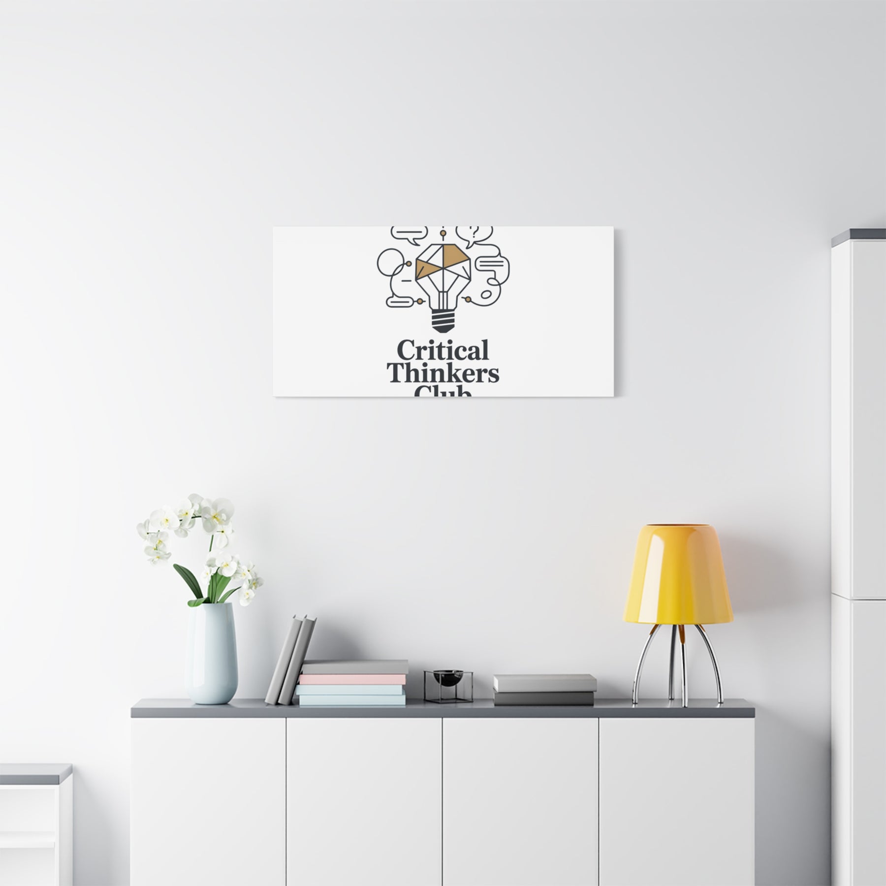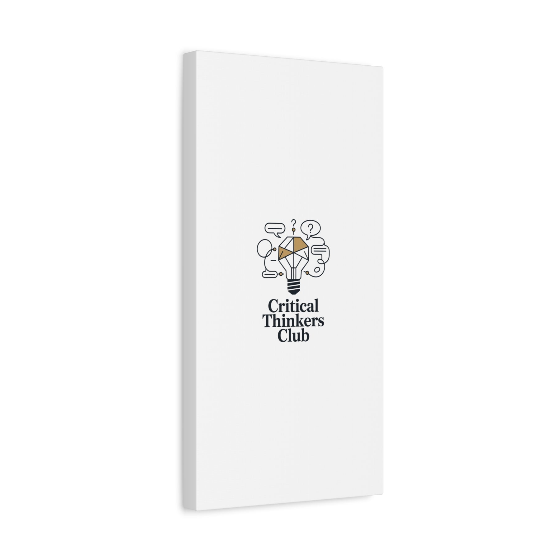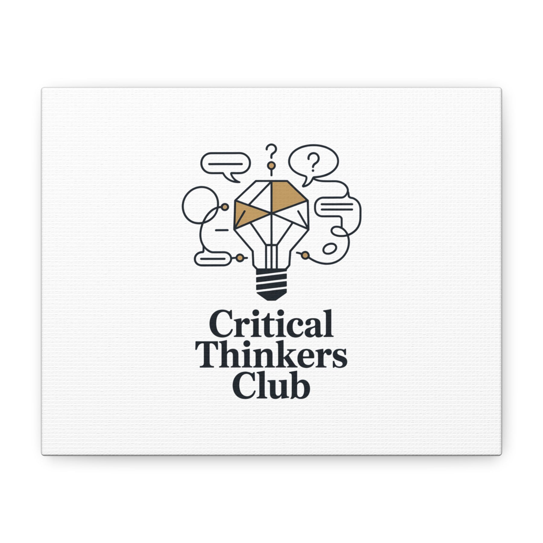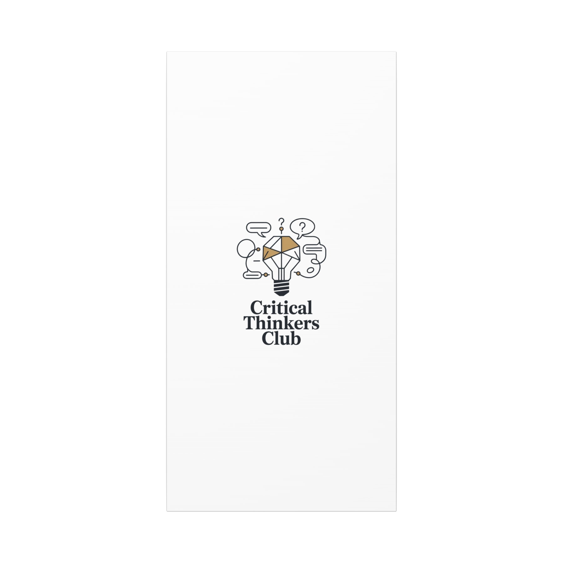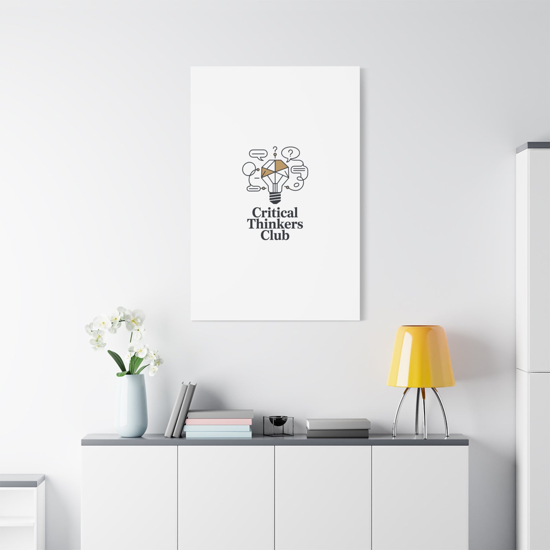 Minimal, academic-minded canvas print featuring a geometric lightbulb/brain emblem and club-style label that nods to the “Critical Thinkers Club” aesthetic. The artwork uses a restrained, limited palette and clean geometric lines with speech-bubble and question-mark motifs to signal thoughtful, apolitical wit. Stretched on a matte canvas with a subtle profile, it suits study corners, office walls, or classroom spaces where understated intellect and “processing moment” humor fit the decor. Product features - 2 rubber dots on bottom to keep canvas in place - Unique JONDO coating with UL-certified Greenguard Gold inks - Printed with non-hazardous latex inks - Canvas material: cotton/polyester composite; frame: pine wood - Back hanging included; multiple orientation and size options available Care instructions - If the canvas does gather any dust, you may wipe it off gently with a clean, damp cloth.