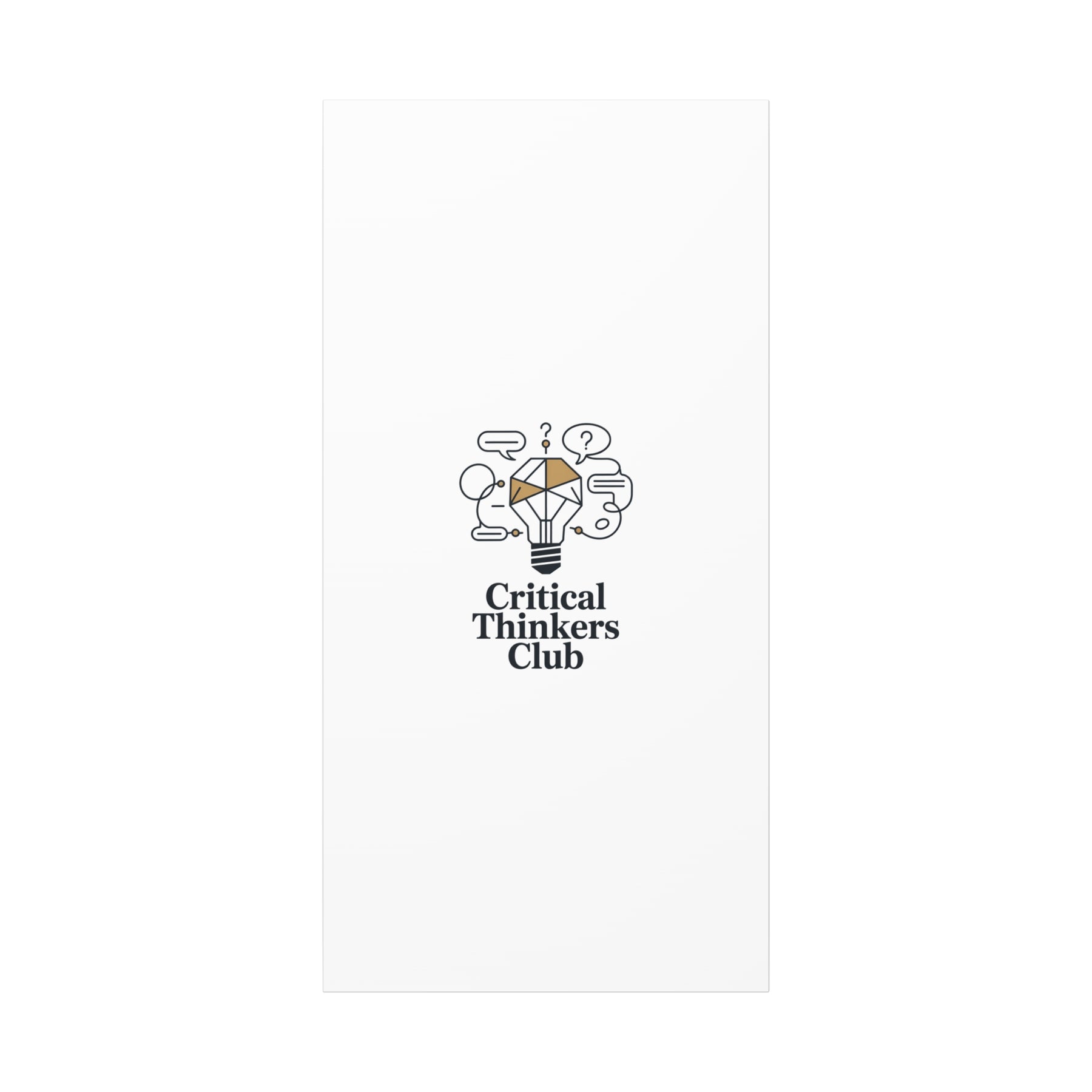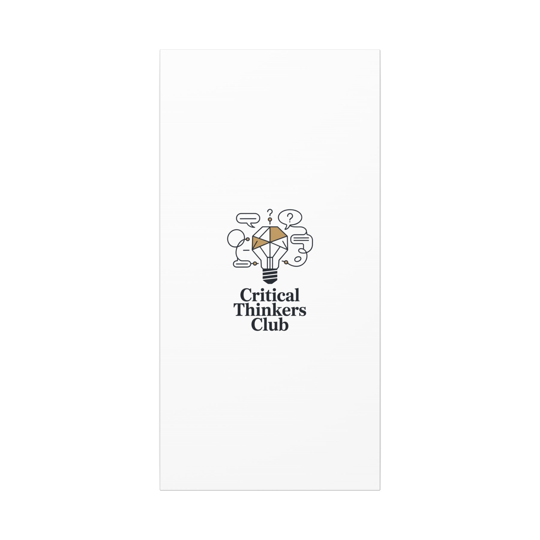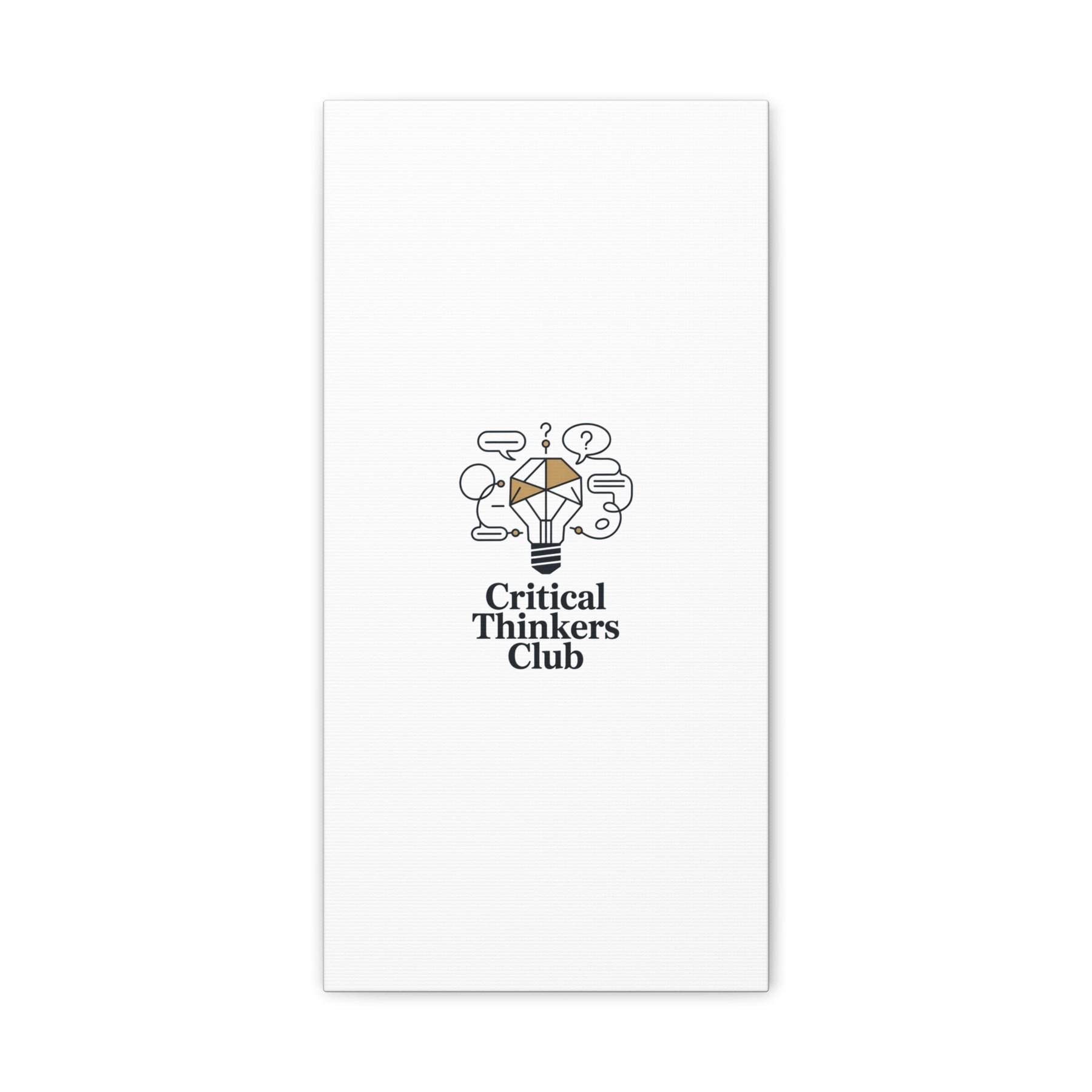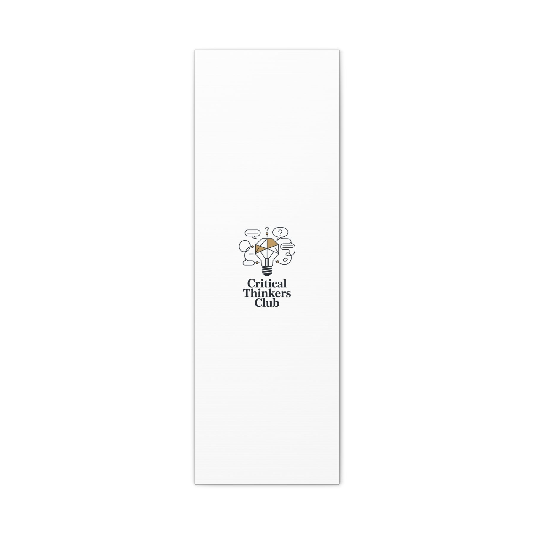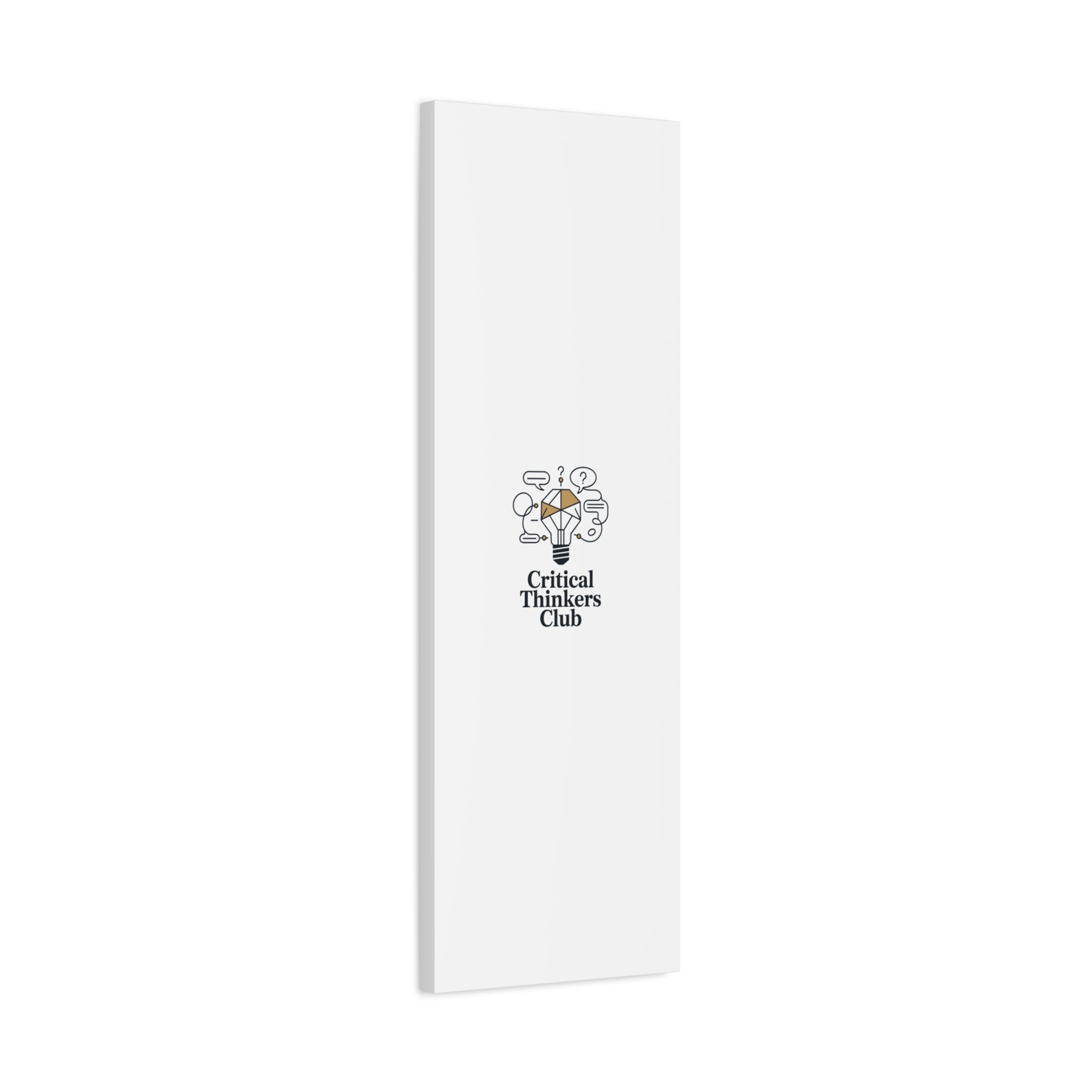 Minimal, academic-minded canvas print featuring a geometric lightbulb/brain emblem and club-style label that nods to the “Critical Thinkers Club” aesthetic. The artwork uses a restrained, limited palette and clean geometric lines with speech-bubble and question-mark motifs to signal thoughtful, apolitical wit. Stretched on a matte canvas with a subtle profile, it suits study corners, office walls, or classroom spaces where understated intellect and “processing moment” humor fit the decor. Product features - 2 rubber dots on bottom to keep canvas in place - Unique JONDO coating with UL-certified Greenguard Gold inks - Printed with non-hazardous latex inks - Canvas material: cotton/polyester composite; frame: pine wood - Back hanging included; multiple orientation and size options available Care instructions - If the canvas does gather any dust, you may wipe it off gently with a clean, damp cloth.