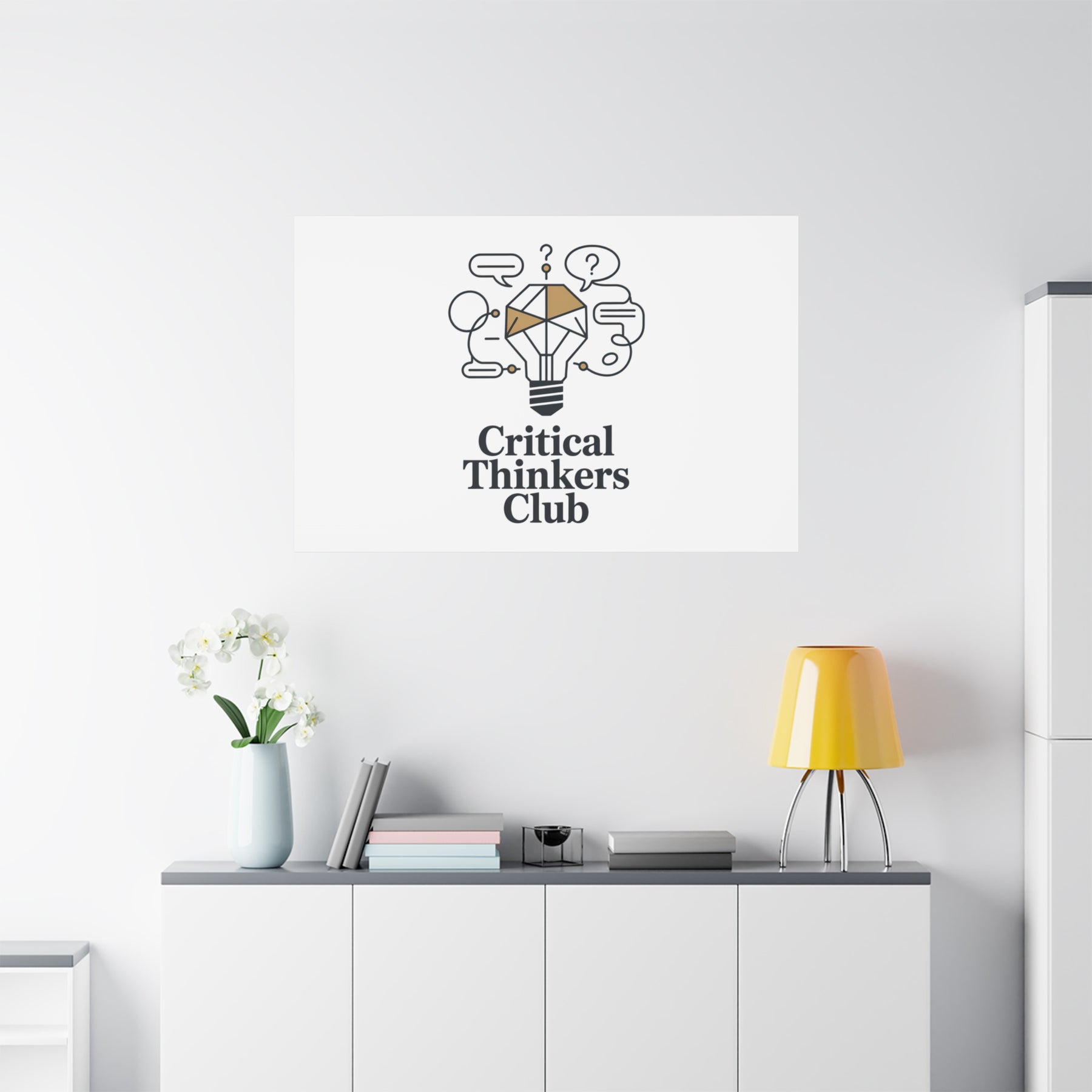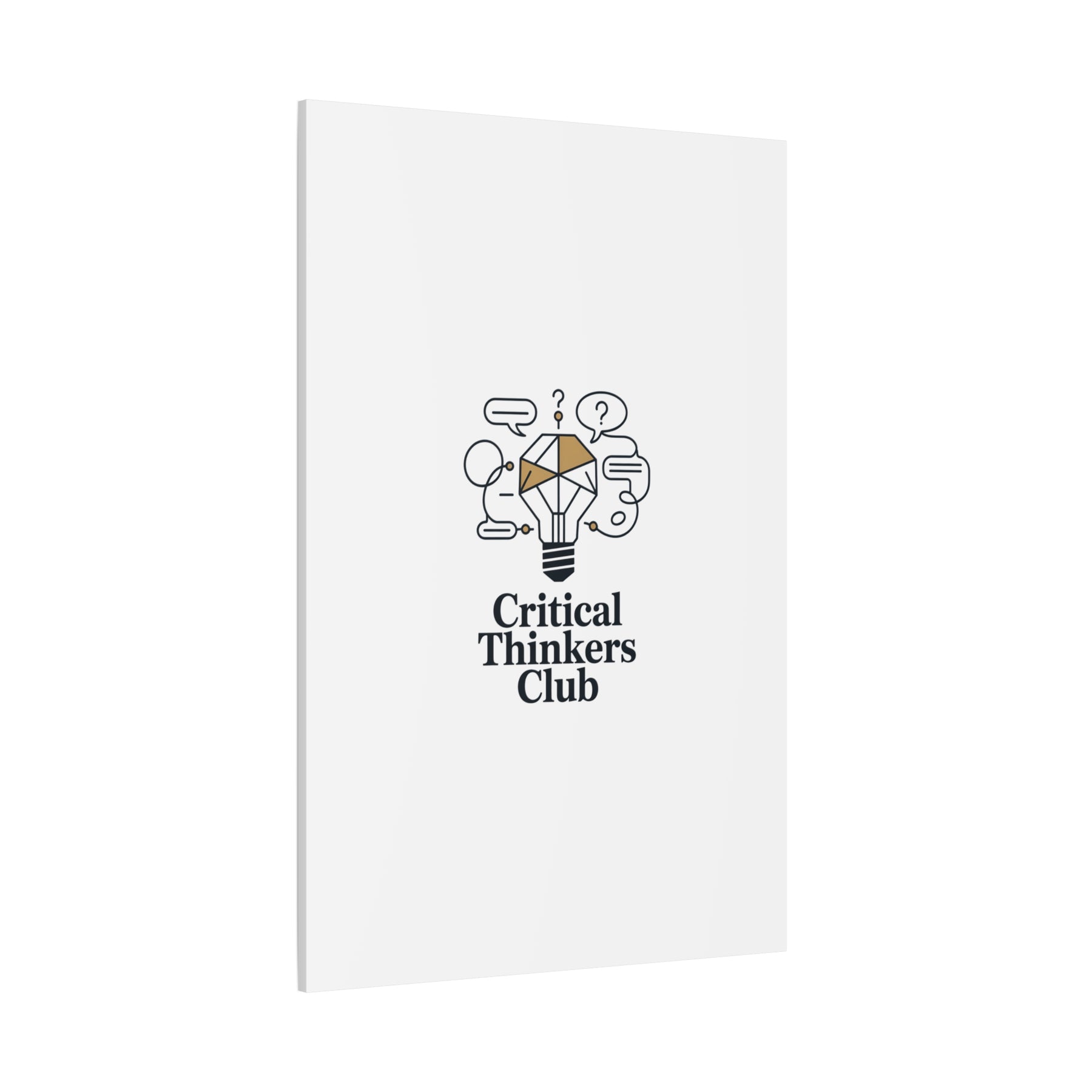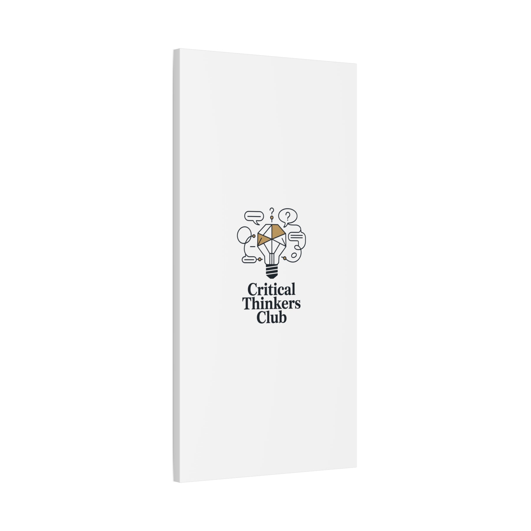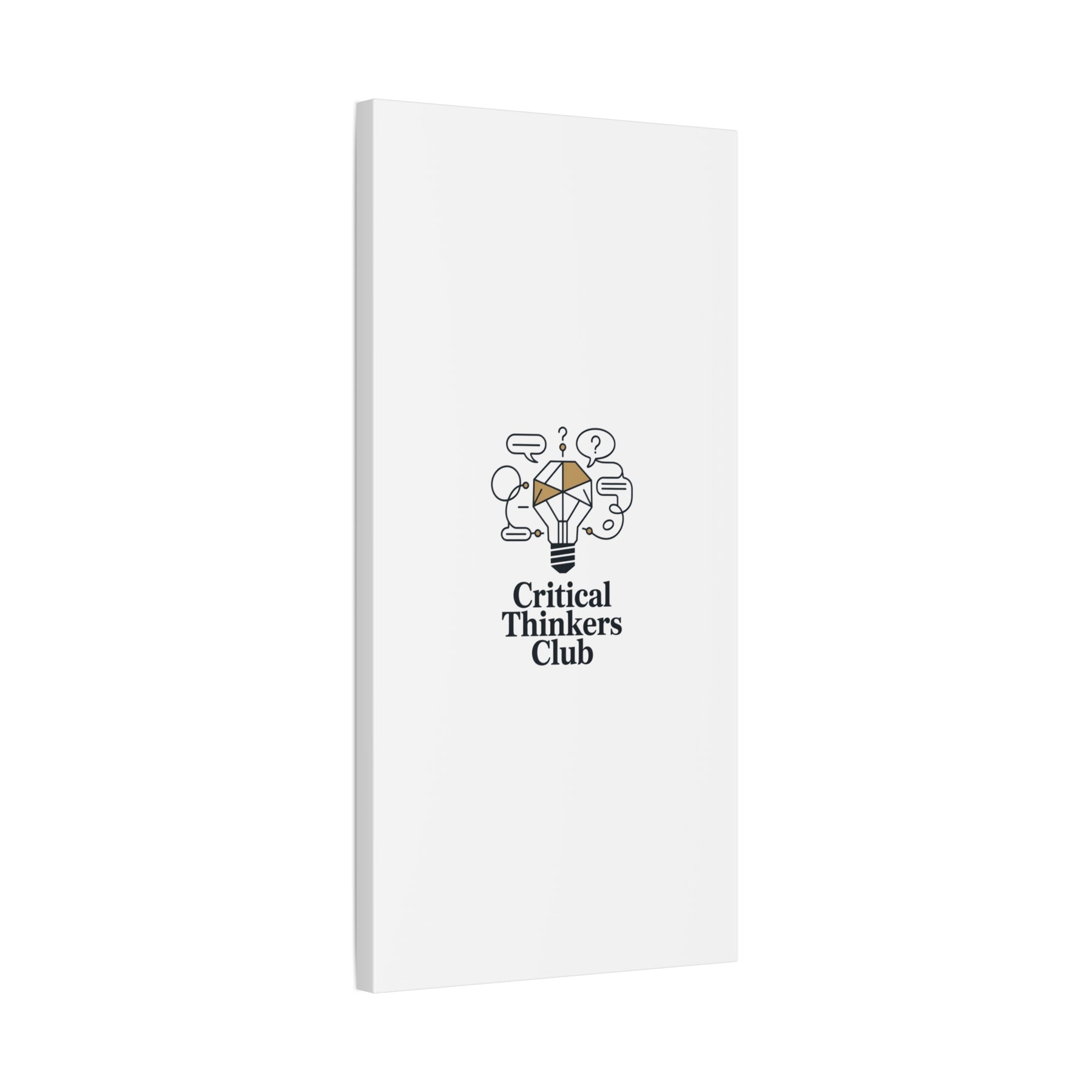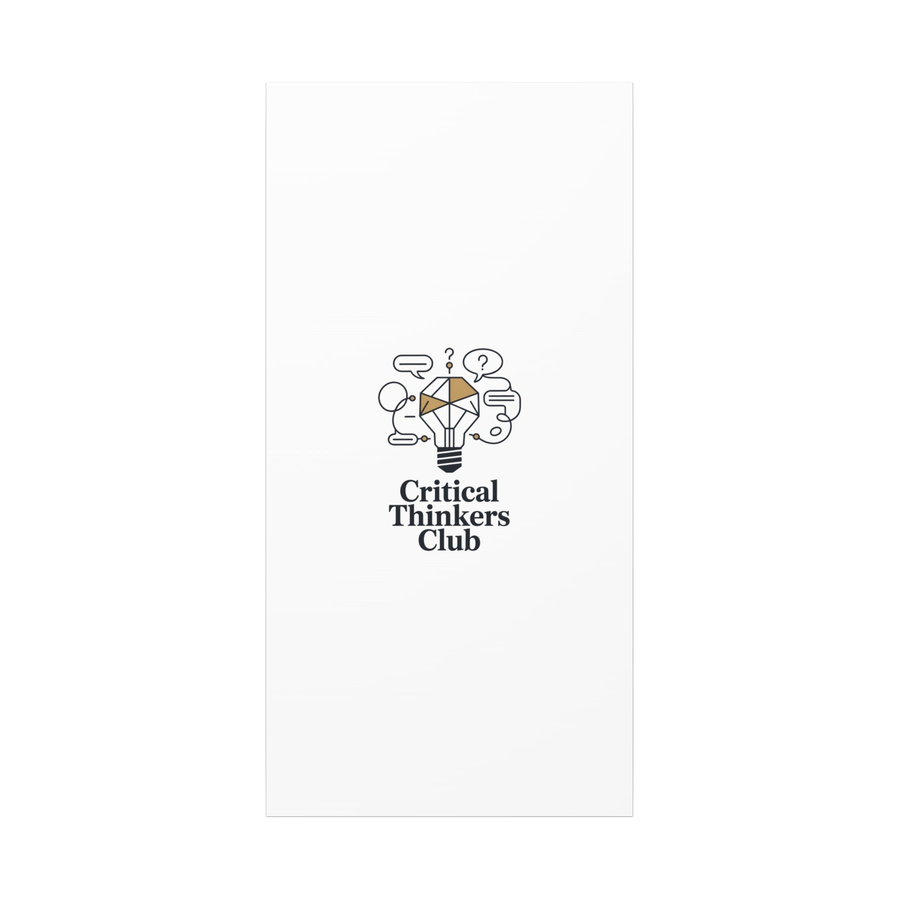 Minimal, academic-minded canvas print featuring a geometric lightbulb/brain emblem and club-style label that nods to the “Critical Thinkers Club” aesthetic. The artwork uses a restrained, limited palette and clean geometric lines with speech-bubble and question-mark motifs to signal thoughtful, apolitical wit. Stretched on a matte canvas with a subtle profile, it suits study corners, office walls, or classroom spaces where understated intellect and “processing moment” humor fit the decor. Product features - 2 rubber dots on bottom to keep canvas in place - Unique JONDO coating with UL-certified Greenguard Gold inks - Printed with non-hazardous latex inks - Canvas material: cotton/polyester composite; frame: pine wood - Back hanging included; multiple orientation and size options available Care instructions - If the canvas does gather any dust, you may wipe it off gently with a clean, damp cloth.