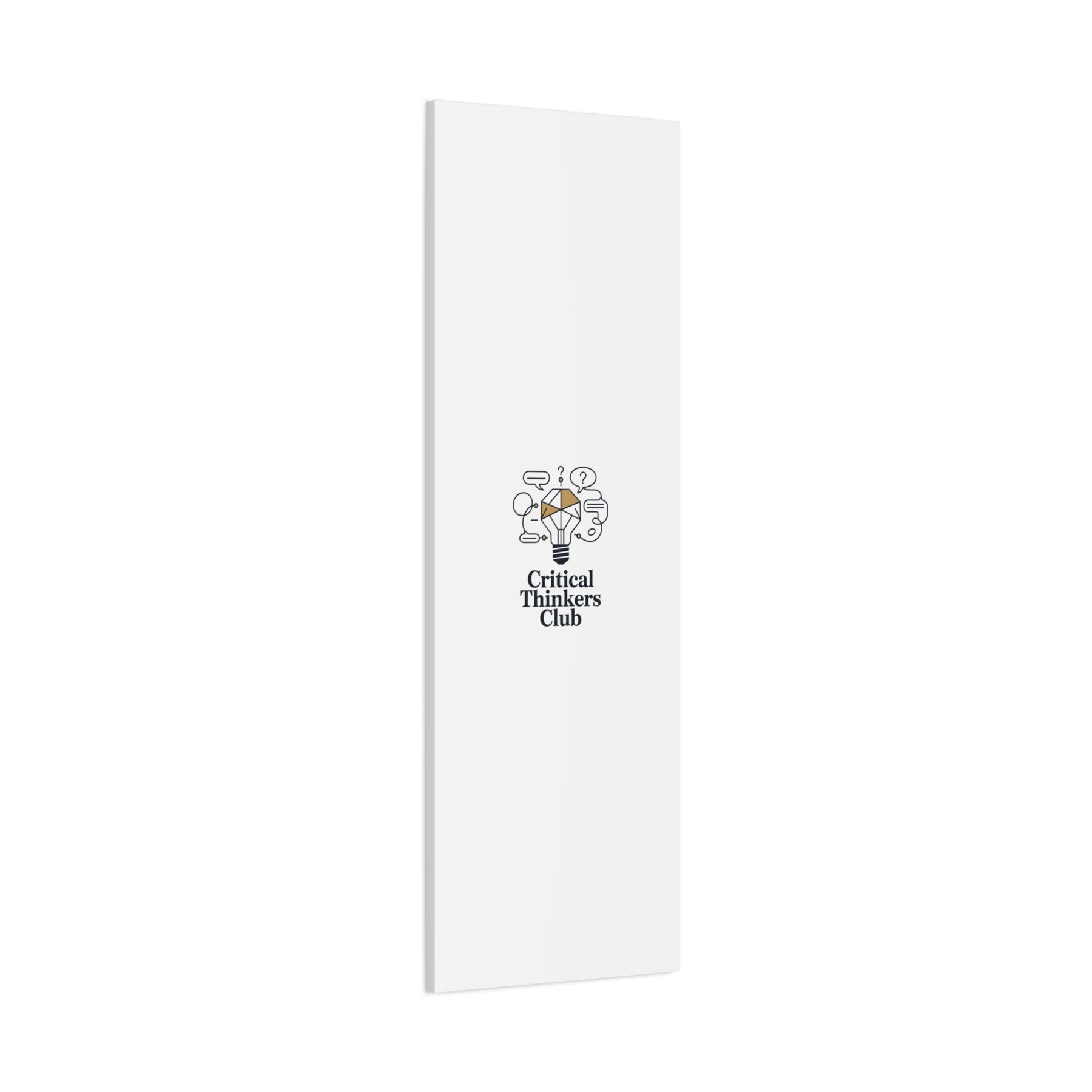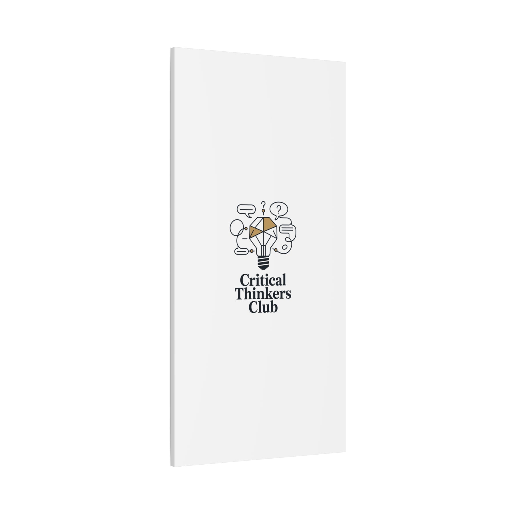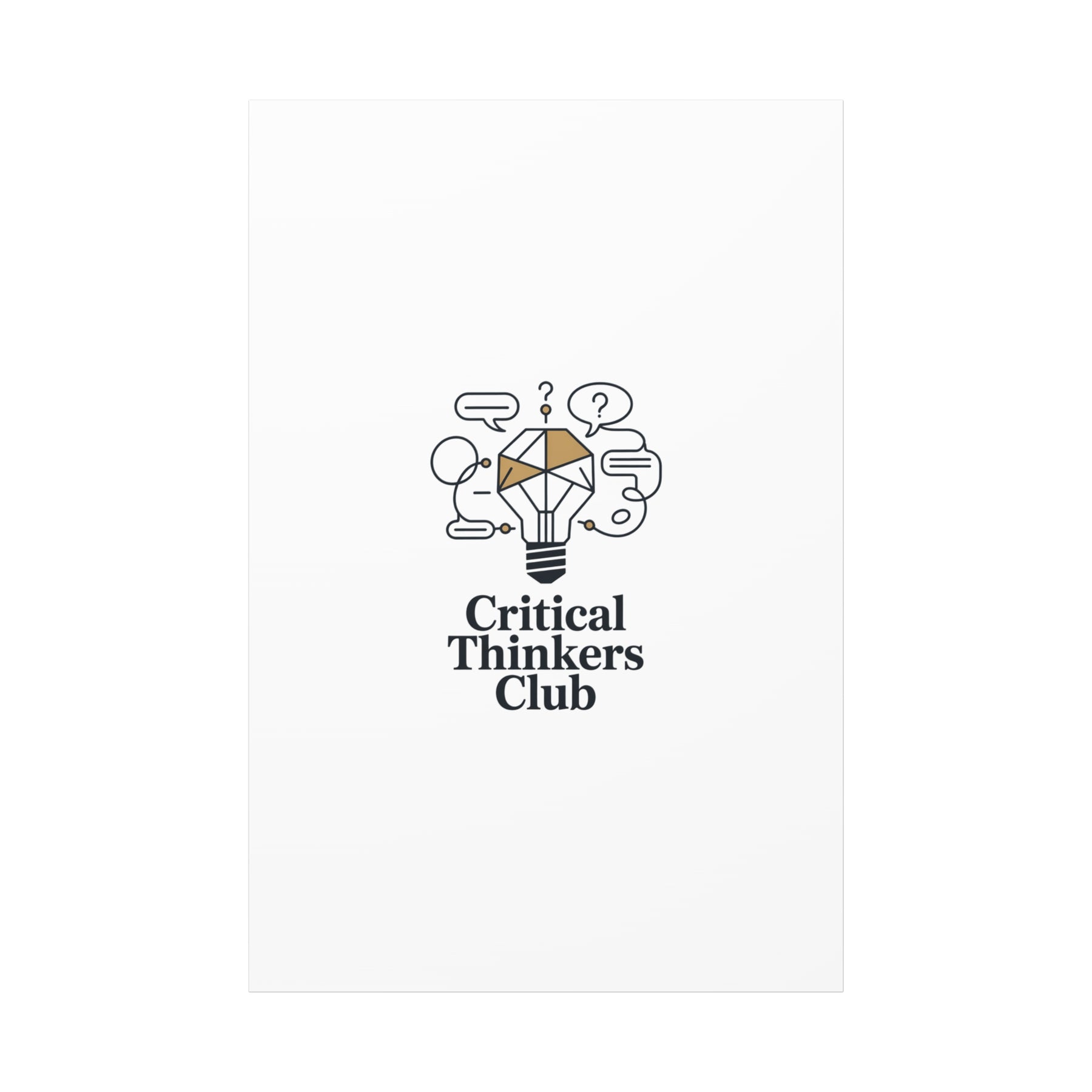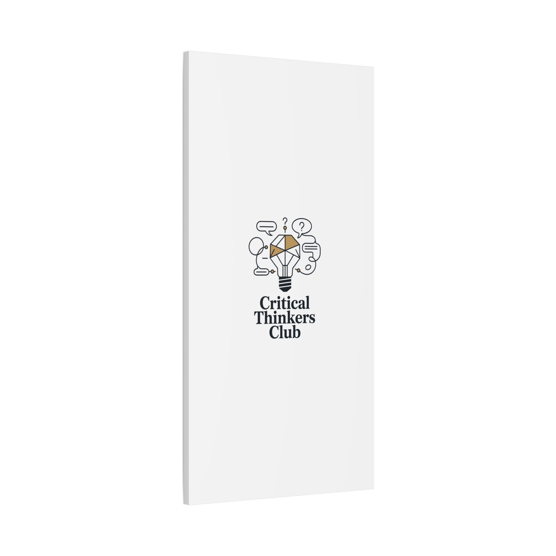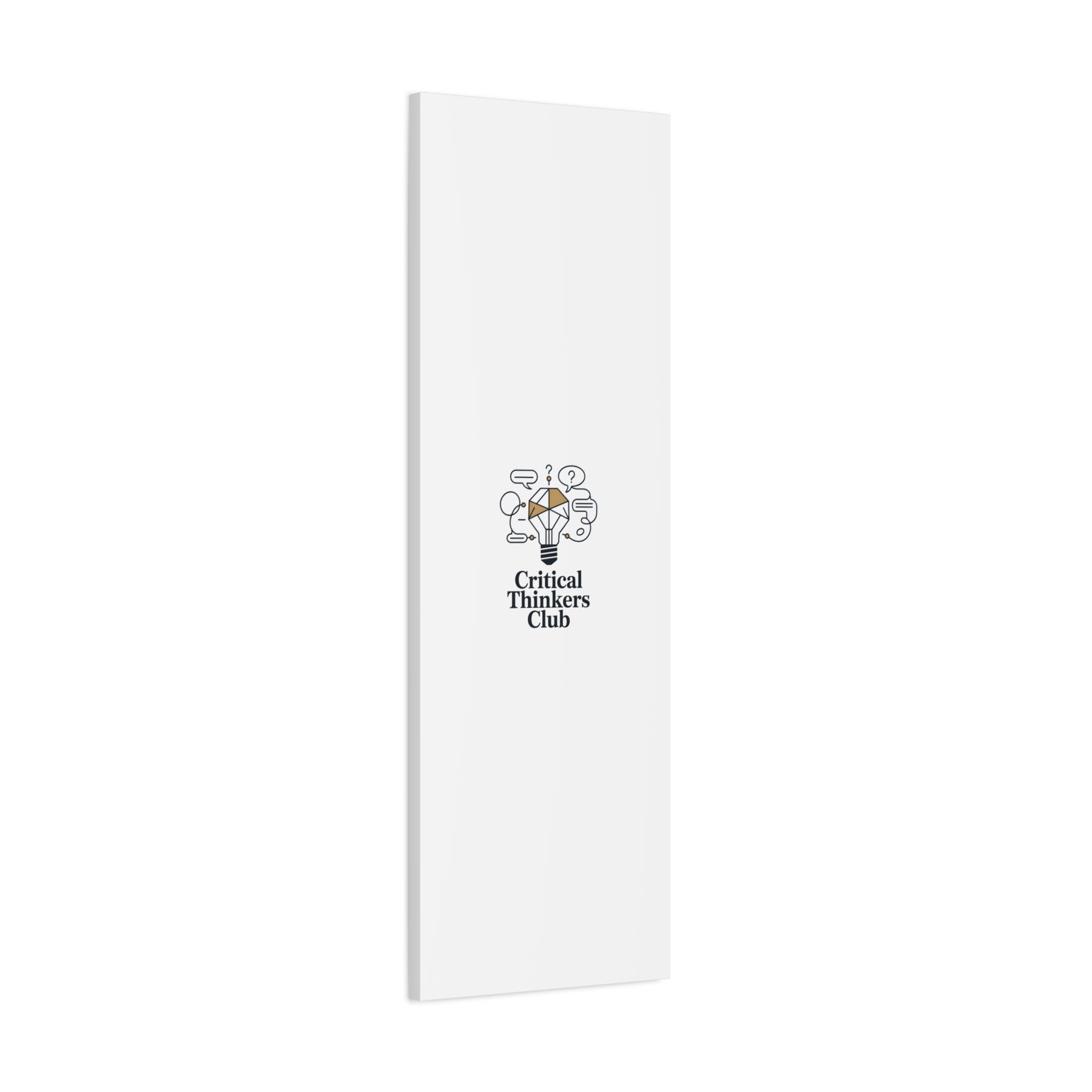 Minimal, academic-minded canvas print featuring a geometric lightbulb/brain emblem and club-style label that nods to the “Critical Thinkers Club” aesthetic. The artwork uses a restrained, limited palette and clean geometric lines with speech-bubble and question-mark motifs to signal thoughtful, apolitical wit. Stretched on a matte canvas with a subtle profile, it suits study corners, office walls, or classroom spaces where understated intellect and “processing moment” humor fit the decor. Product features - 2 rubber dots on bottom to keep canvas in place - Unique JONDO coating with UL-certified Greenguard Gold inks - Printed with non-hazardous latex inks - Canvas material: cotton/polyester composite; frame: pine wood - Back hanging included; multiple orientation and size options available Care instructions - If the canvas does gather any dust, you may wipe it off gently with a clean, damp cloth.