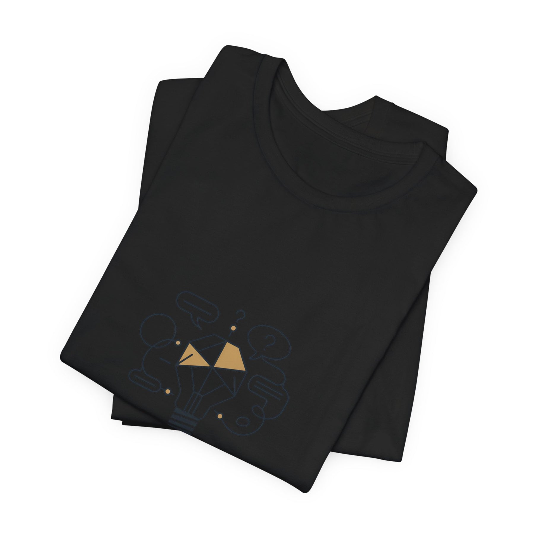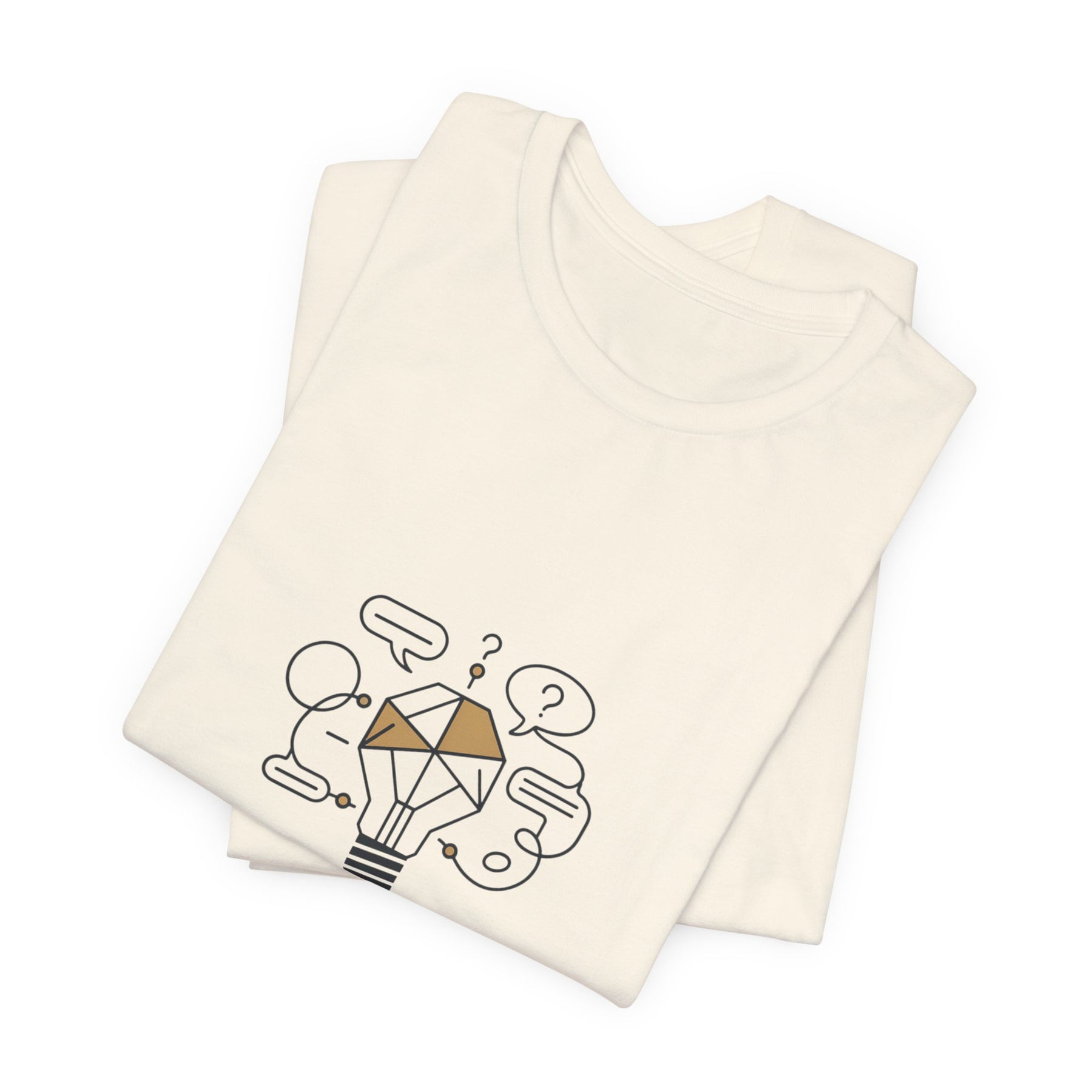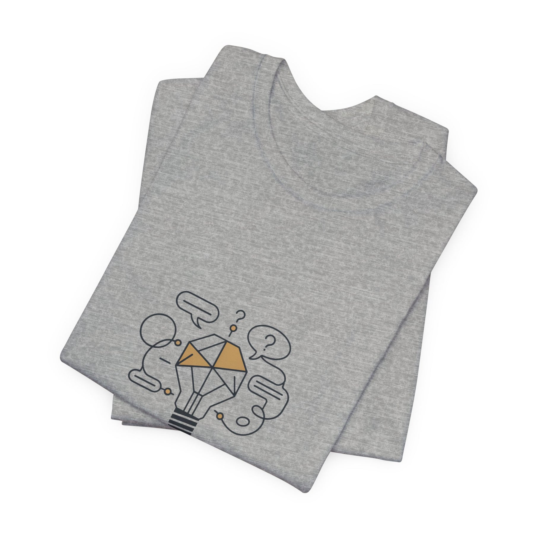 A clean, understated tee that signals thoughtful humor through a minimal processing-moment graphic: a geometric lightbulb icon surrounded by small speech bubbles above a concise “Critical Thinkers Club” label. The monochrome plus muted-accent palette and geometric sans-serif feel align with the ‘critical thinking’ niche—subtle, clever, and academic-leaning—so it layers easily under jackets or pairs with casual bottoms for campus and workday wear. Product features - 100% Airlume combed and ring-spun cotton (Bella Canvas 3001), lightweight 4.2 oz/yd² - With side seams for improved garment shape and structure - Ribbed knit collar with seam and shoulder tape to prevent stretching - Sleeve and neck label prints produced using DTF or DTG printing methods - Tear-away label; REACH certified; adult sizes; blank product sourced from Honduras Care instructions - Machine wash: cold (max 30C or 90F) - Non-chlorine: bleach as needed - Tumble dry: low heat - Iron, steam or dry: medium heat - Do not dryclean