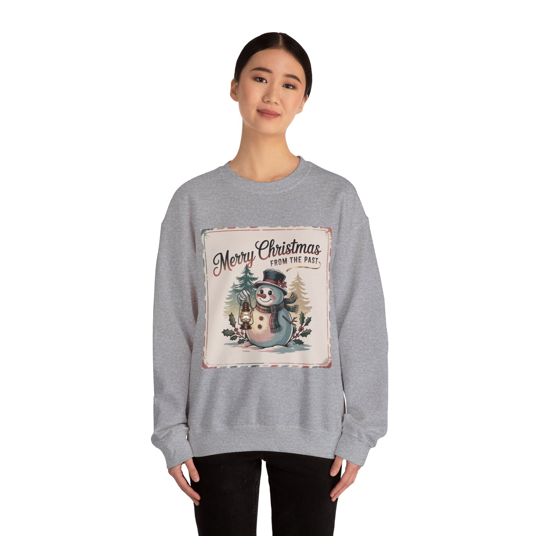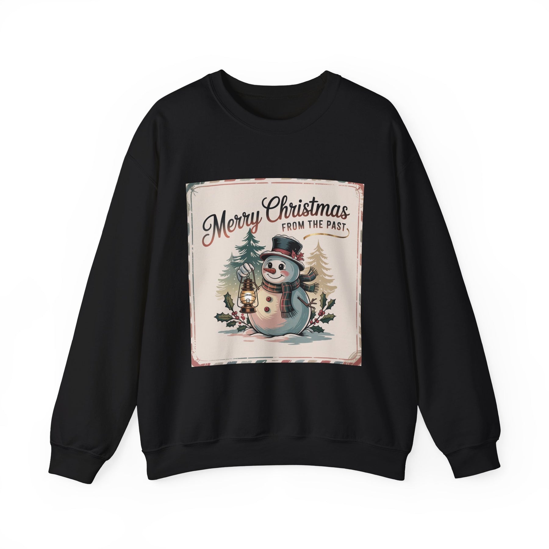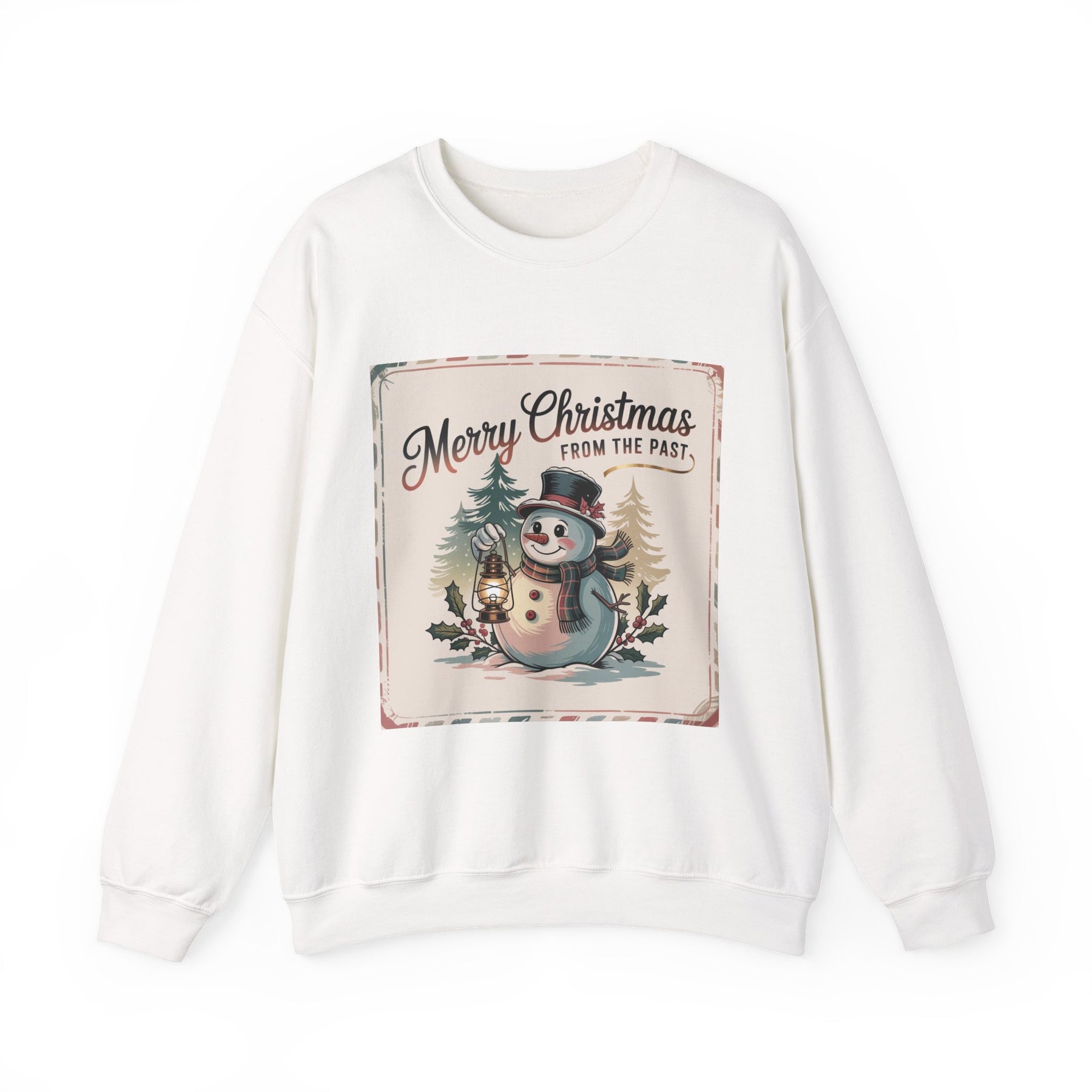 Merry Christmas From the Past Snowman Sweatshirt | vintage Christmas postcard, retro holiday card design