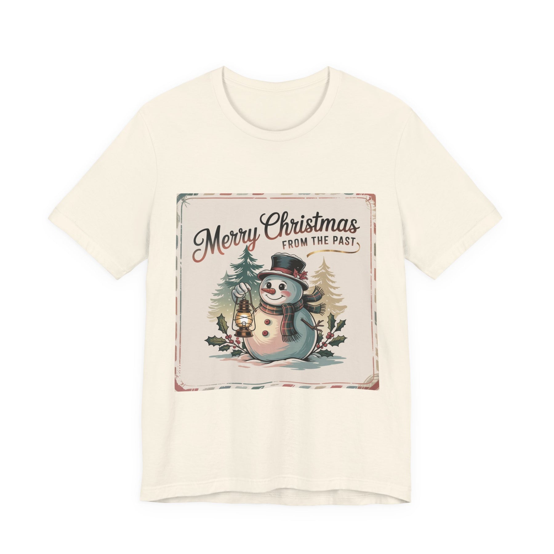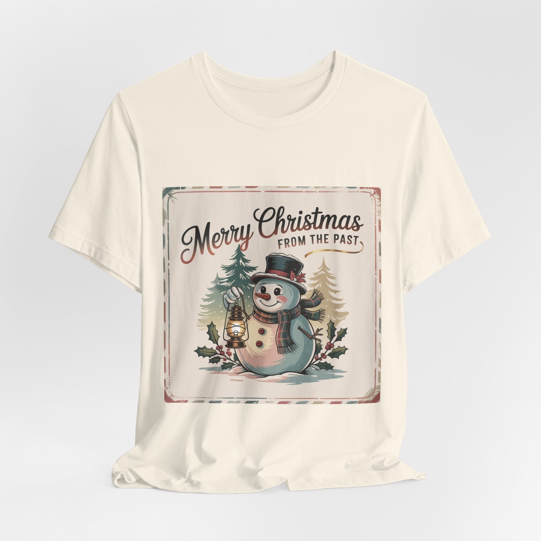 Merry Christmas from the Past Snowman Tee | Vintage Postcard Christmas